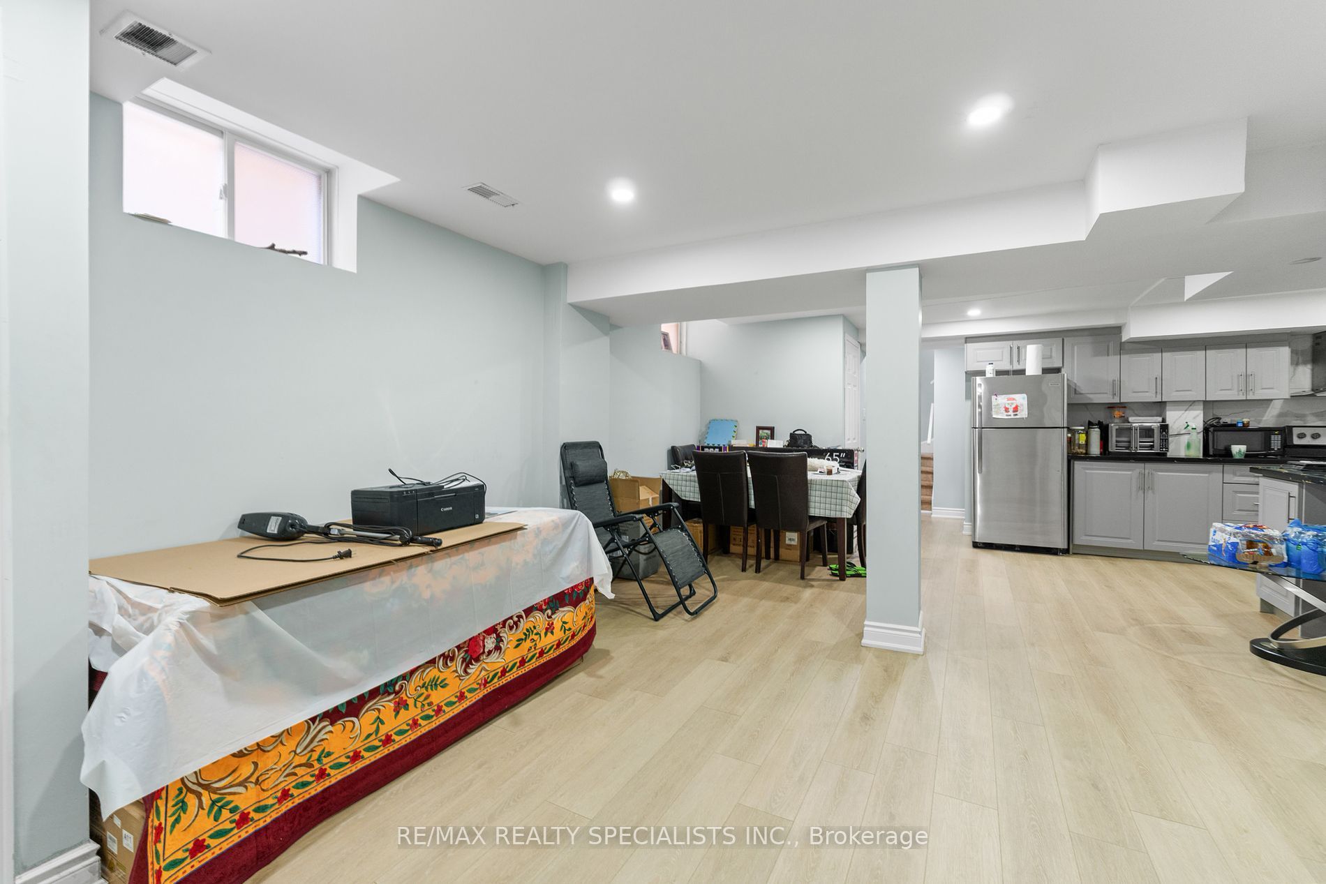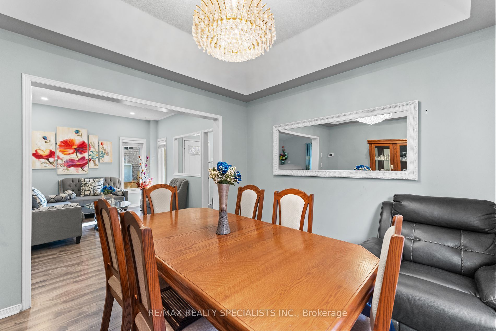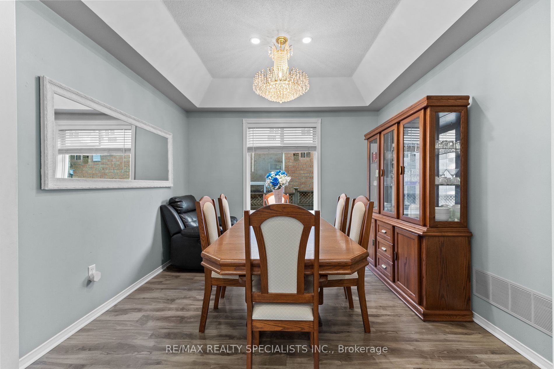 Located in the sought-after mayfield park neighborhood, this beautiful home features 9-ft ceilings on the main floor, a formal dining room with coffered ceilings, and an open-concep tliving/family room with a gas fireplace and modern pot lights. The updated eat-in kitchen showcases granite countertops and a ceramic backsplash, with a walkout to a landscaped backyard, complete with patio and powered shed. Enjoy main floor laundry with garage access. The finished legal basement includes a spacious rec room, open-concept kitchen, one bedroom,in-suite laundry, and a separate entrance ideal for extended family or rental income. New window (2023), new dual speed furnace (2025), new driveway (2022), boiler rental, roof with 20 years shingles (2018)