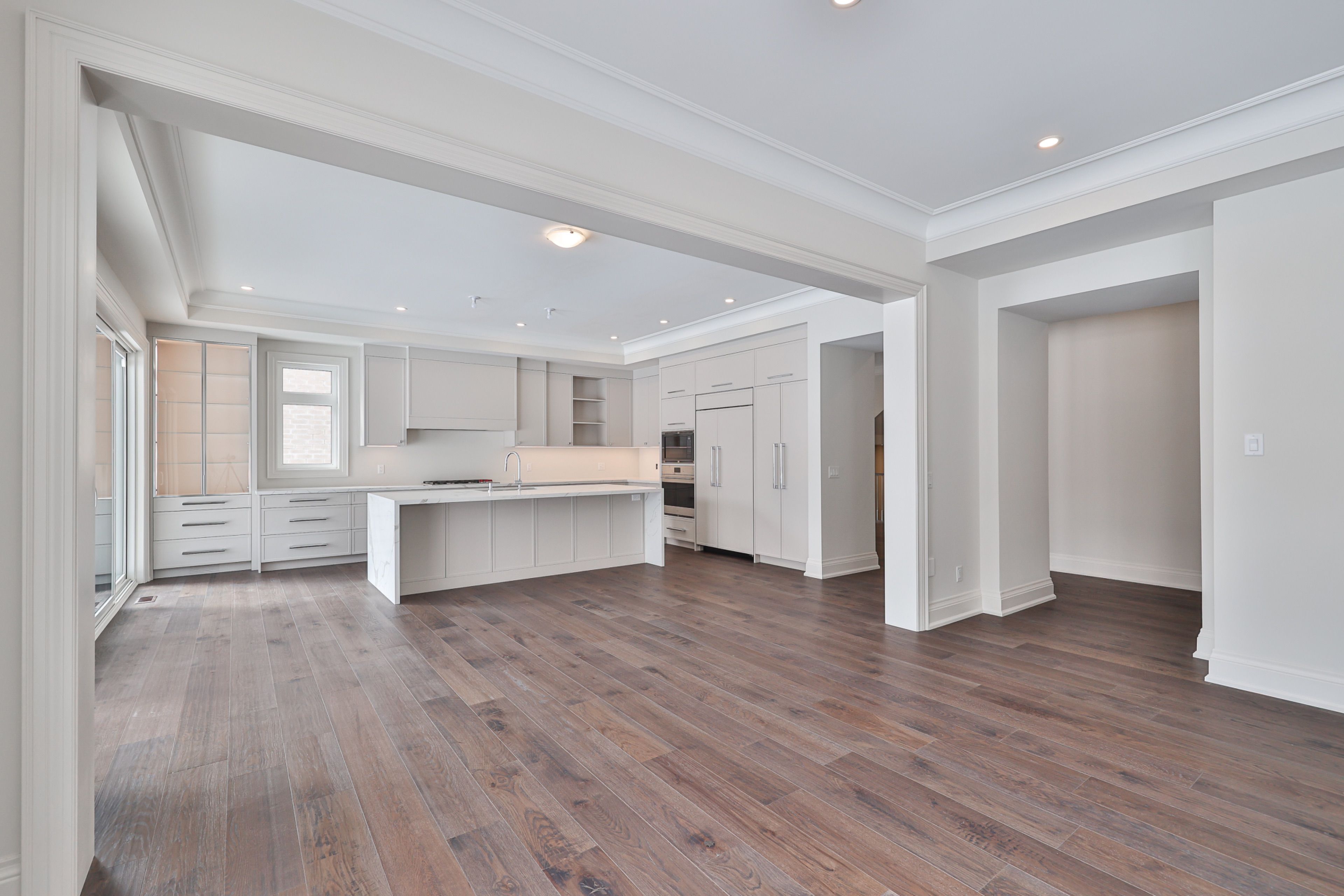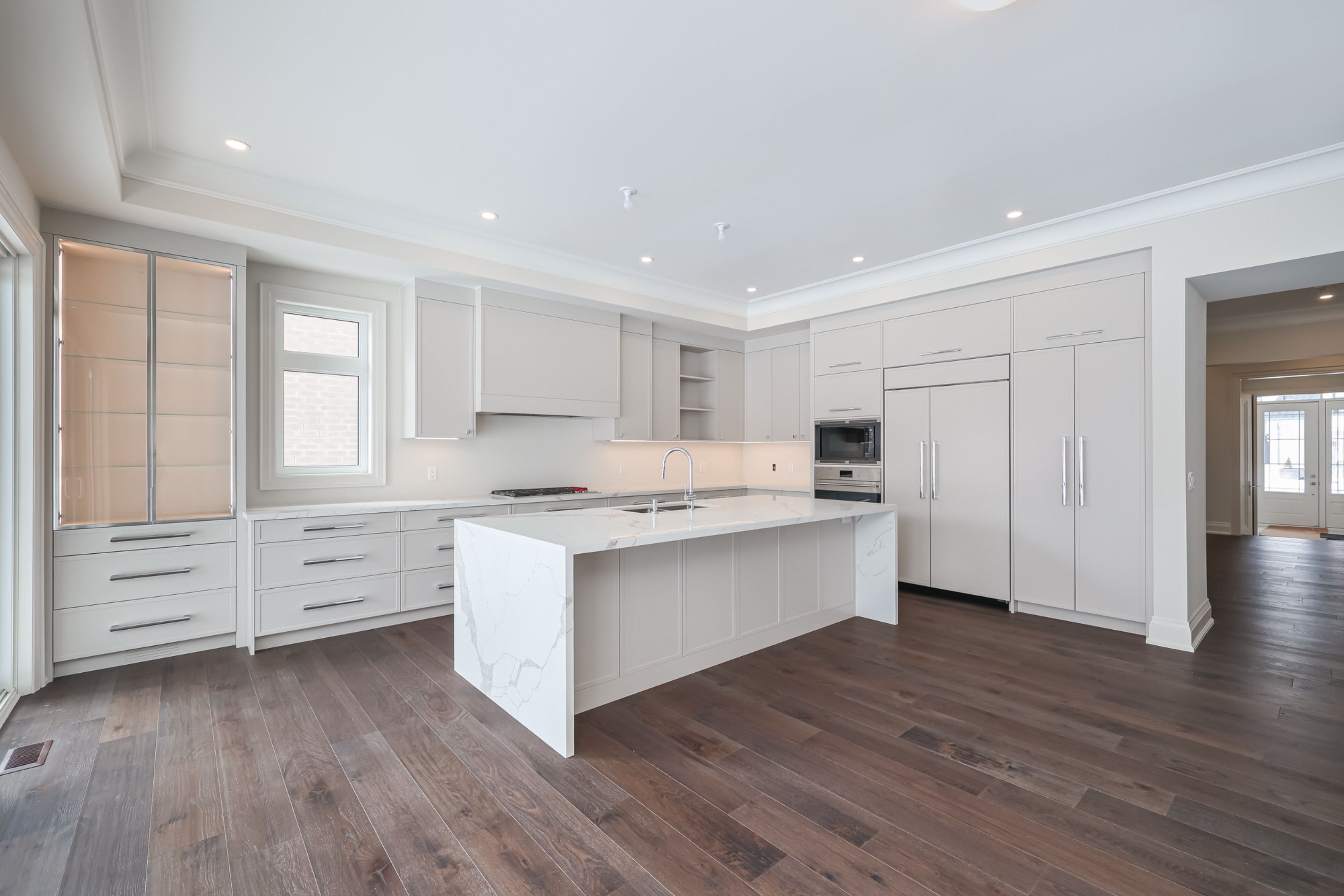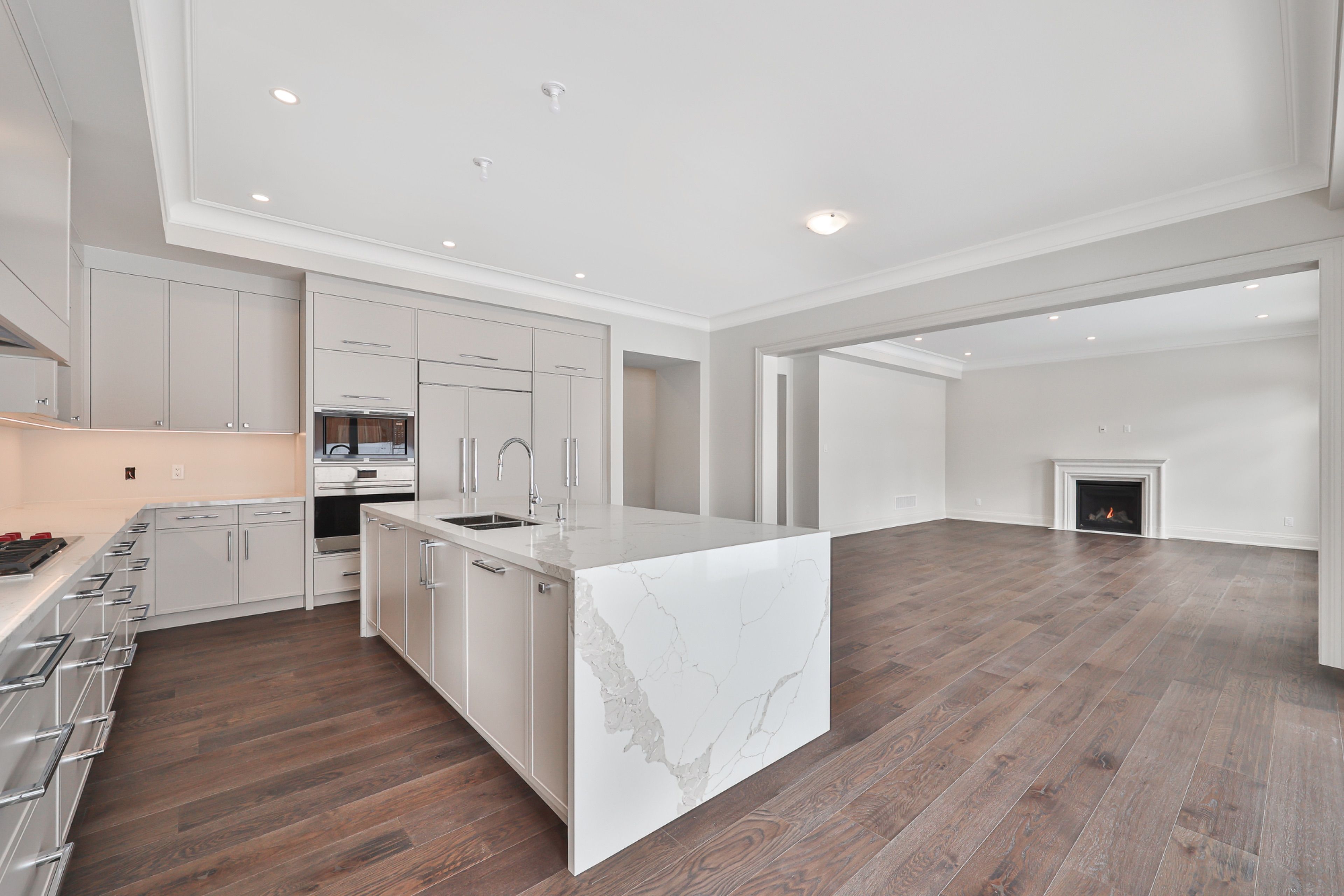 • Upgraded chef's kitchen with large island and premium appliances.