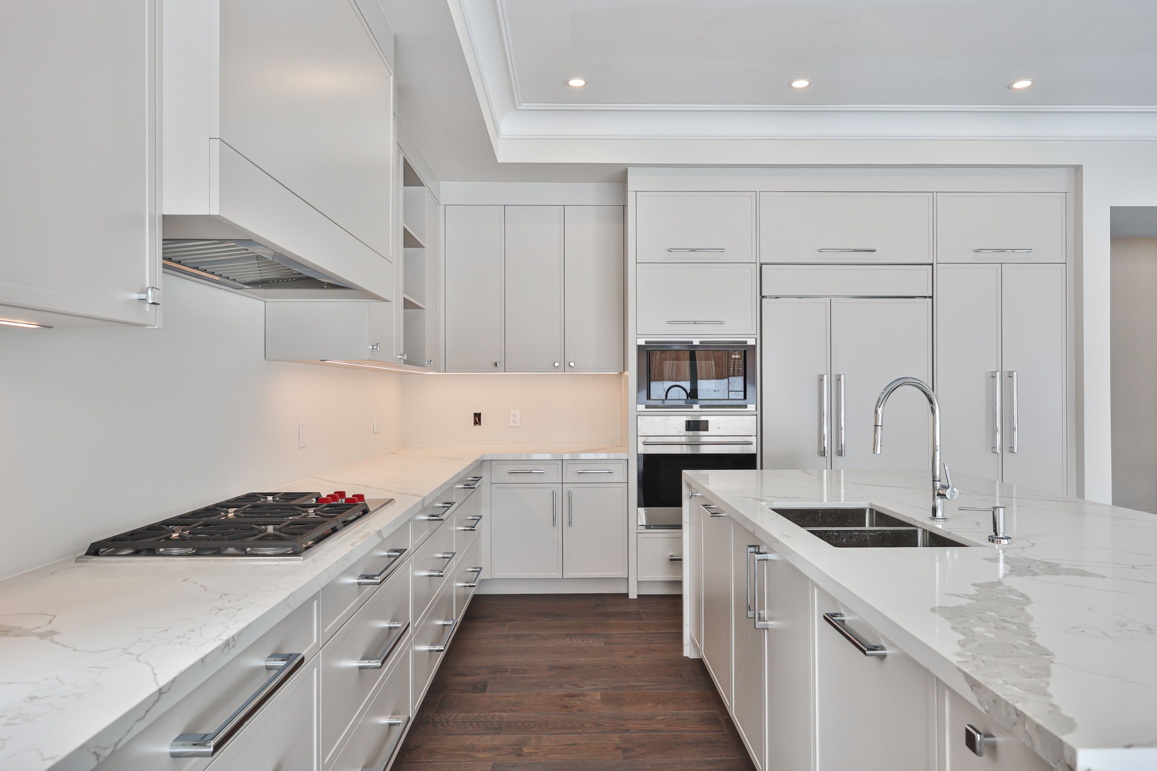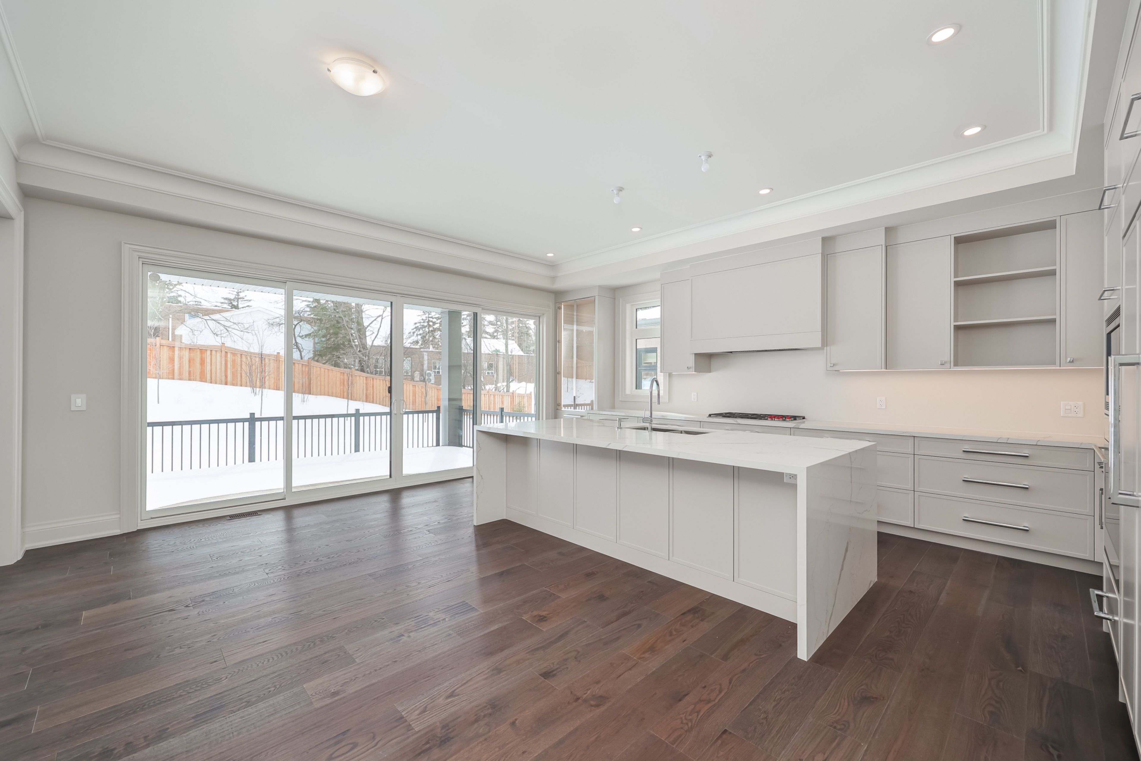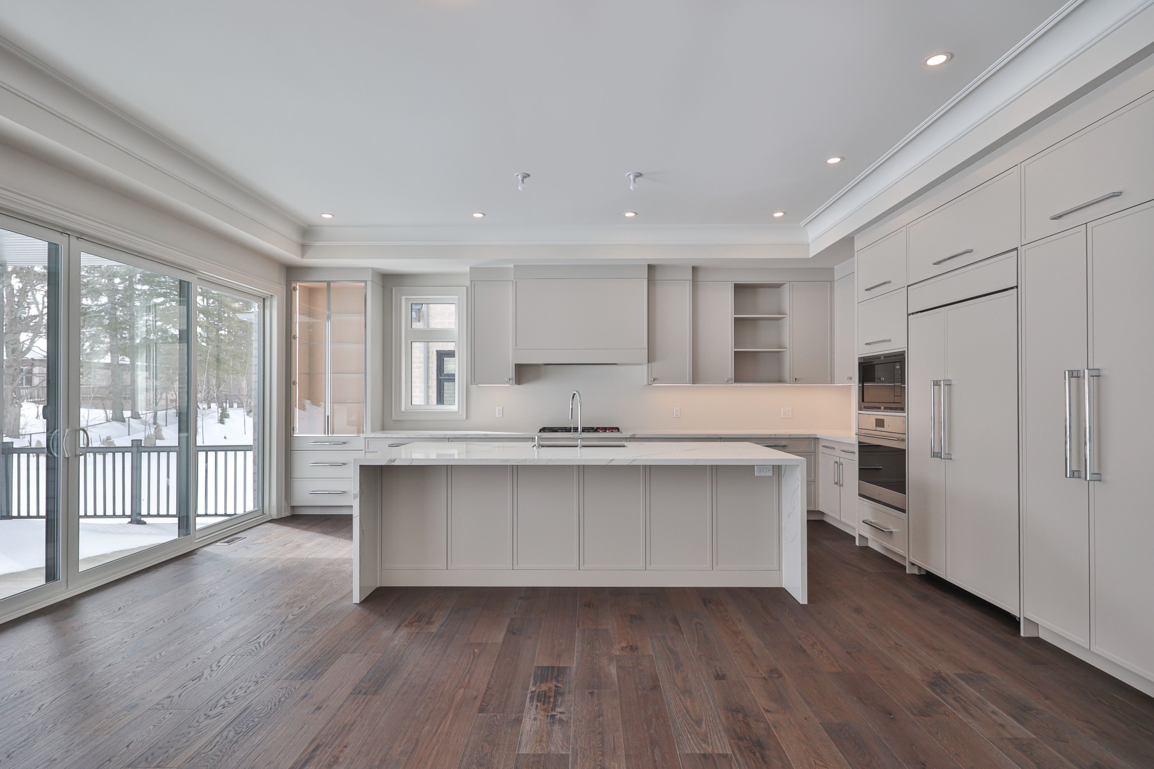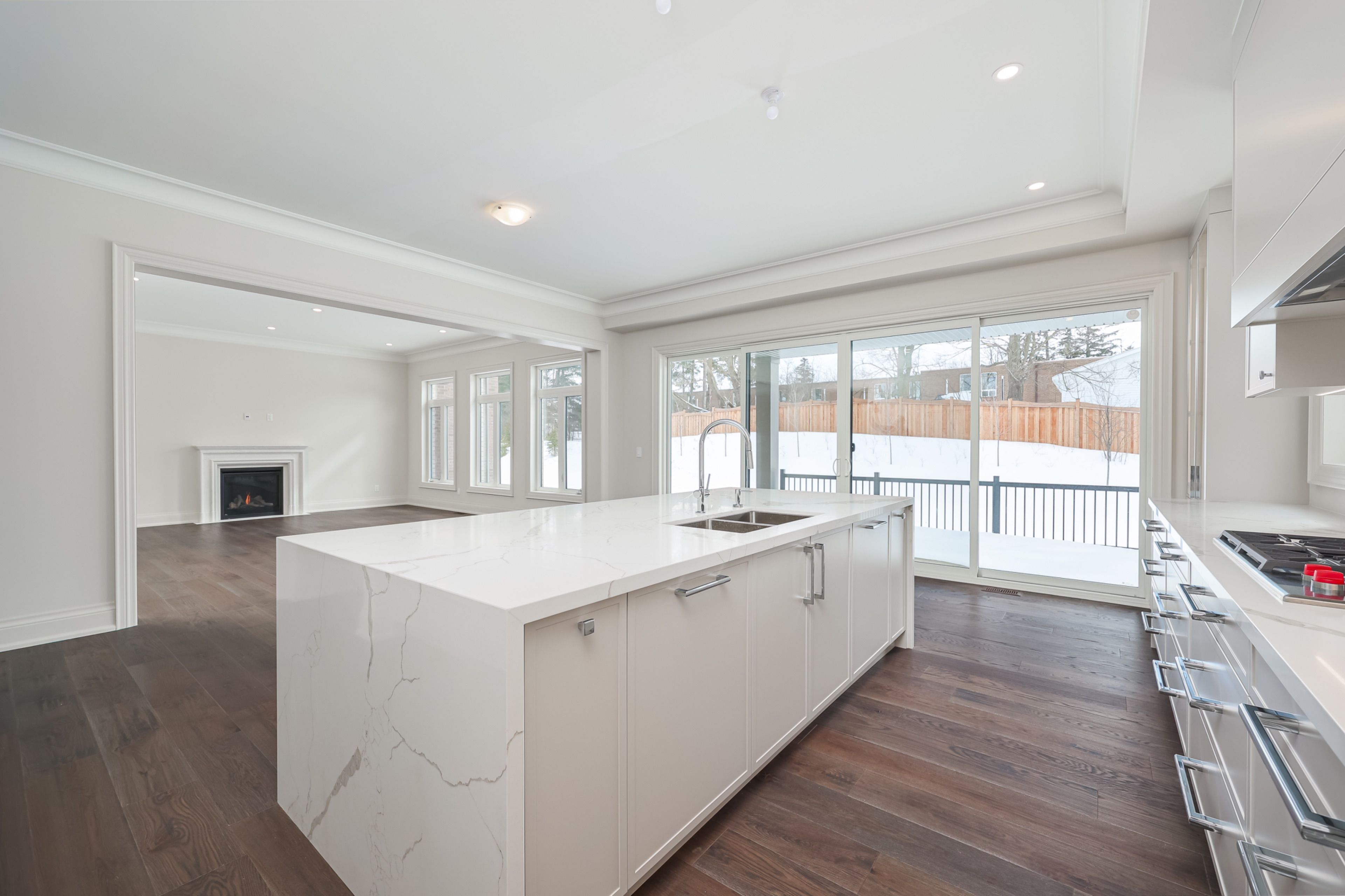 • Upgraded chef's kitchen with large island and premium appliances.