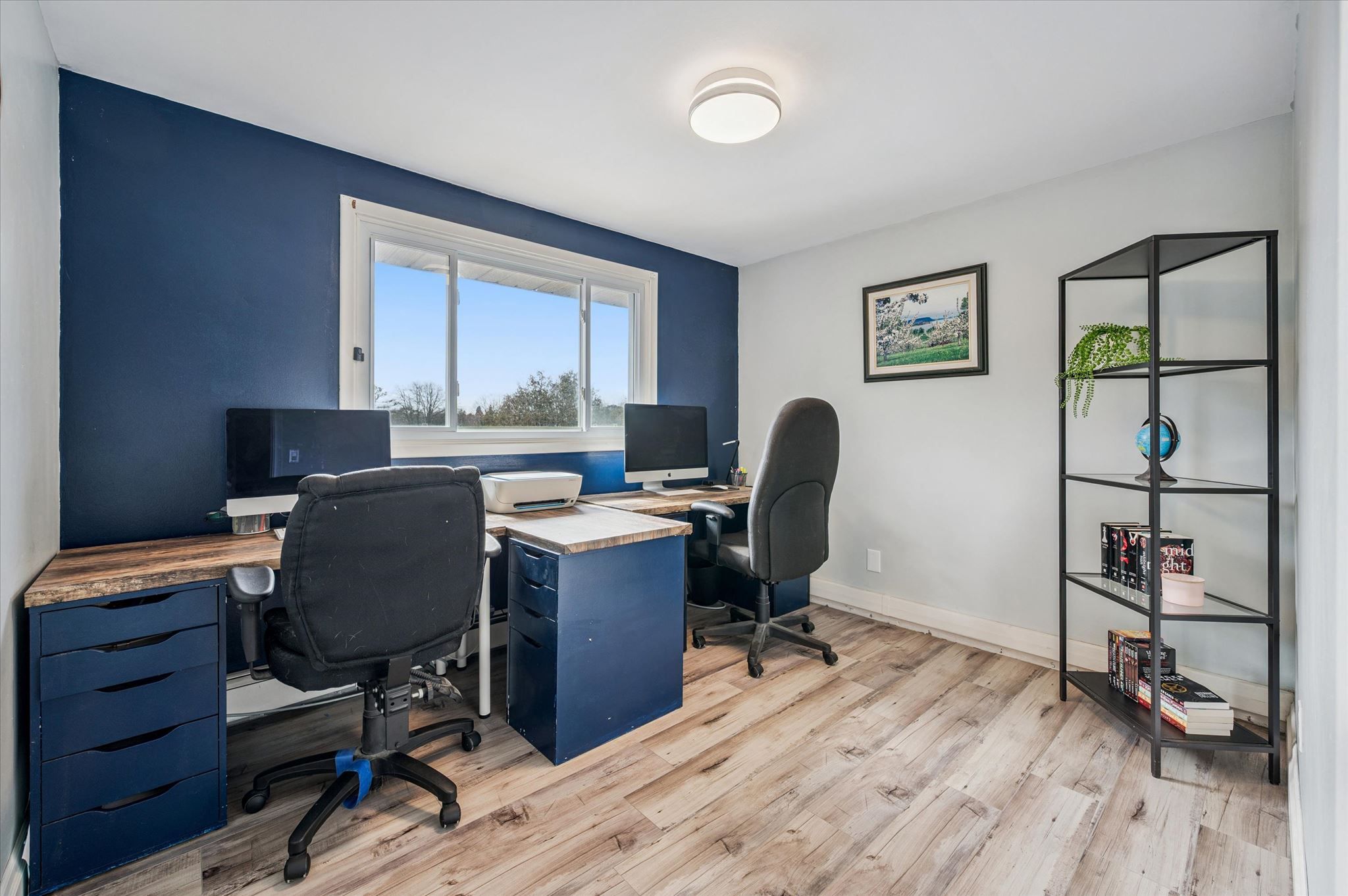• Finished basement includes an additional bedroom and a large rec room.