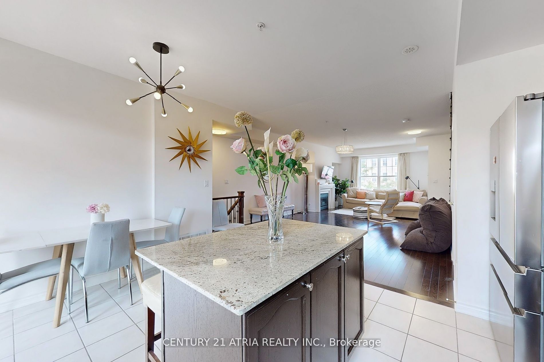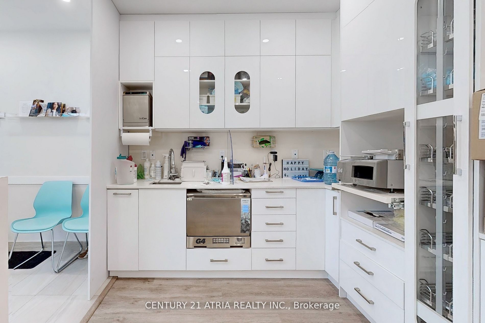 Income-generating residential + commercial townhouse a rare opportunity to own a beautifully renovated mixed-use property featuring a thriving dental clinic on the ground level. The commercial space includes two functional rooms and a 2-piece bath, ideal for business owners and investors alike. Upstairs, the residential area welcomes you with 9-foot ceilings, rich hardwood floors, and an elegant gas fireplace in the open-concept living/dining area. Step outside to a generously- sized deck, perfect for entertaining or relaxing evenings. The upgraded eat-in kitchen is a chef's dream-complete with a contemporary design, oversized island, and stunning stone countertops offering both style and practicality. The upper floor includes 3 spacious bedrooms and two modern bathrooms, showcasing meticulous craftsmanship and upscale finishes throughout. Ideally located minutes from top-rated schools, parks, shopping plazas, highway 404, and a bustling community centre. Whether you're looking to invest, live, or start a business-this property combines luxury living with commercial potential in one seamless package.