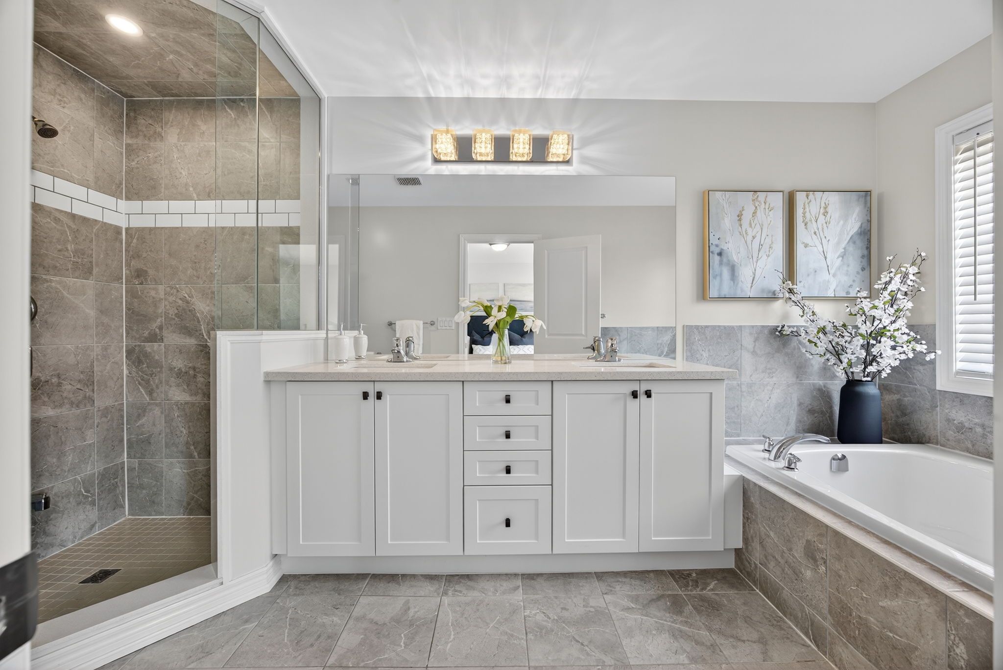 • Modern kitchen with quartz countertops and stainless steel appliances.