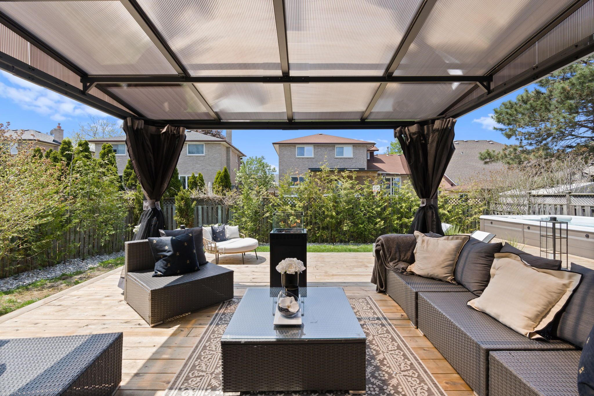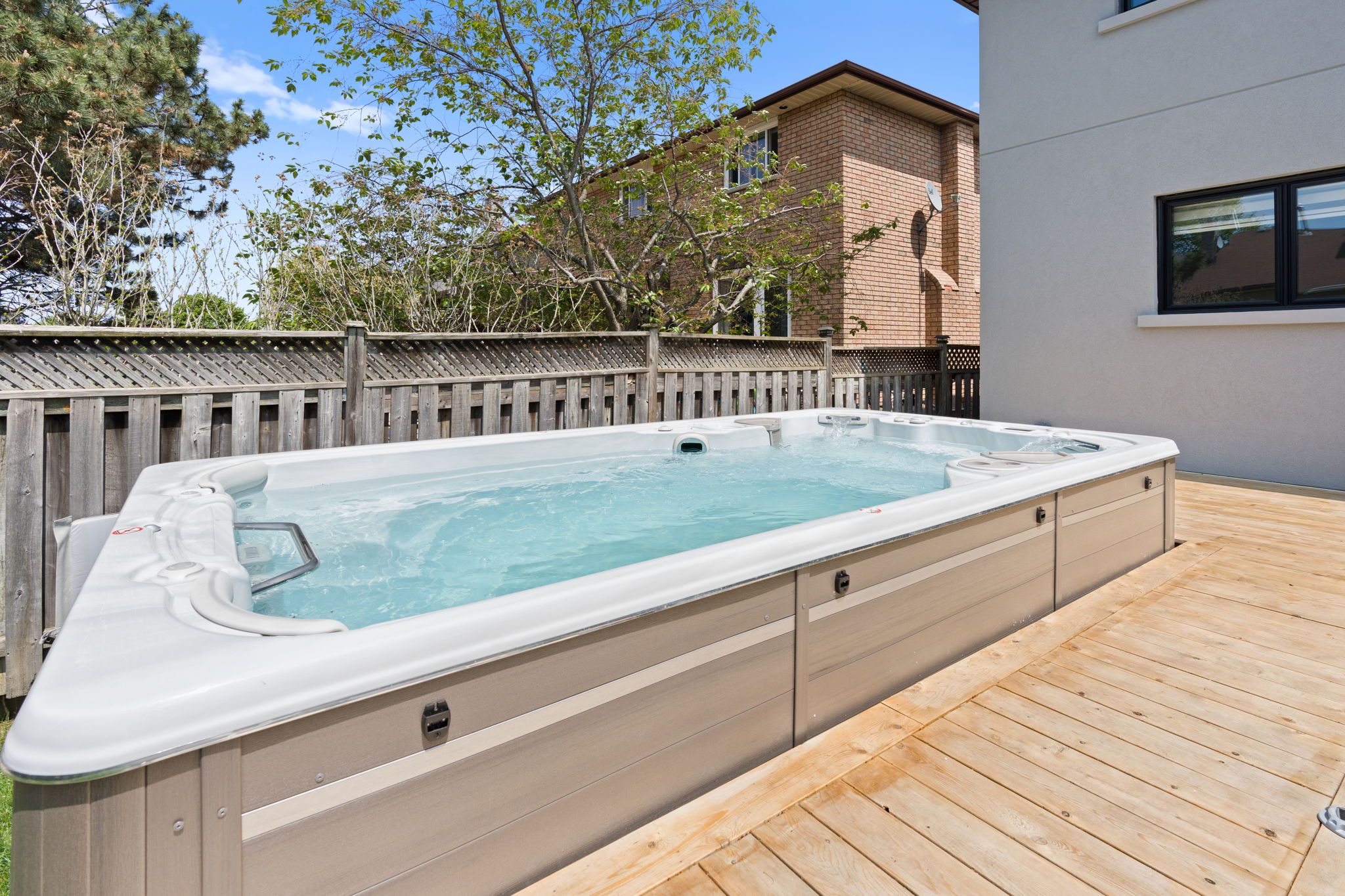 • Backyard oasis includes a 14-ft swim spa for relaxation.