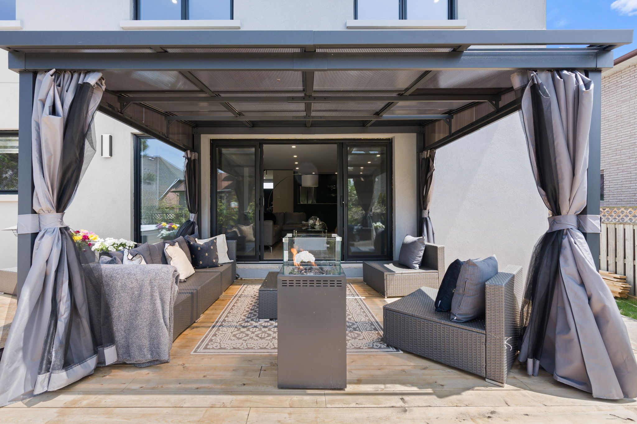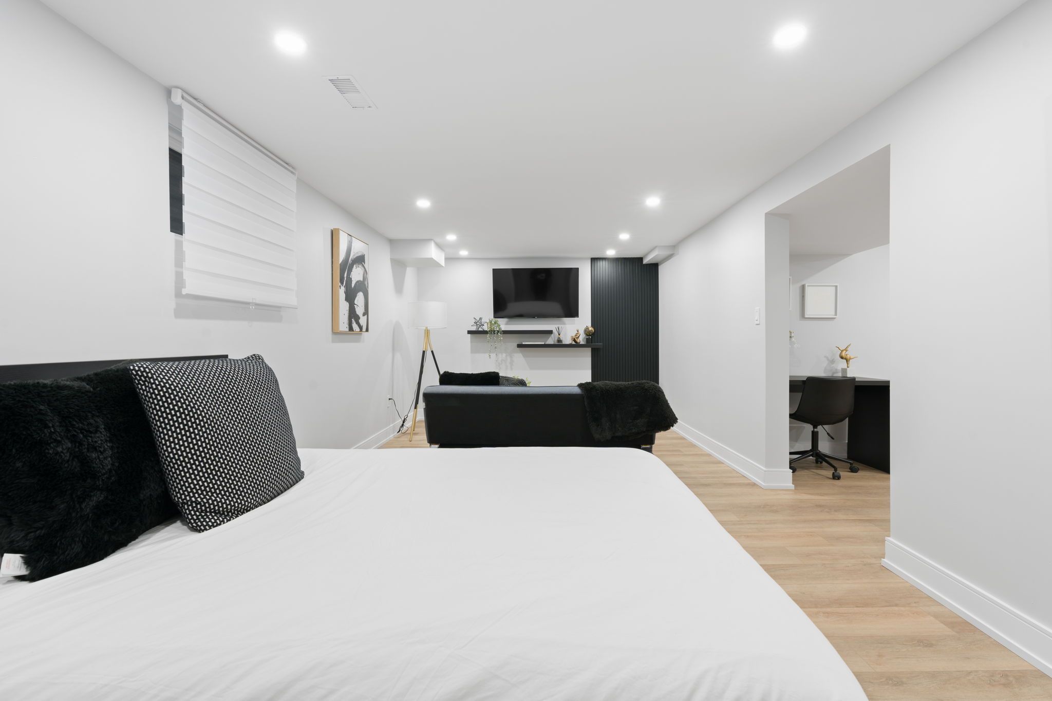 Nestled on a quiet, family-friendly street beneath the escarpment, this exceptional custom renovated home impresses at every turn. Offering over 4,200 sq. Ft. Of luxurious living space, it showcases high-end finishes and impeccable design throughout. The thoughtfully designed layout includes 4+2 bedrooms, 4 bathrooms, a private in-law suite with a separate entrance, and a backyard paradise with a swimspa! From the moment you enter, the stunning foyer and illuminated staircase set the tone, serving as a striking architectural centerpiece. The chef's kitchen is truly a showstopper, featuring custom black cabinetry, leather-finished quartz countertops, an oversized island, and top-of-the-line appliances. The main level also offers an open-concept formal living and dining area, along with a spacious family room anchored by a custom fireplace. Upstairs, you'll find three generously sized bedrooms and two beautifully designed bathrooms, each complete with a freestanding tub and separate shower. The main floor also includes a fourth bedroom or home office, plus an oversized spa-inspired bathroom with conveniently located laundry. The finished basement spans approximately 1,600 sq. Ft. And includes a private suite with its own kitchen, bedroom, and bathroom-ideal for in-laws, teenagers, or rental potential. An additional area offers endless possibilities, including a home gym, office, or secondary living space. Step outside to an backyard oasis designed for year-round enjoyment. The 14-ft swim spa features four jacuzzi seats, a swim current, and temperature control-perfect for summer swimming and winter relaxation, with far less maintenance than a traditional pool. Enjoy a turn key home with all the major updates: engineered hardwood flooring on the main and second levels, european front doors, gemstone stucco façade, new windows (2023), roof (2022), garage doors (2023), security cameras, and google doorbell. A truly exceptional home-this is a must-see!