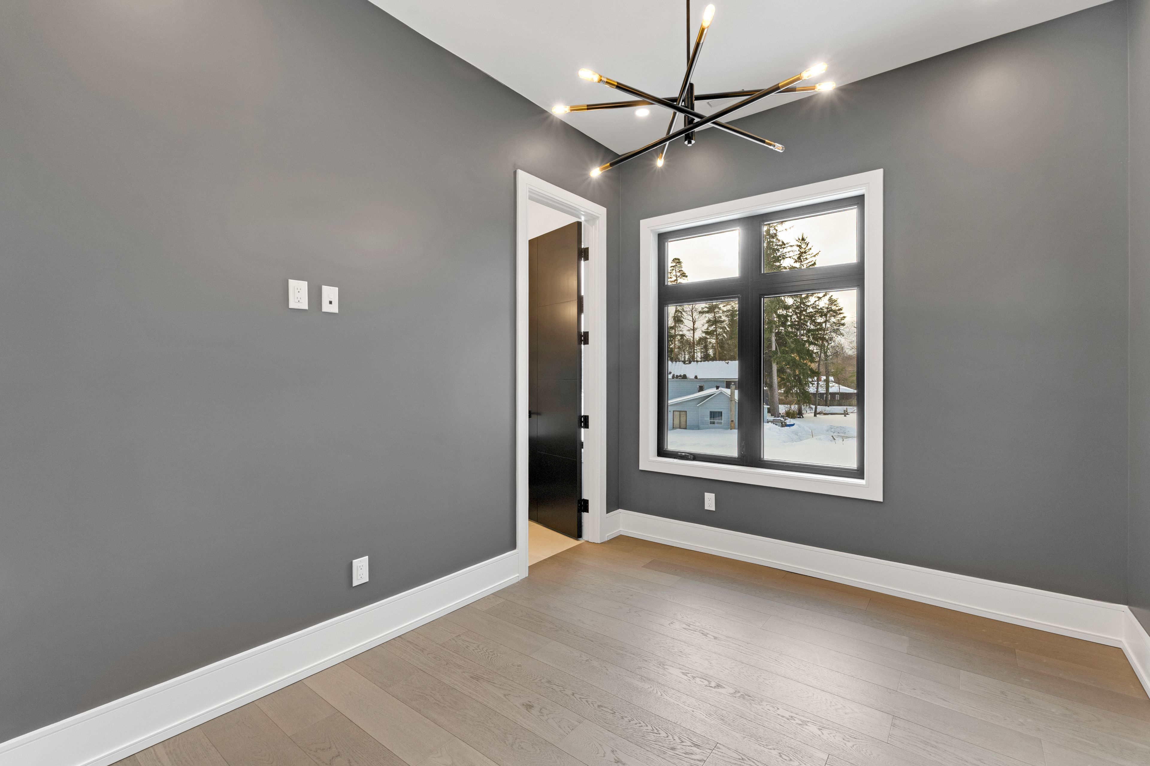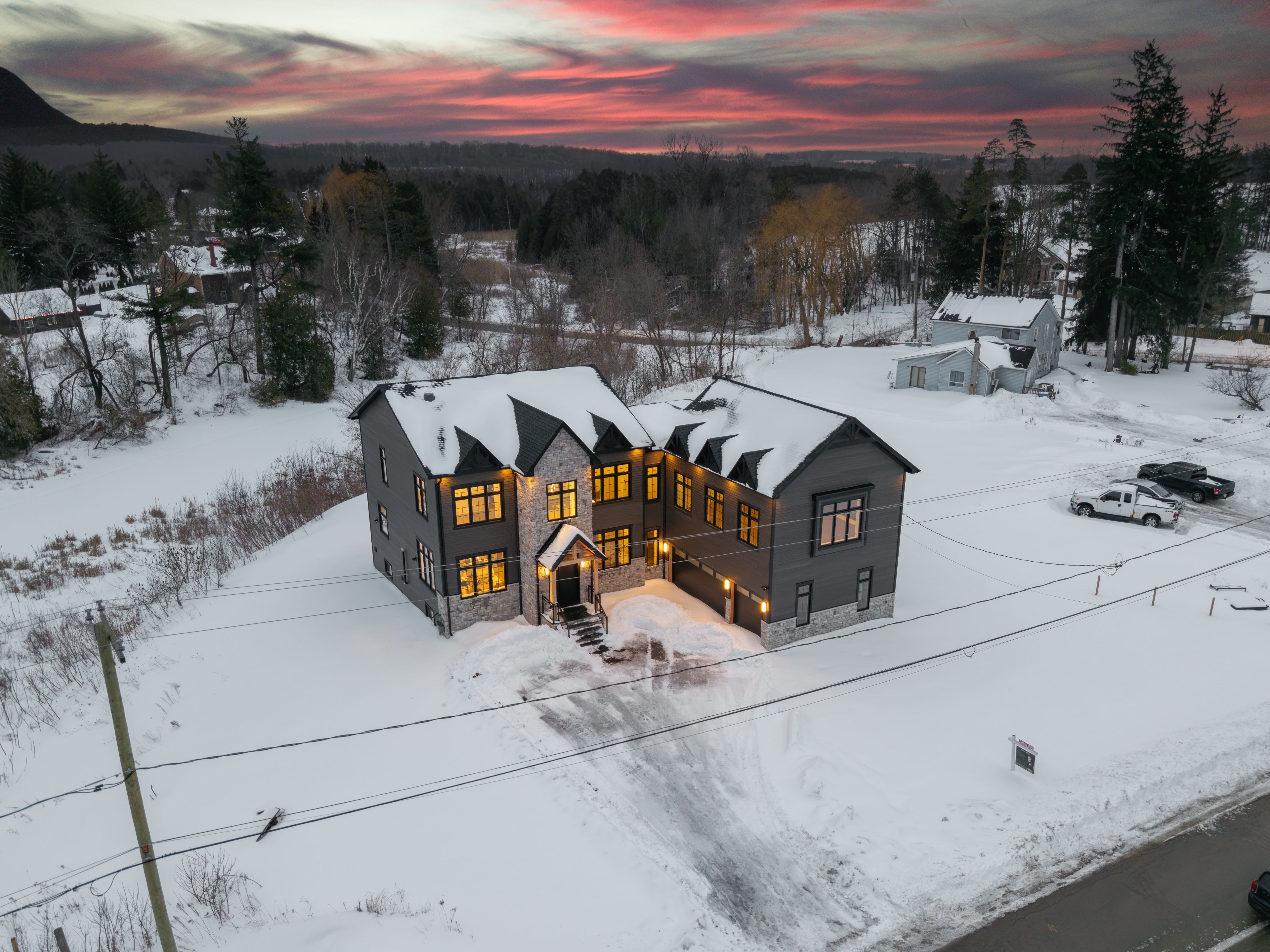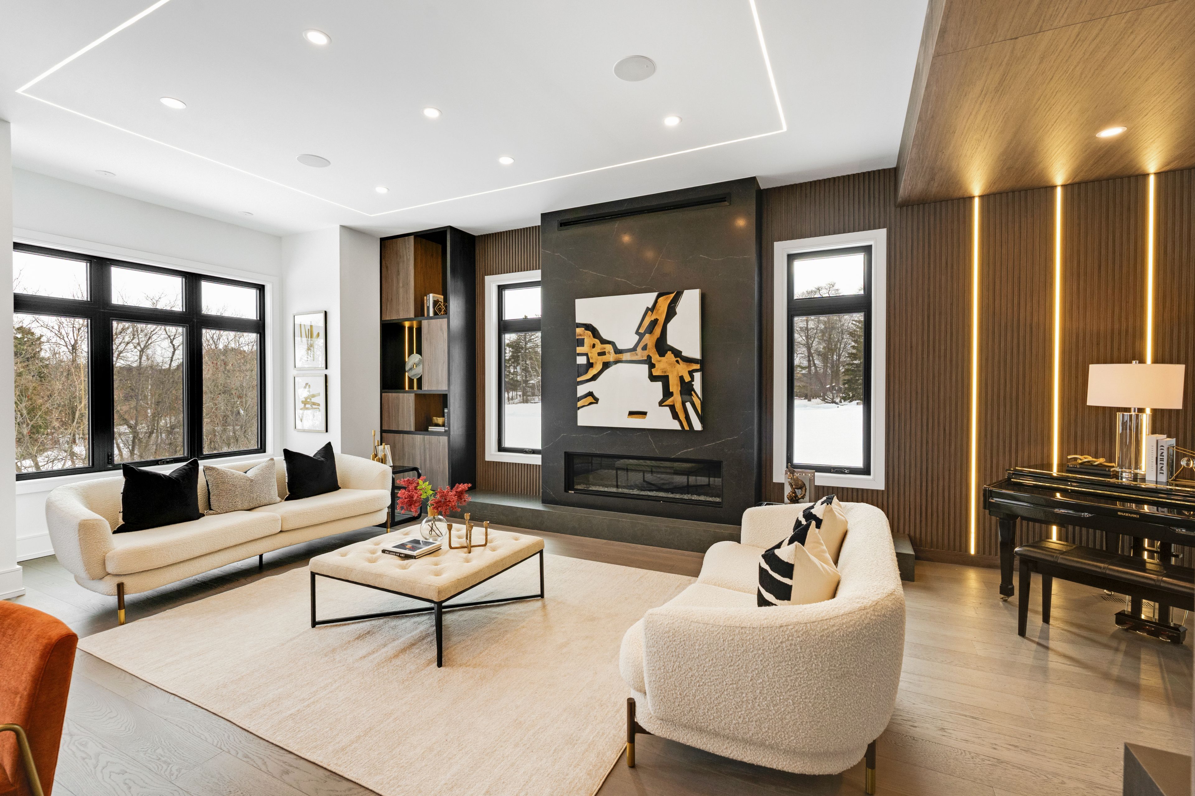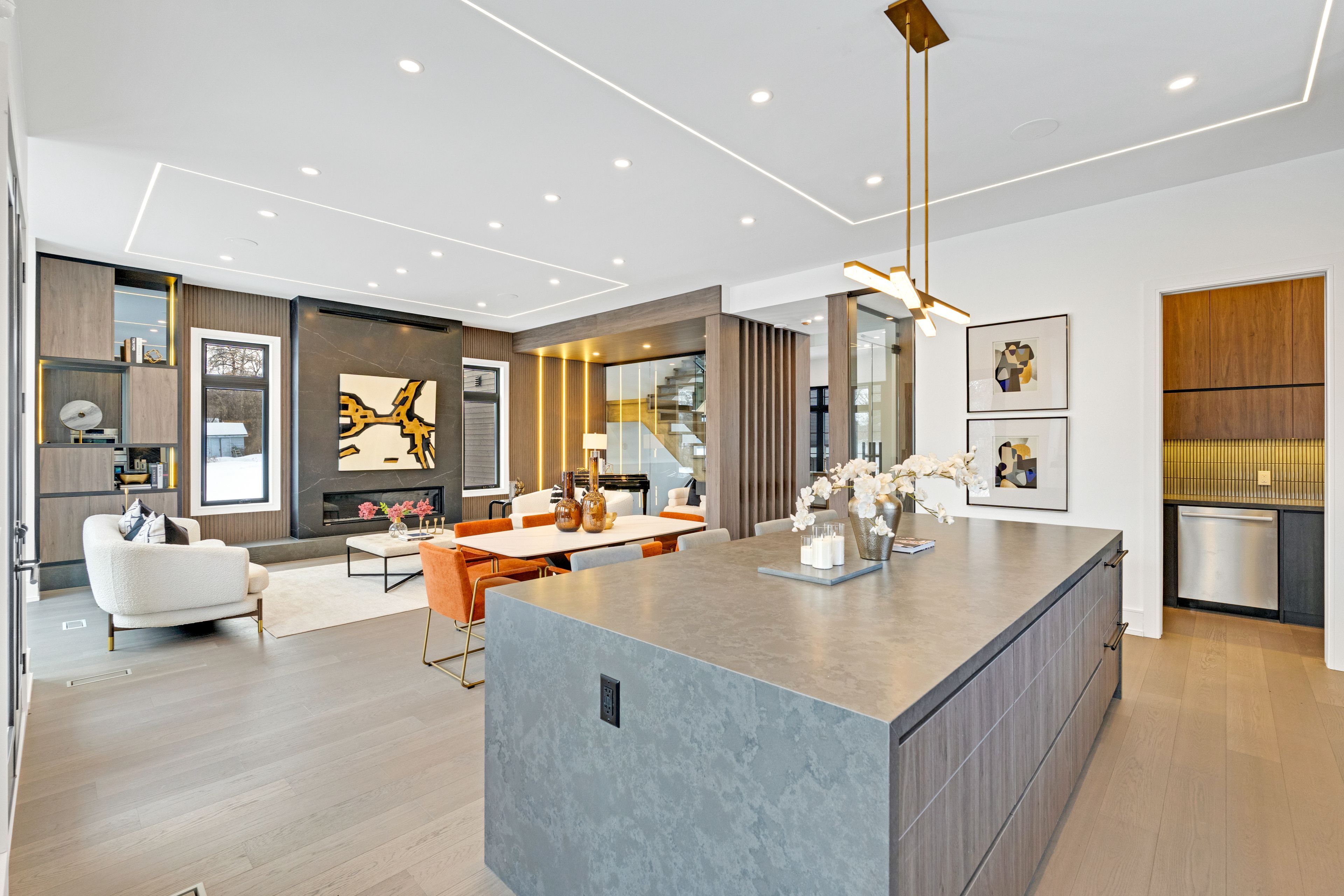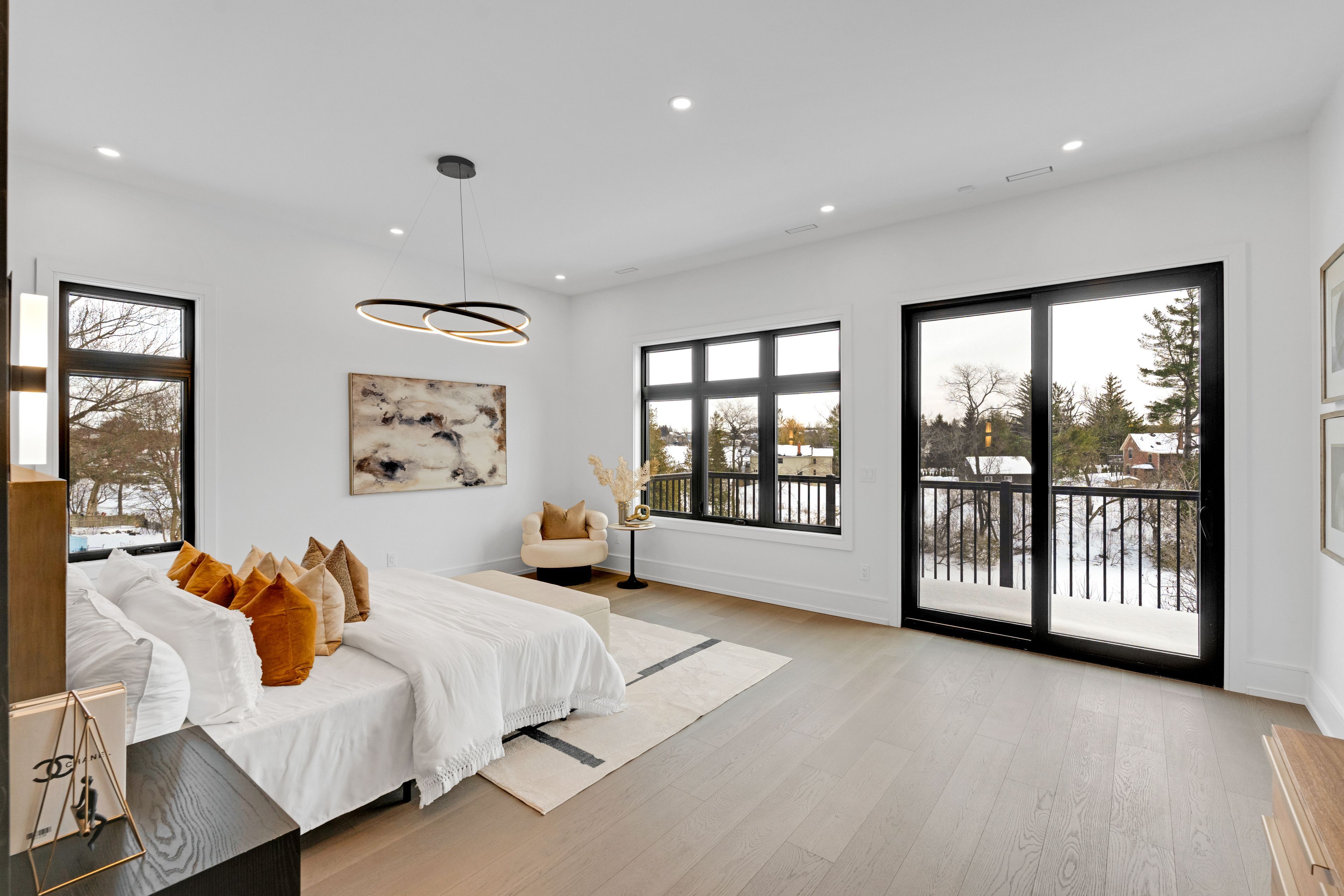 An extraordinary waterfront offering, this residence exemplifies architectural presence and timeless lakeside luxury. Peacefully positioned along 100+ feet of prime shoreline and set on an expansive 214 x 349 ft lot, this one-of-a-kind property blends refined sophistication with serene natural beauty, creating a seamless indoor-outdoor living experience. Thoughtfully designed with wide-plank hardwood flooring, custom millwork, and curated designer finishes, the home features flowing principal spaces enhanced by integrated led ceiling details and statement lighting. A striking glass elevator adds both convenience and architectural presence, reinforcing the home's elevated design. The open-concept kitchen is a true showpiece, wrapped in premium stone surfaces and bespoke cabinetry, and equipped with top-tier panelled appliances. Designed for effortless entertaining and elevated everyday living, it anchors the home with both function and refined style. Offering 4 spacious bedrooms and 4 beautifully appointed bathrooms, the residence delivers comfort, privacy, and exceptional craftsmanship throughout. The primary suite serves as a private retreat with a generously scaled, spa-inspired ensuite finished with luxurious details and premium fixtures. A large loft above the garage, complete with a rough-in for an additional washroom, provides outstanding flexibility for future expansion-ideal for a guest suite, studio, or multigenerational living. The 3-car garage with car lift further enhances the home's rarity. Beyond its architectural elegance, the property presents significant long-term value with an approved severance application (with conditions), offering the opportunity to build an additional residence. A rare offering defined by scale, craftsmanship, and a level of finish seldom seen on the market.