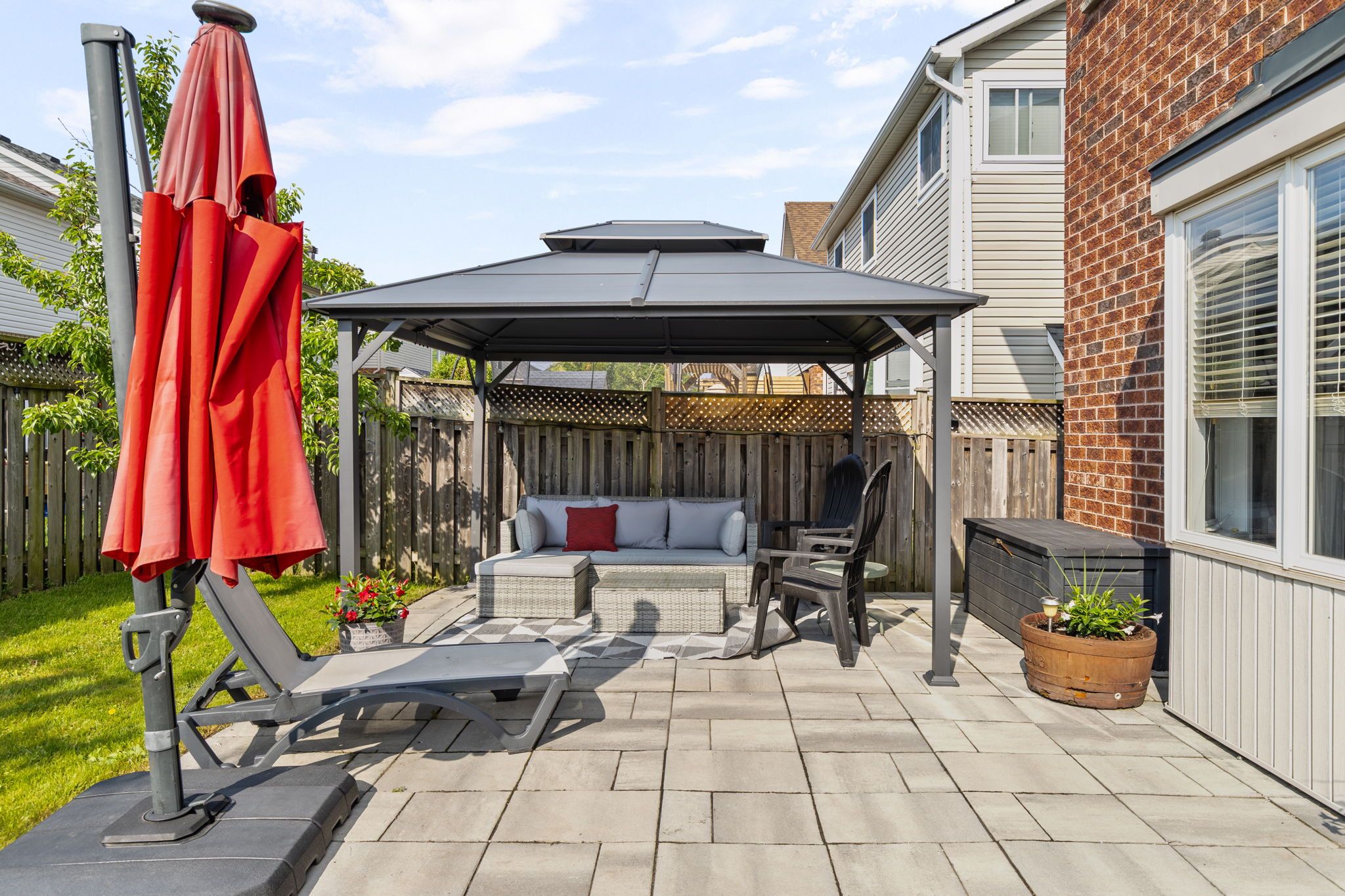 • Beautifully landscaped backyard with a stone patio for outdoor relaxation.