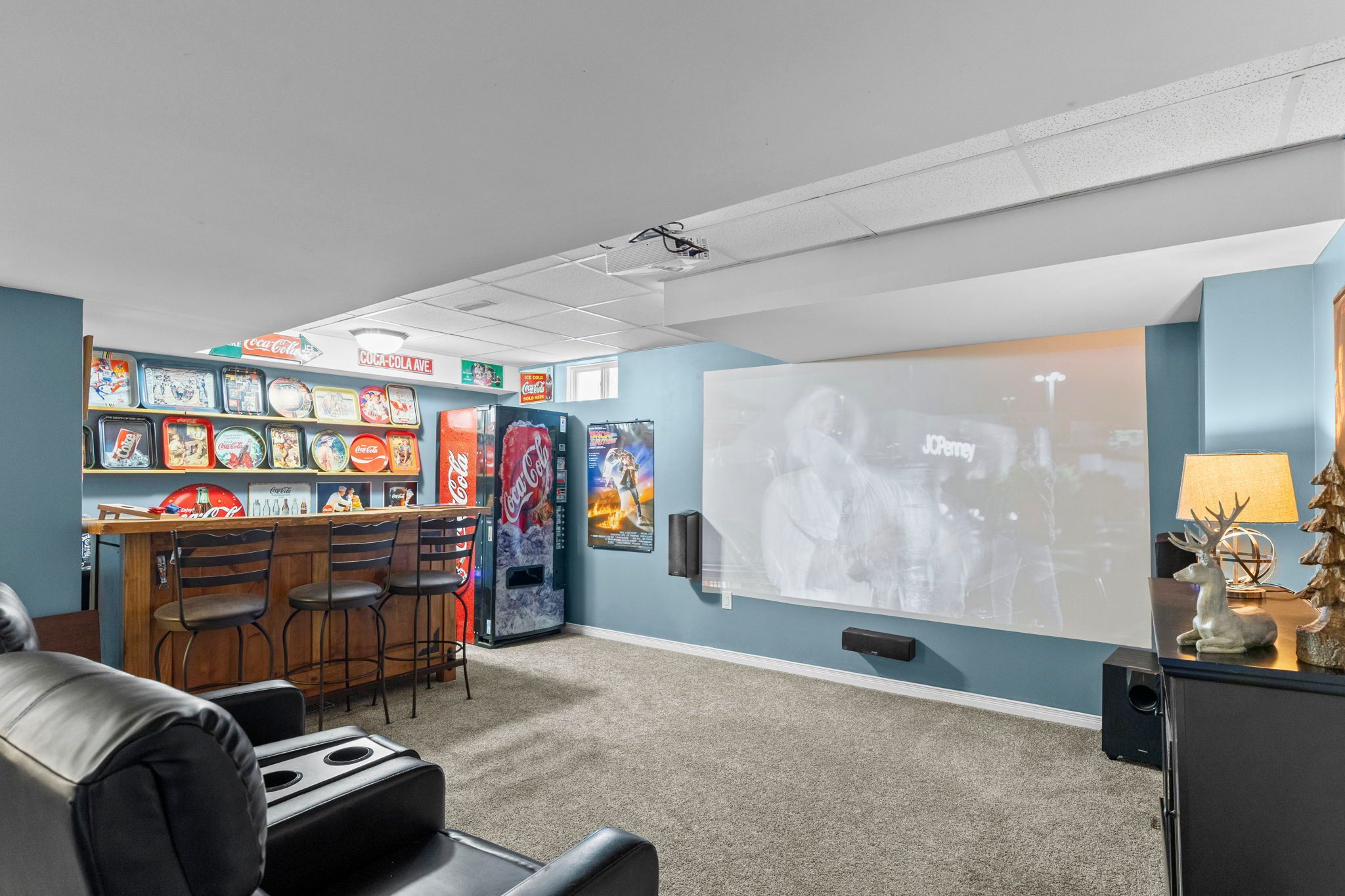 • Fully finished basement includes a dedicated theatre room for entertainment.