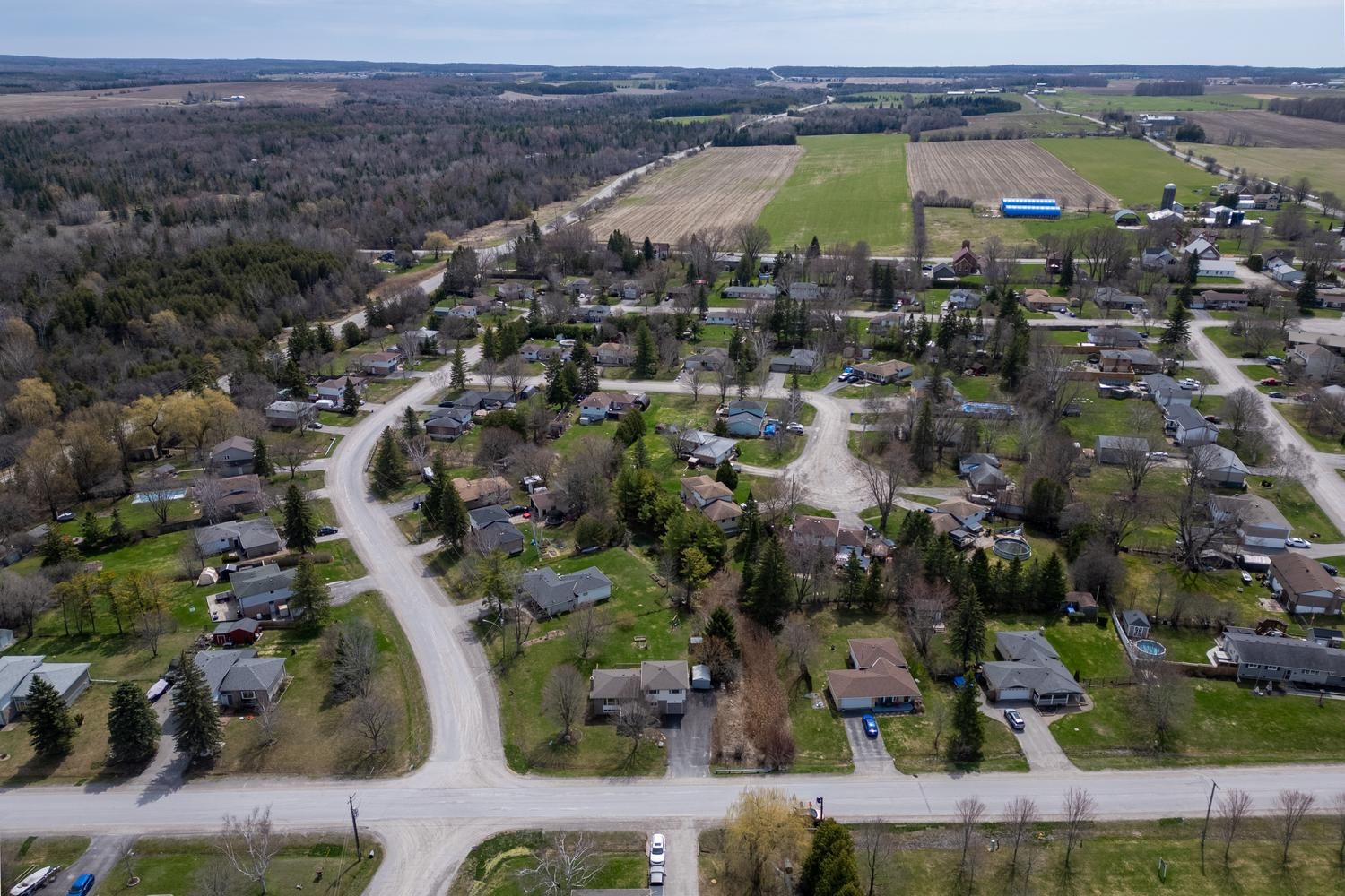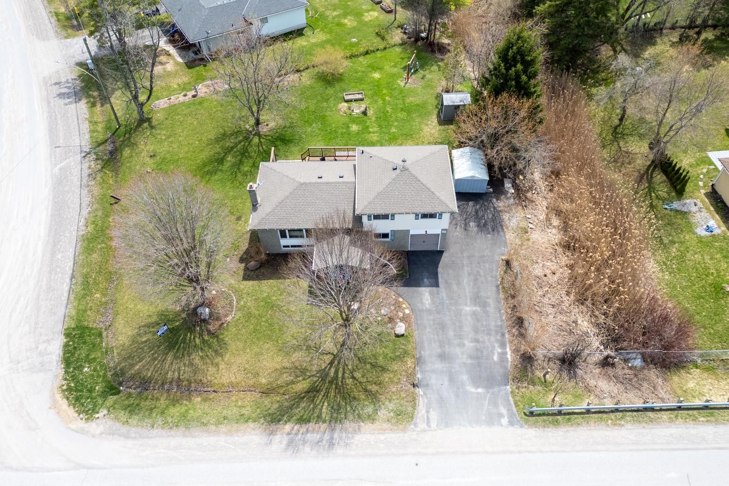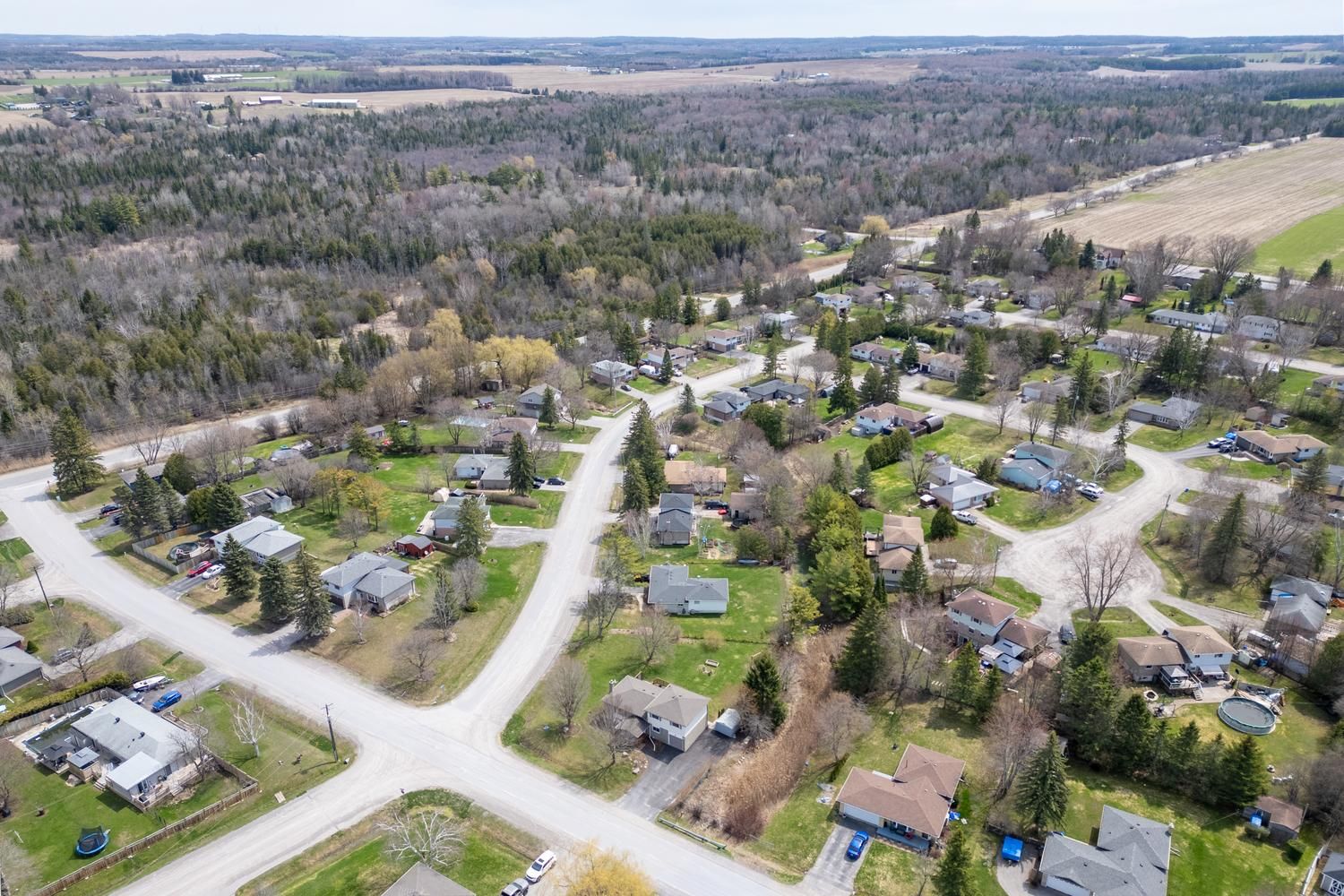Experience the charm of small-town living on a spacious corner lot, in a great neighbourhood and community. Just a short walk to the public school and a convenient school bus for all other schools, which are not out of the area. Nestled in a welcoming community, you'll enjoy easy access to all your daily necessities along with a variety of eateries within walking distance. The local rec center and arena are hubs of activity, hosting events that celebrate the spirit and beauty of this quaint hamlet. This beautifully maintained home features a newer kitchen with sliding doors that open out to a large two-tiered deck, perfect for relaxing or entertaining. A new front covered porch for extra outdoor living space. Two gas fireplaces, one in the living room and the other in the rec room. A single-car garage with direct access to the home and a back door to the yard for added convenience. With an easy commute just a few minutes from the 407, this property perfectly blends peaceful small comfort with modern accessibility. Upgrades in the past ten years include a gas furnace, a gas hot water tank owned, central air, a garden shed, an upgraded 200 amp hydro panel, kitchen, porch, deck, flooring, roof 2018, an ensuite, and a newly paved driveway in 2025 and garage door. Park across the road.