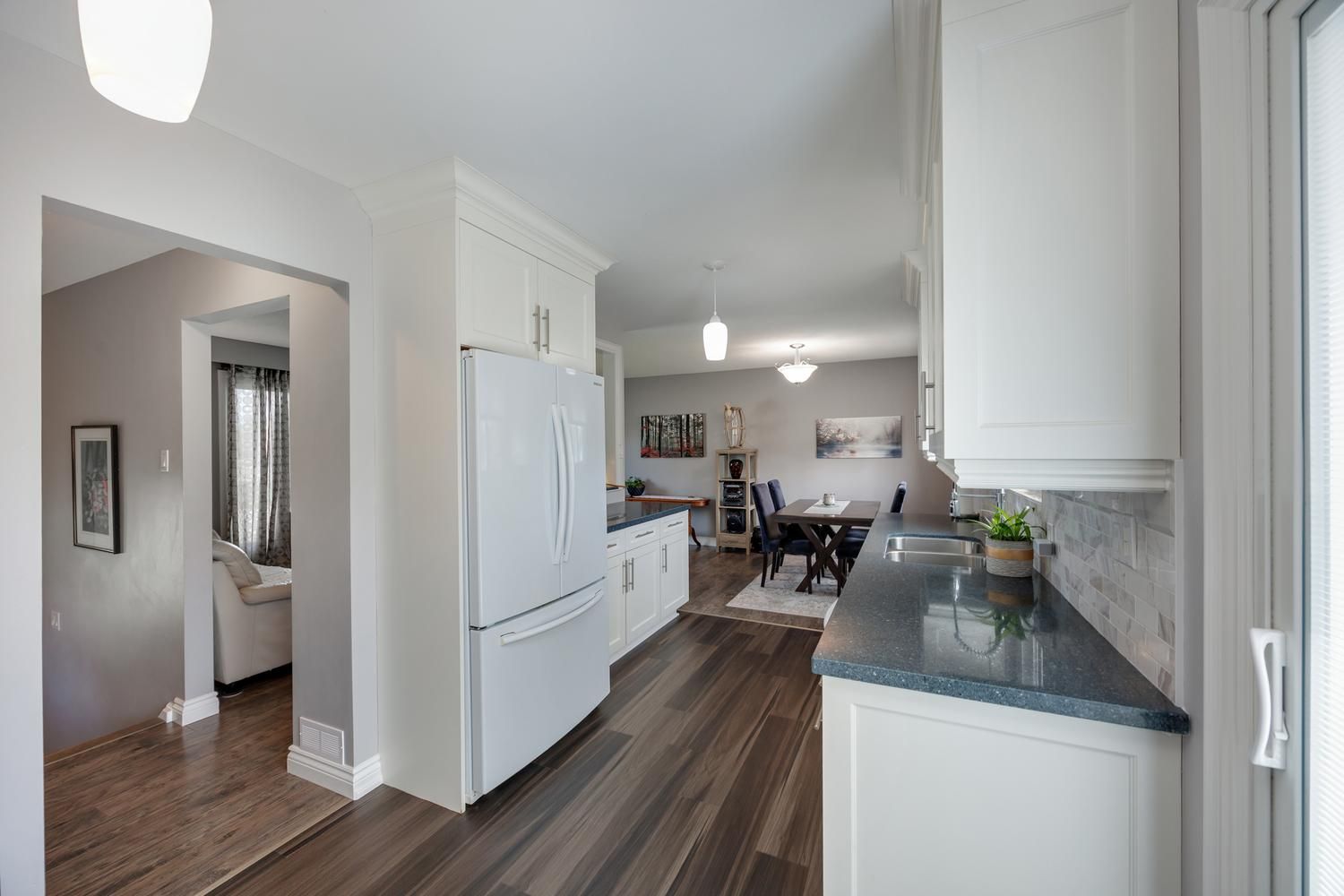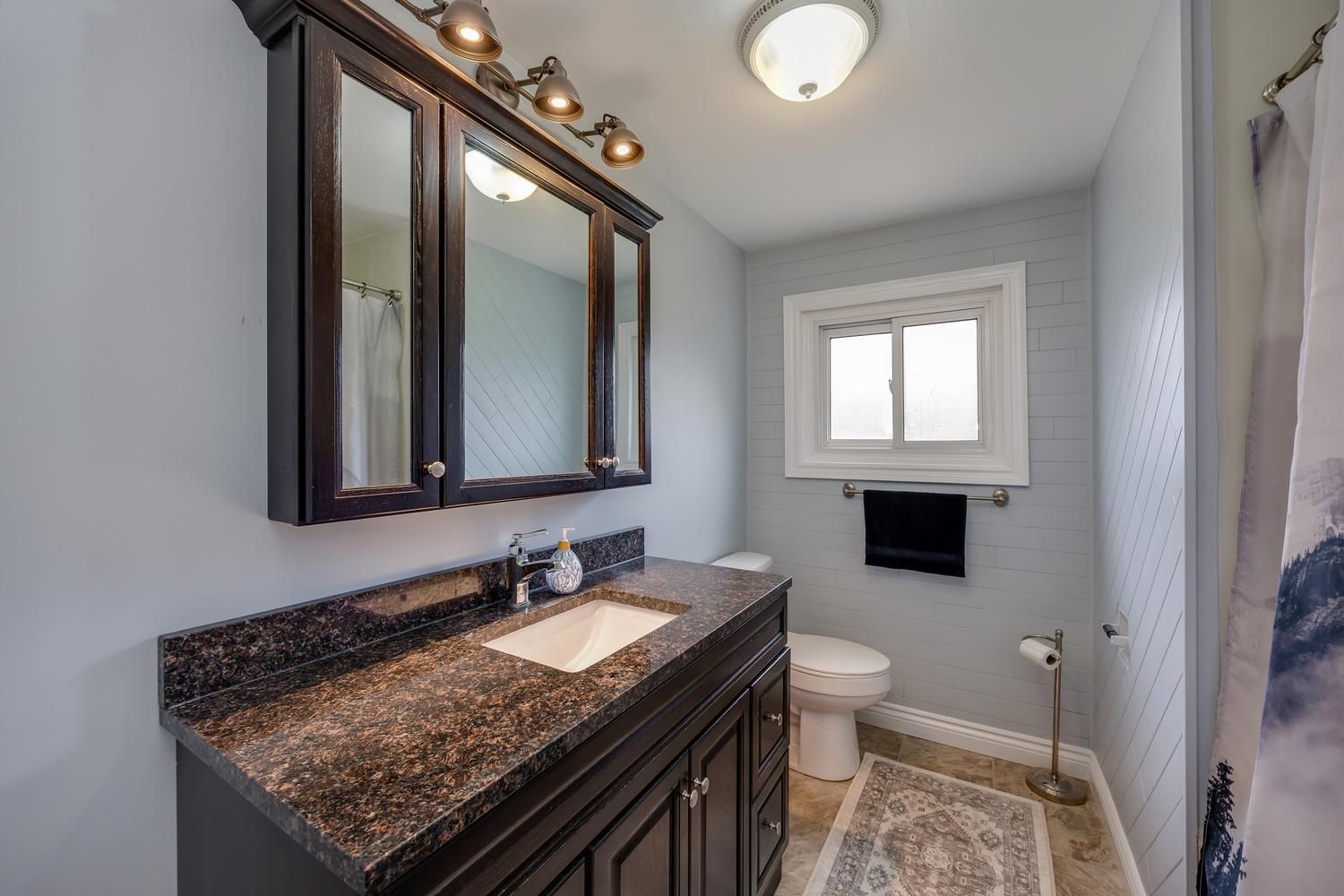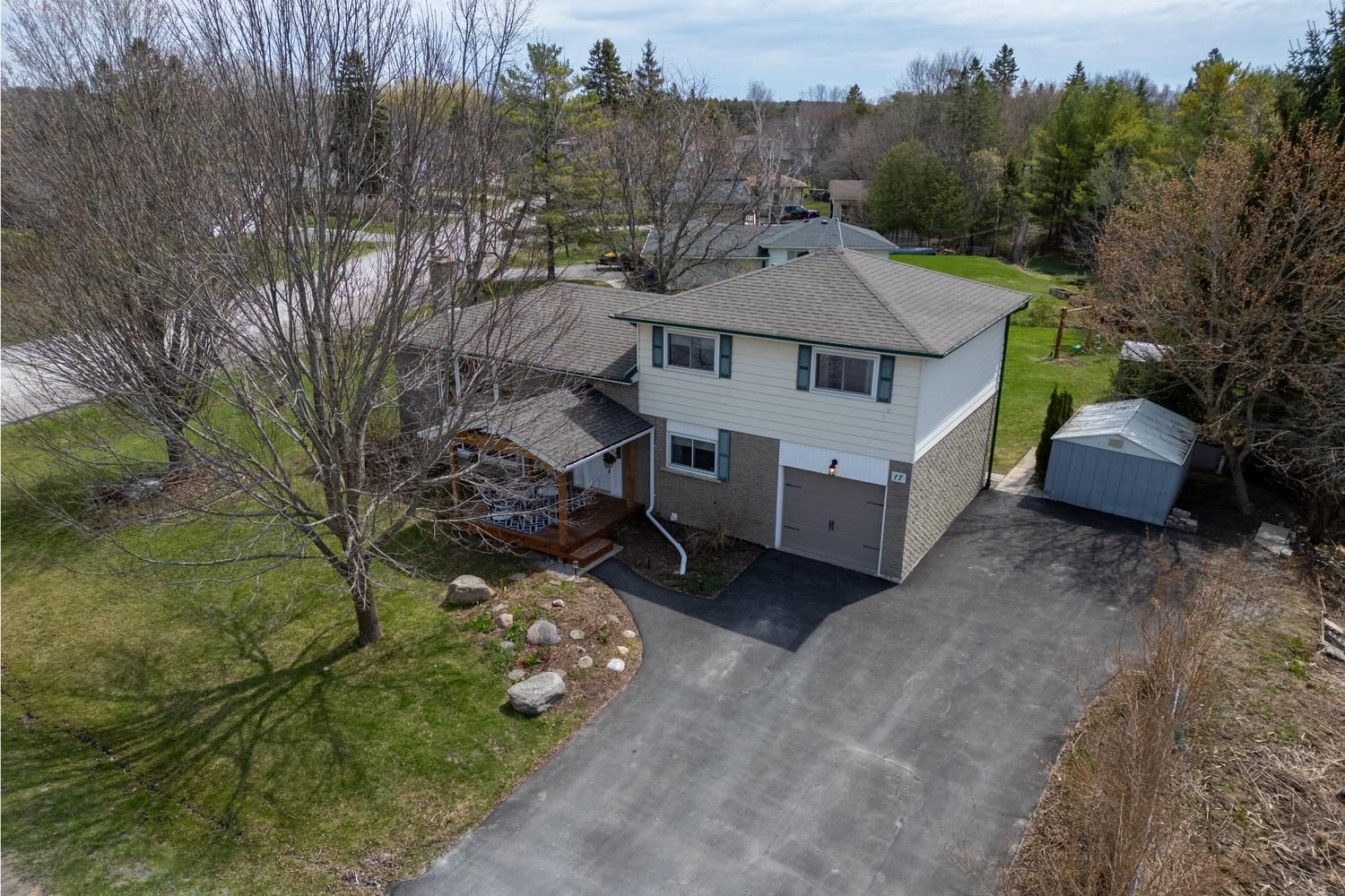 Experience the charm of small-town living on a spacious corner lot, in a great neighbourhood and community. Just a short walk to the public school and a convenient school bus for all other schools, which are not out of the area. Nestled in a welcoming community, you'll enjoy easy access to all your daily necessities along with a variety of eateries within walking distance. The local rec center and arena are hubs of activity, hosting events that celebrate the spirit and beauty of this quaint hamlet. This beautifully maintained home features a newer kitchen with sliding doors that open out to a large two-tiered deck, perfect for relaxing or entertaining. A new front covered porch for extra outdoor living space. Two gas fireplaces, one in the living room and the other in the rec room. A single-car garage with direct access to the home and a back door to the yard for added convenience. With an easy commute just a few minutes from the 407, this property perfectly blends peaceful small comfort with modern accessibility. Upgrades in the past ten years include a gas furnace, a gas hot water tank owned, central air, a garden shed, an upgraded 200 amp hydro panel, kitchen, porch, deck, flooring, roof 2018, an ensuite, and a newly paved driveway in 2025 and garage door. Park across the road.