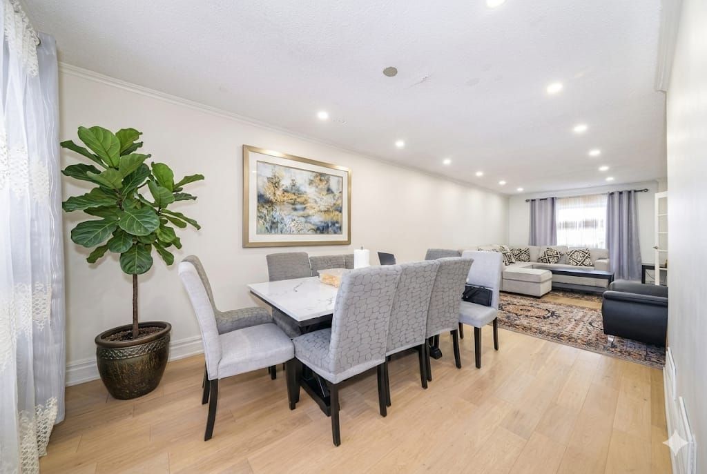 Welcome to 17 dakin dr, a rare chance to own a pie-shaped lot in a mature, family friendly neighbourhood with plenty of outdoor space. This bright home features hardwood floors and pot lights throughout, a beautifully tiled kitchen with a walkout to the backyard, and main floor laundry with direct access to the double car garage. The legally finished basement offers two bedrooms and a separate side entrance, perfect for rental income or extended family. Renovated washrooms add comfort, and the home is conveniently located within walking distance to schools, grocery stores, and medical amenities.
