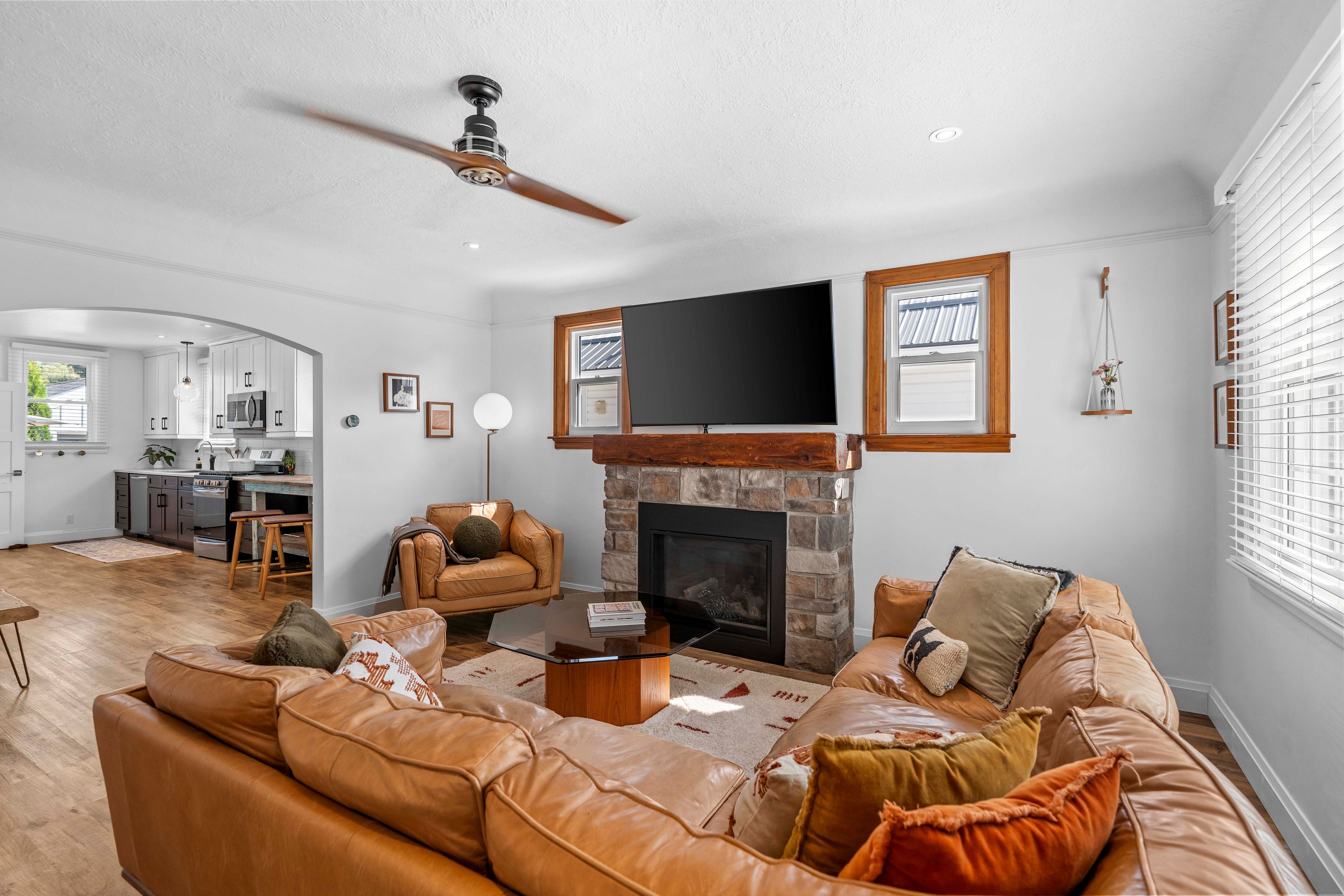 Welcome to 17 davis street w, simcoe. Nestled in a desirable, mature, treed neighbourhood, this beautifully updated 1. 5-storey home is truly one of a kind. With thoughtful renovations throughout, it blends modem upgrades with stylish, trendy accents-making it a dream for today's homeowner. Curb appeal is abundant from the moment you arrive, with a freshly paved driveway, new concrete walkways and front porch, all framed by mature trees and professionally landscaped gardens. Step into the inviting entrance featuring custom built-in storage to keep everything organized and out of sight. From there, you're welcomed into a spacious living room, filled with natural light from large windows, anchored by a cozy gas fireplace with mennonite stone, and accented by arched entry ways. The generous, sleek & stylish eat-in-kitchen is perfect for any home chef, offering both function & charm with custom built in cabinetry, newer appliances, exposed brick & an abundance of natural light from 3 large windows. The main floor also includes two bedrooms, a beautifully updated 4-piece bathroom, convenient main floor laundry & walk-in linen closet with a window. With its open-concept layout & practical design, this level offers complete self-sufficiency. Upstairs, the loft serves as a private & spacious retreat, currently accommodating a king-size bed & featuring 3 skylights, a 3-plece ensuite & office nook. Every bit of the home's original charm has been thoughtfully preserved, all while maintaining a fresh and updated vibe. An unfinished basement offers ample opportunity to make the space your own. Outside. Enjoy a fenced & landscaped yard with tall trees & evergreens. Freshly poured concrete entertaining space and a bonus detached garage-perfect for a creative studio, workshop, gym or home office. With endless upgrades, standout charm, and an unbeatable location, this home offers tremendous value. Book your private showing today! Full list of upgrades available in supplements