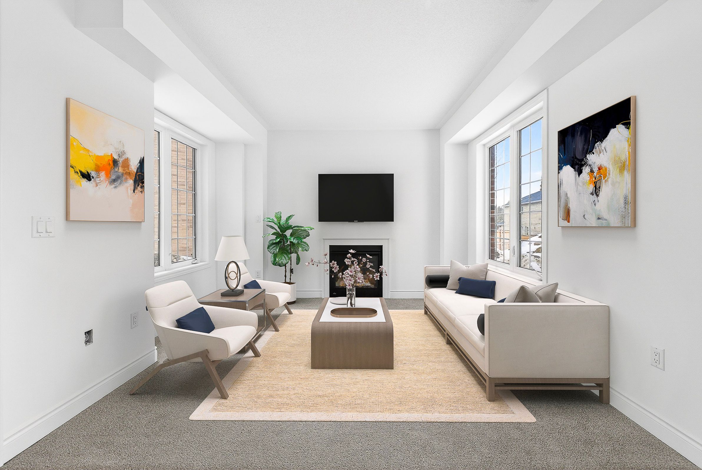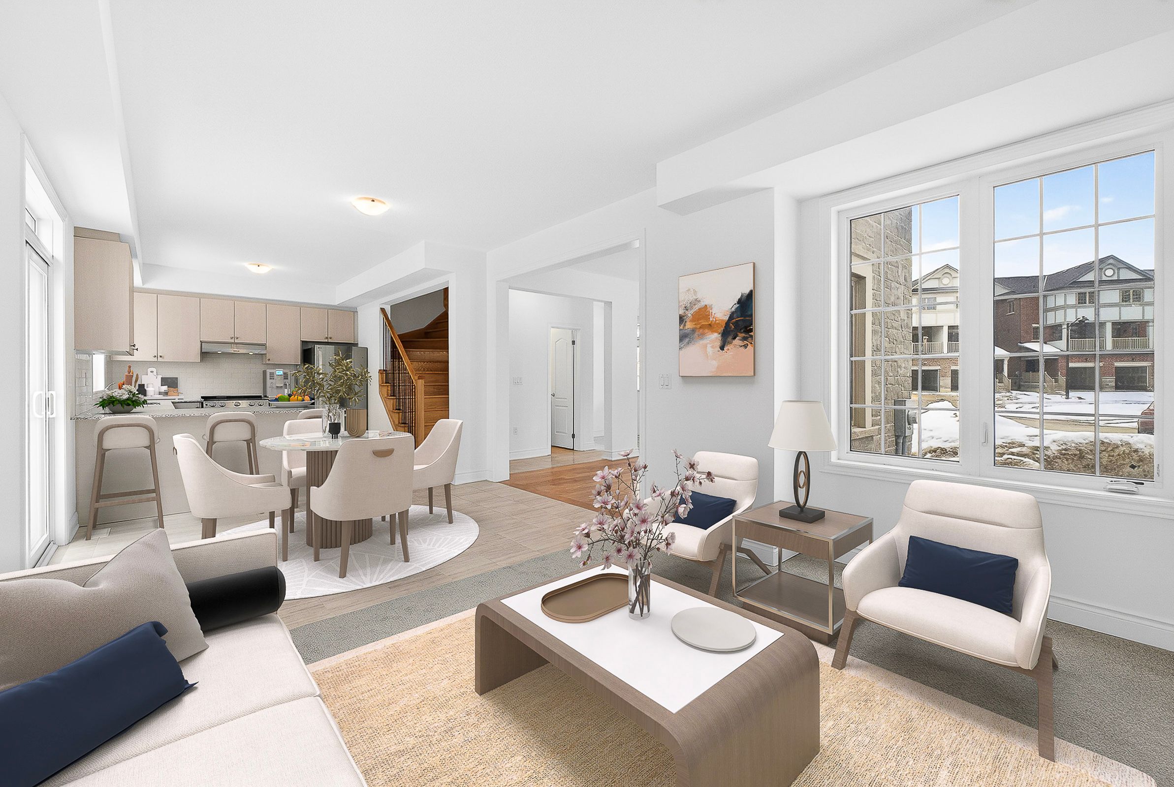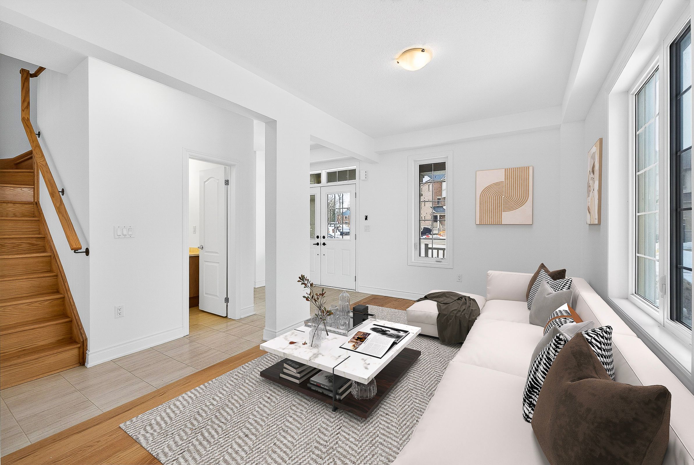 • Bright open-concept layout with soaring 9-foot ceilings and large windows.