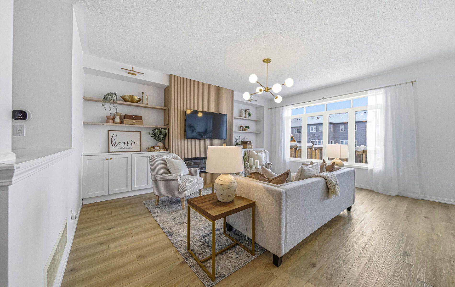 • Bright main floor with nine foot ceilings and modern electric fireplace.