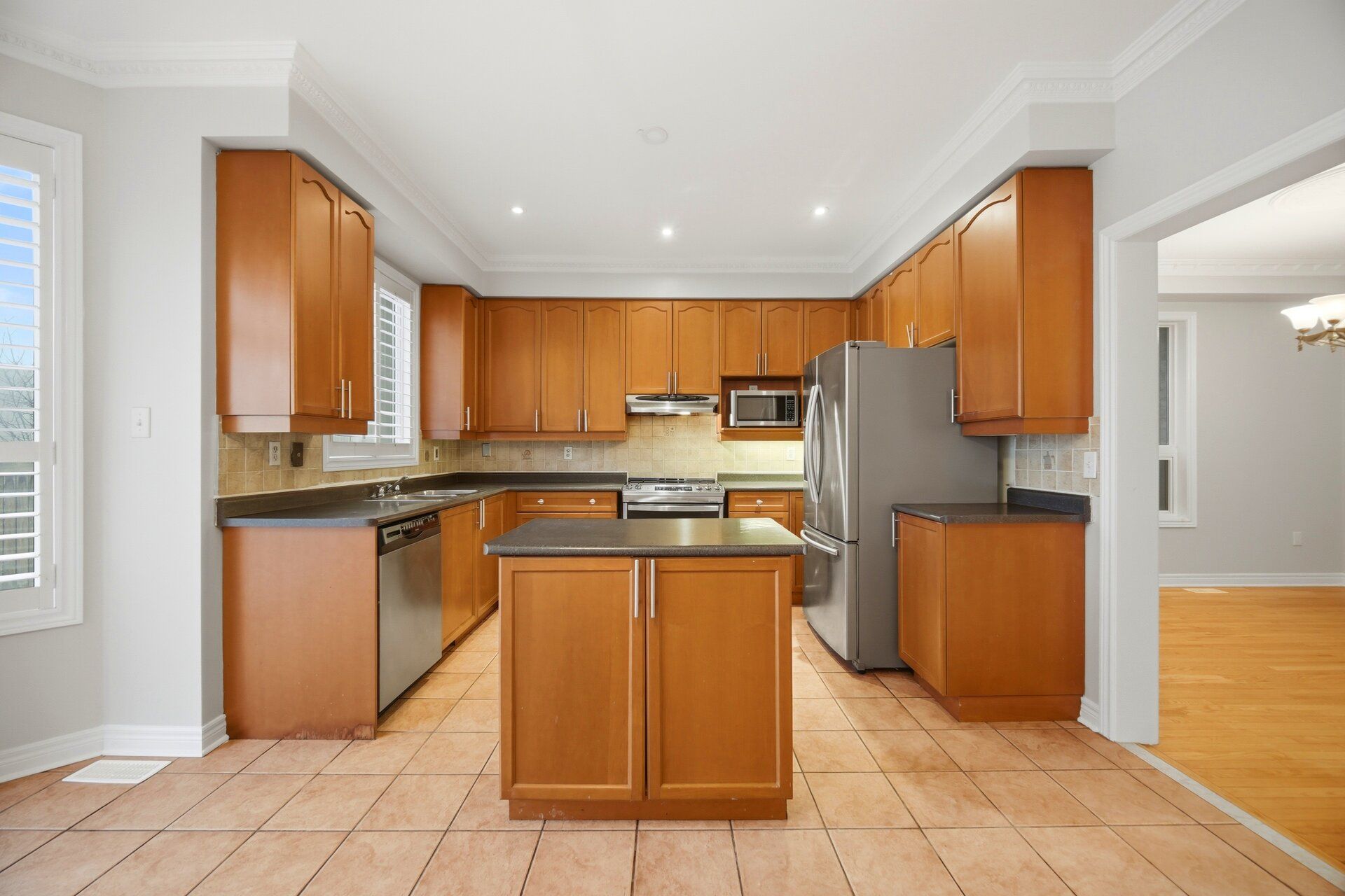 • Separate living, dining, and family rooms for ample space.