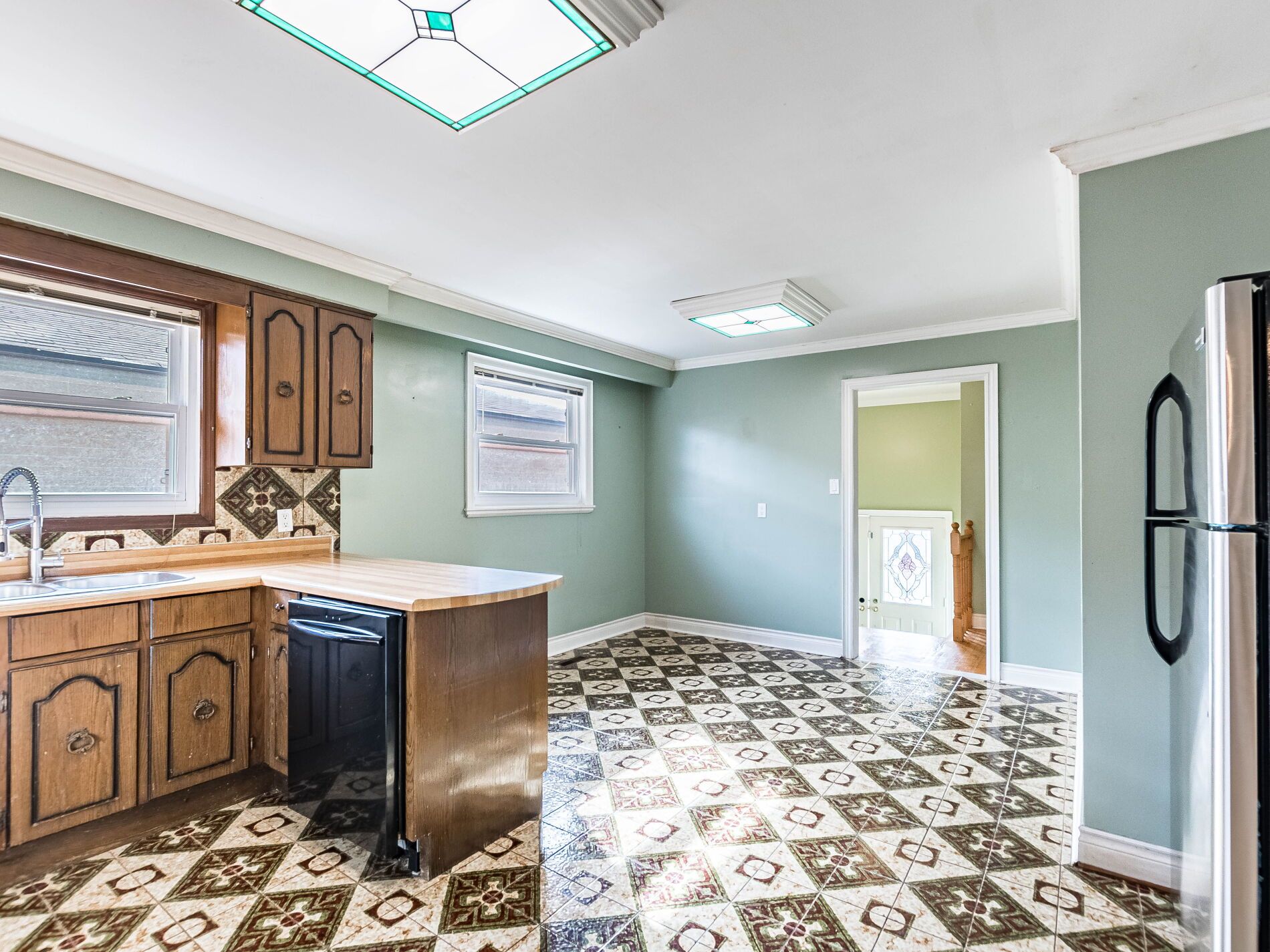 • Lower level features a separate entrance, two bedrooms, and a rec room.