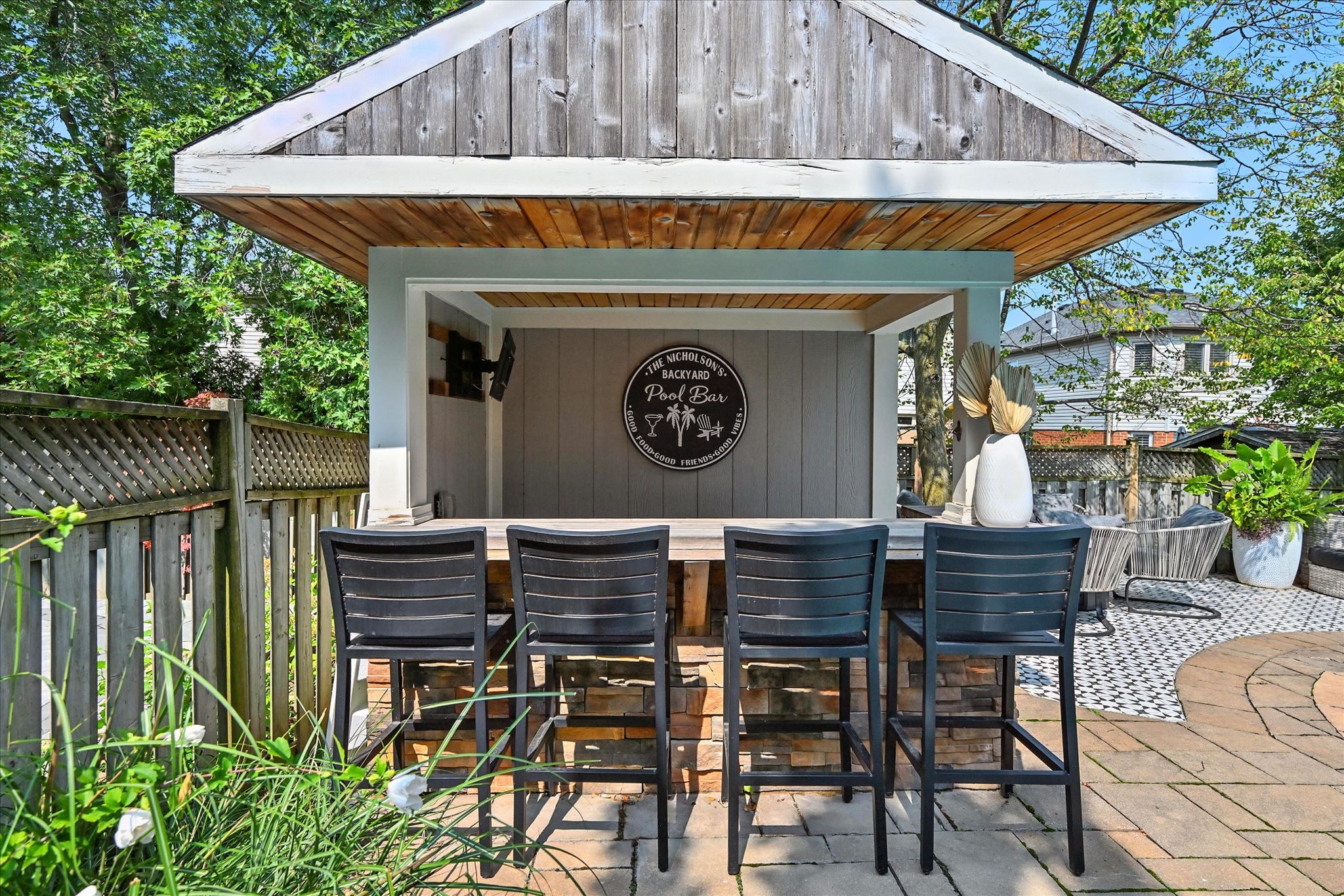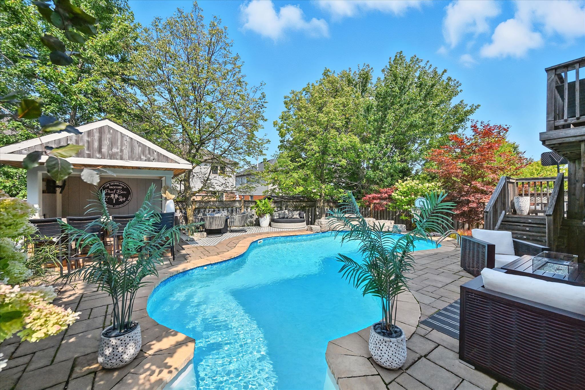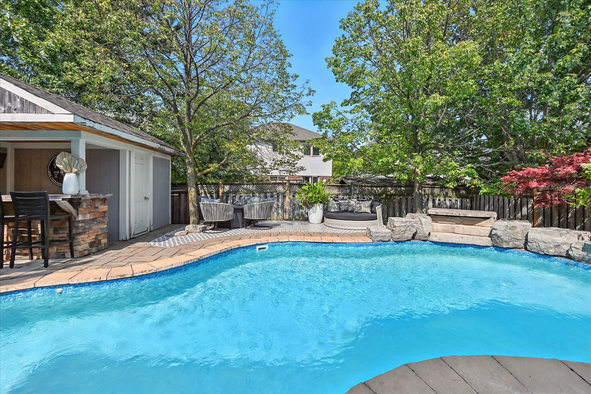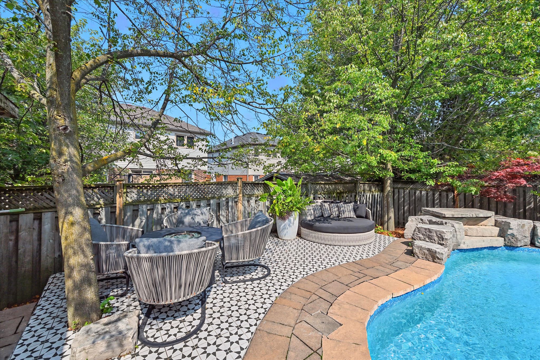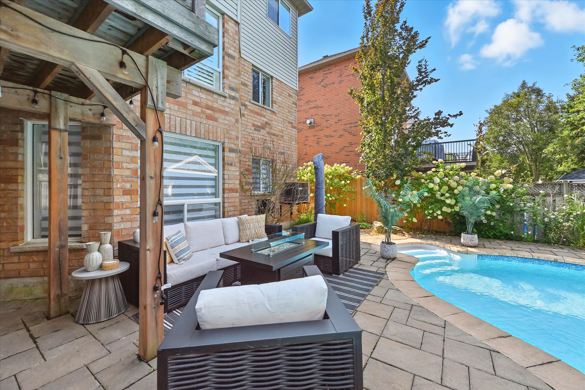 • Private fenced yard with heated saltwater pool for outdoor enjoyment.