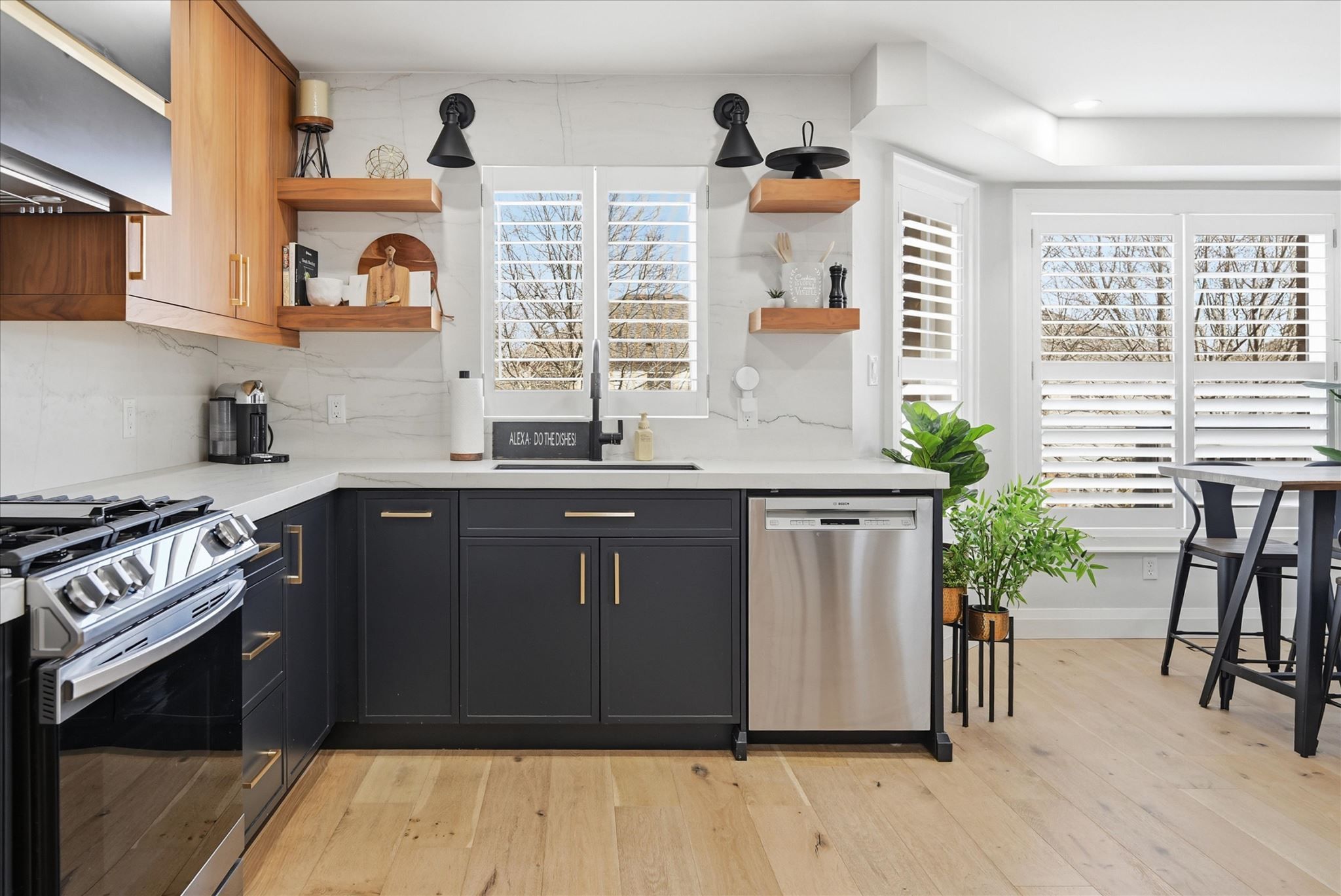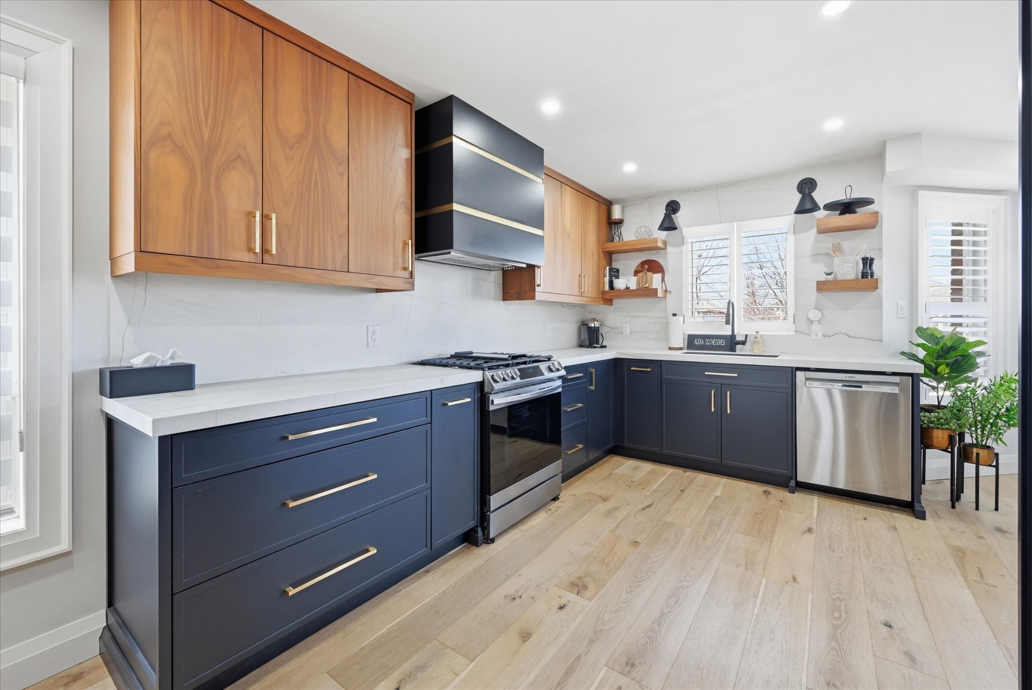 • Designer kitchen featuring modern countertops and custom cabinetry.