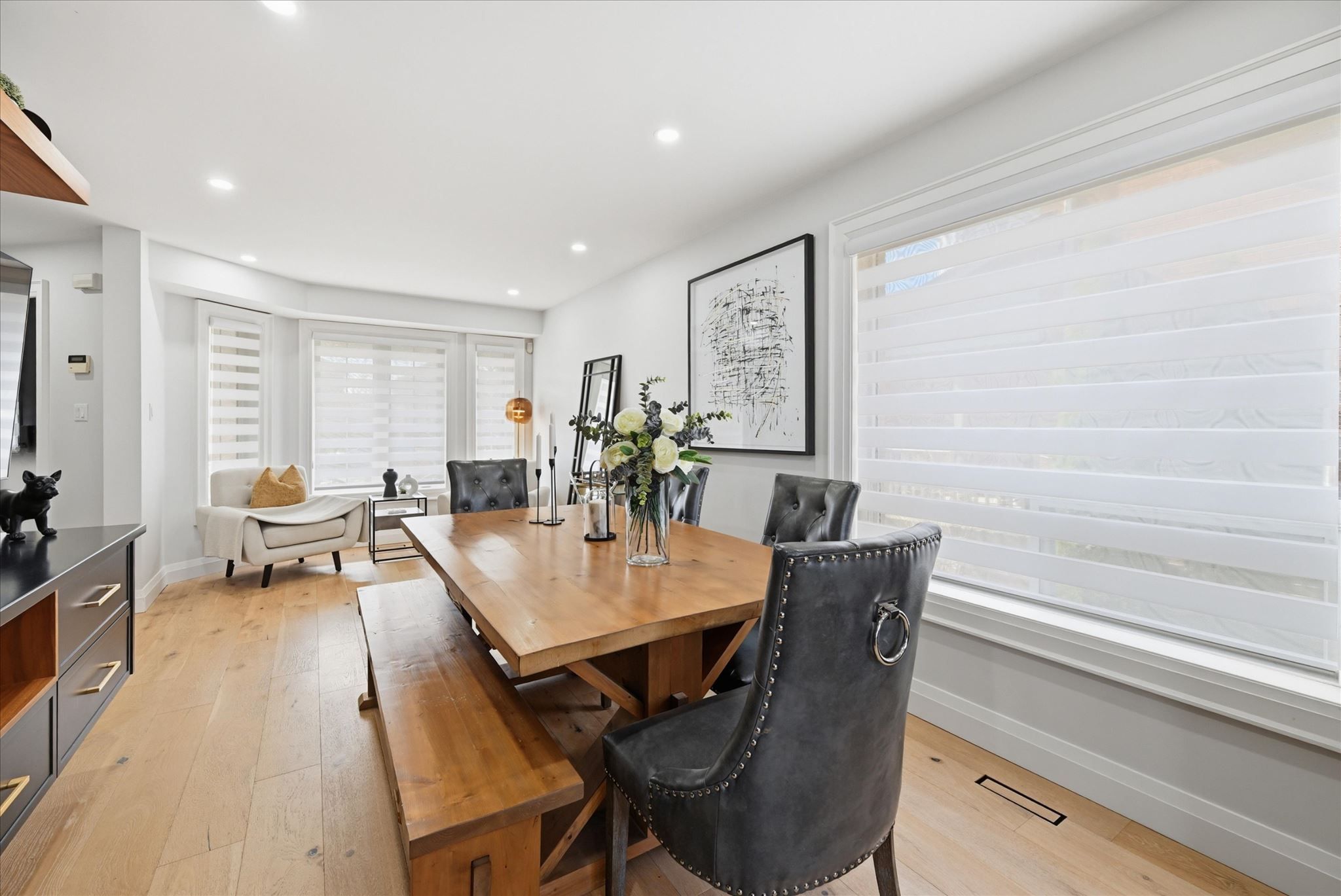 Welcome to 17 fenwick place, located in the highly desirable west waterdown neighbourhood, close to parks, shopping, transit, and major commuter routes. These gorgeous "site lines" enhance this beautifully updated home. Offering 2817 sq ft. 4+1 bedrooms and 2+2 bathrooms, combining style, comfort, and functionality throughout. Freshly painted and tastefully finished, the home features a stunning designer kitchen with neolith mont blanc countertops and backsplash, complemented by custom black and walnut cabinetry. Elegant white oak hardwood flooring flows through the main and upper levels, while the finished basement features durable pergo vinyl flooring. The home also offers modern, spa-inspired bathrooms, multiple walk-in closets, and a convenient laundry/mudroom. Additional highlights include dual shade window coverings, california shutters on the main and lower levels, and thoughtfully designed custom built-ins throughout. The bright, fully finished basement extends the living space with a cozy gas fireplace and a walkout to the backyard. Step outside to a private, fully fenced yard, an entertainer's dream featuring a heated saltwater pool and plenty of space to relax and unwind.