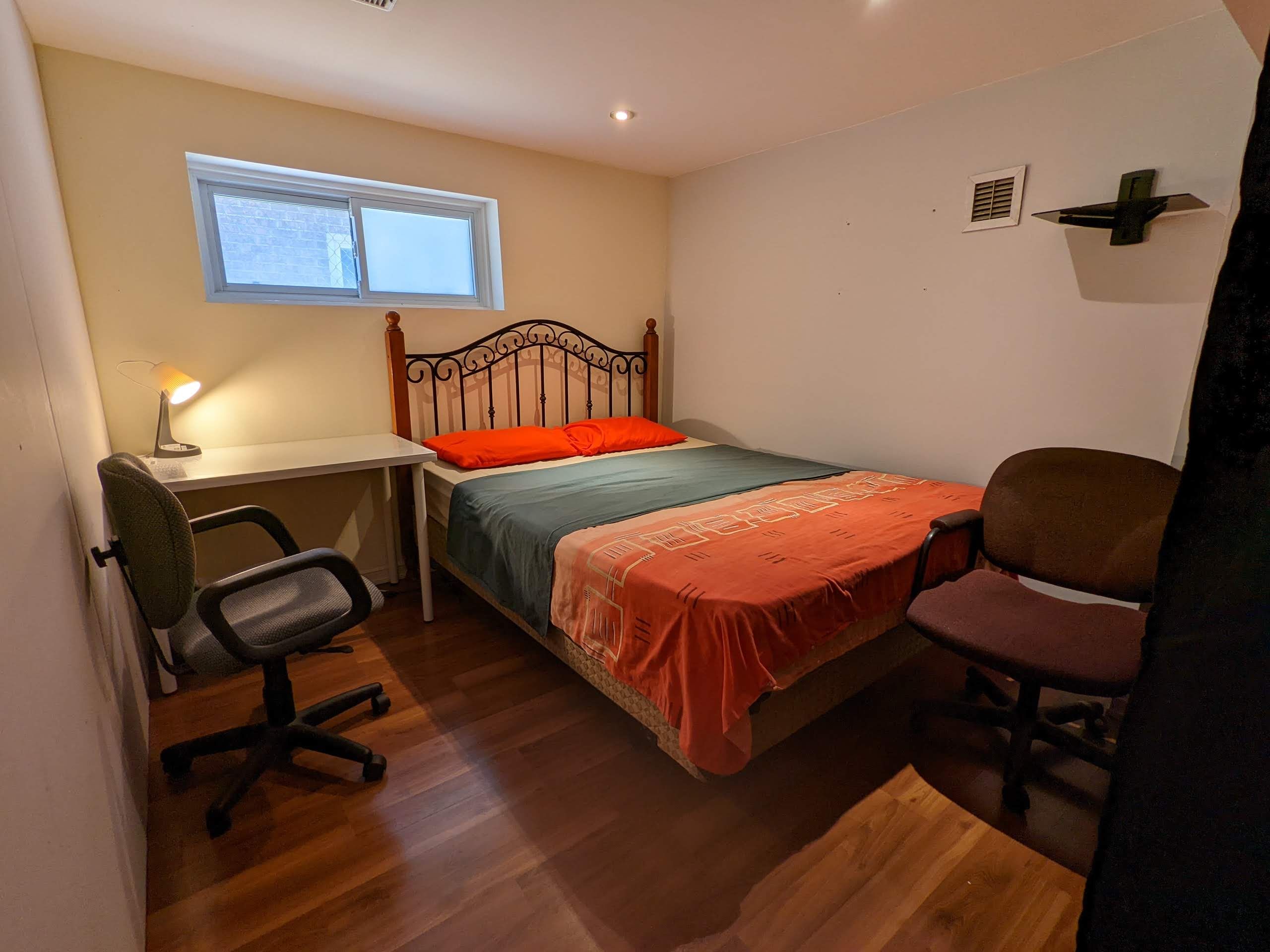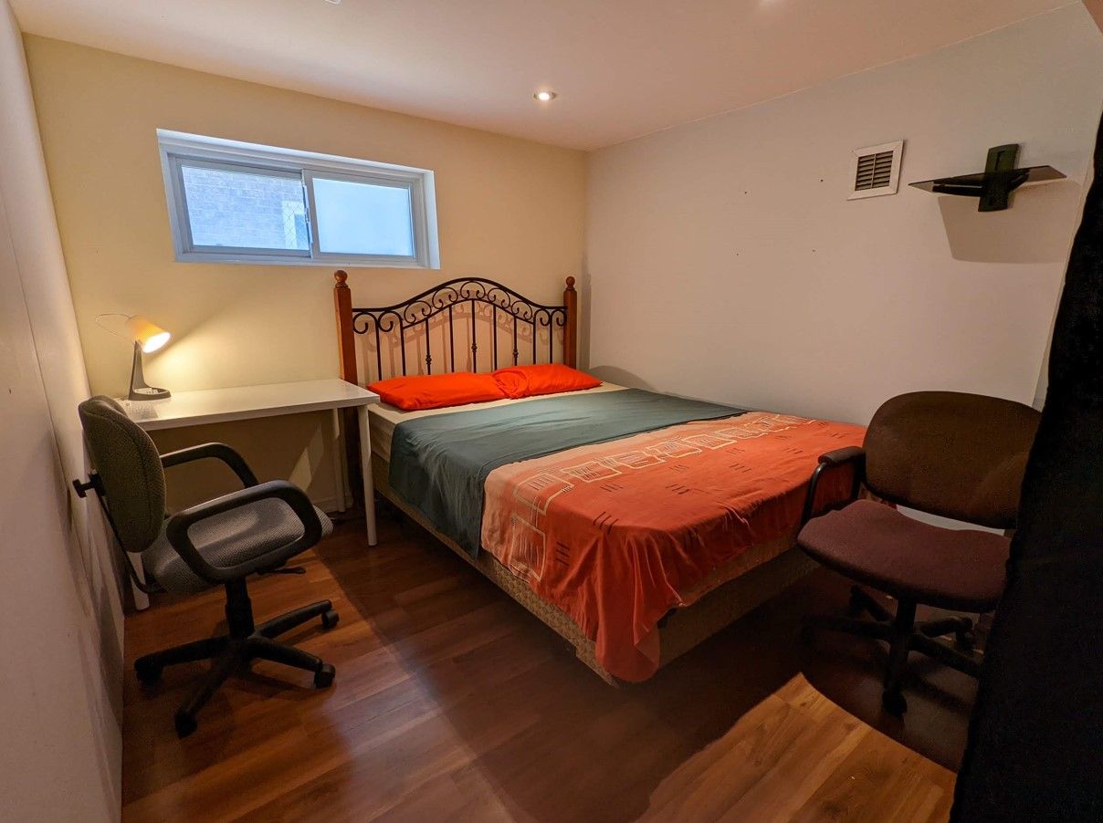 Fully furnished, 3 bedrooms in huge half basement, all windows totally above the ground, only 30 meter to the bus stop, metro square plaza with $7 a meal food court just cross the steeles ave. East in 100 meters, very quiet half basement (3 bedrooms) and one in the basement, for a group of students or working professional. Extremely high speed internet for streaming or working at home or have classes at home. Parking is negotiable.