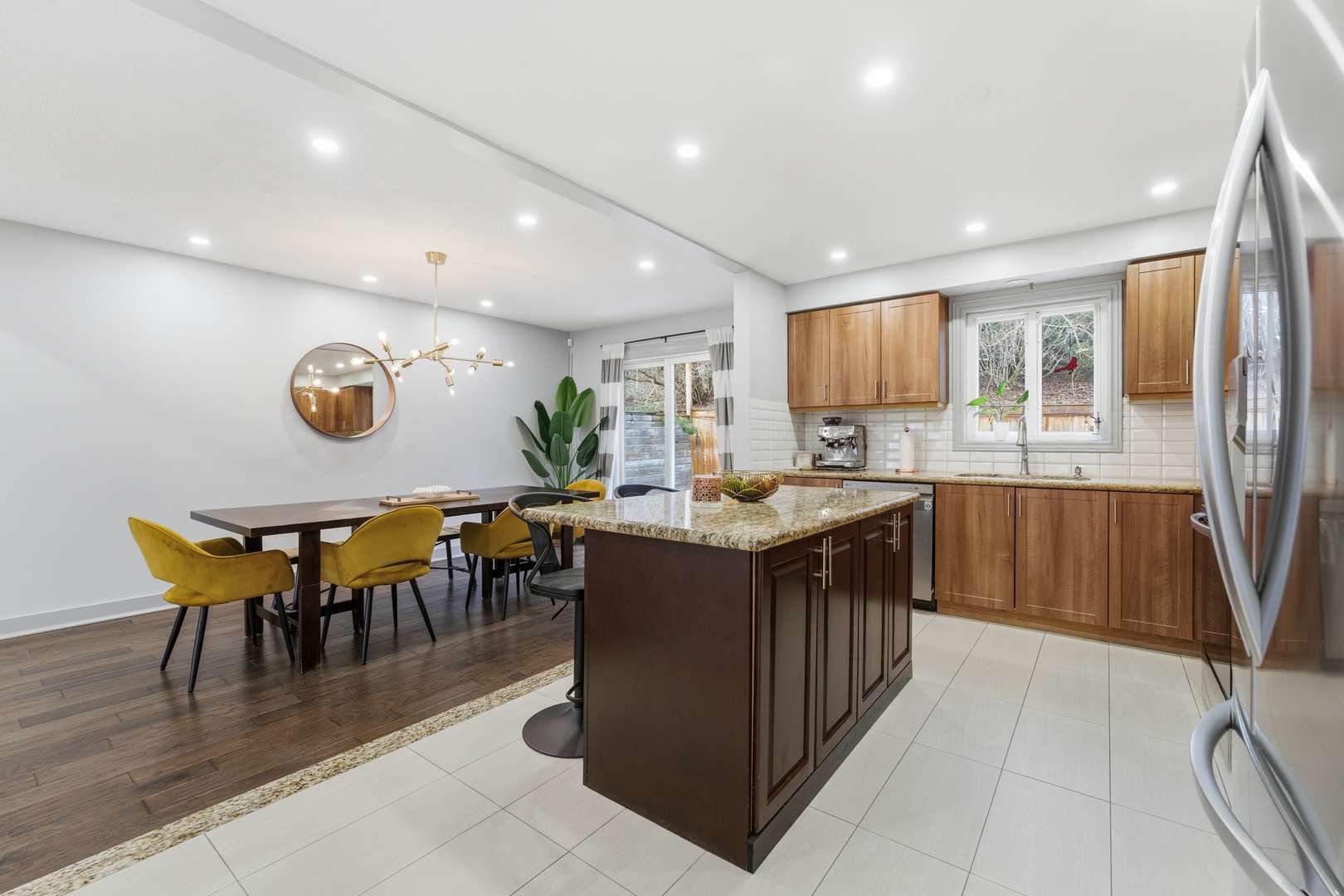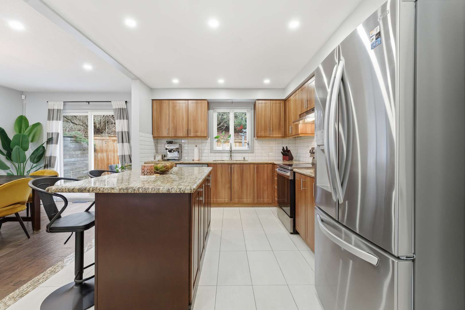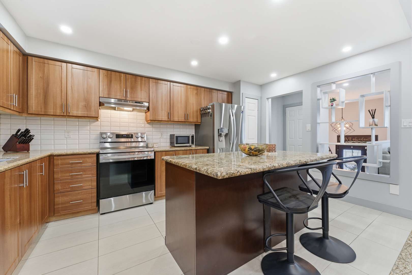 • Modern kitchen with granite island and ample storage for convenience.