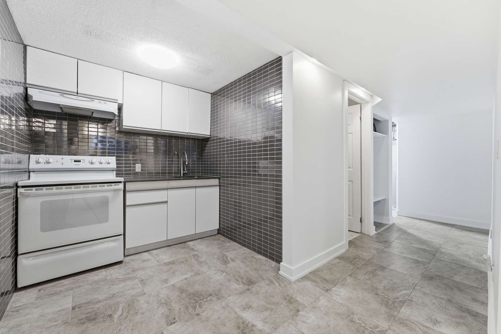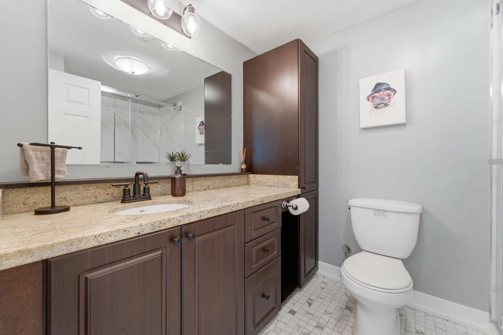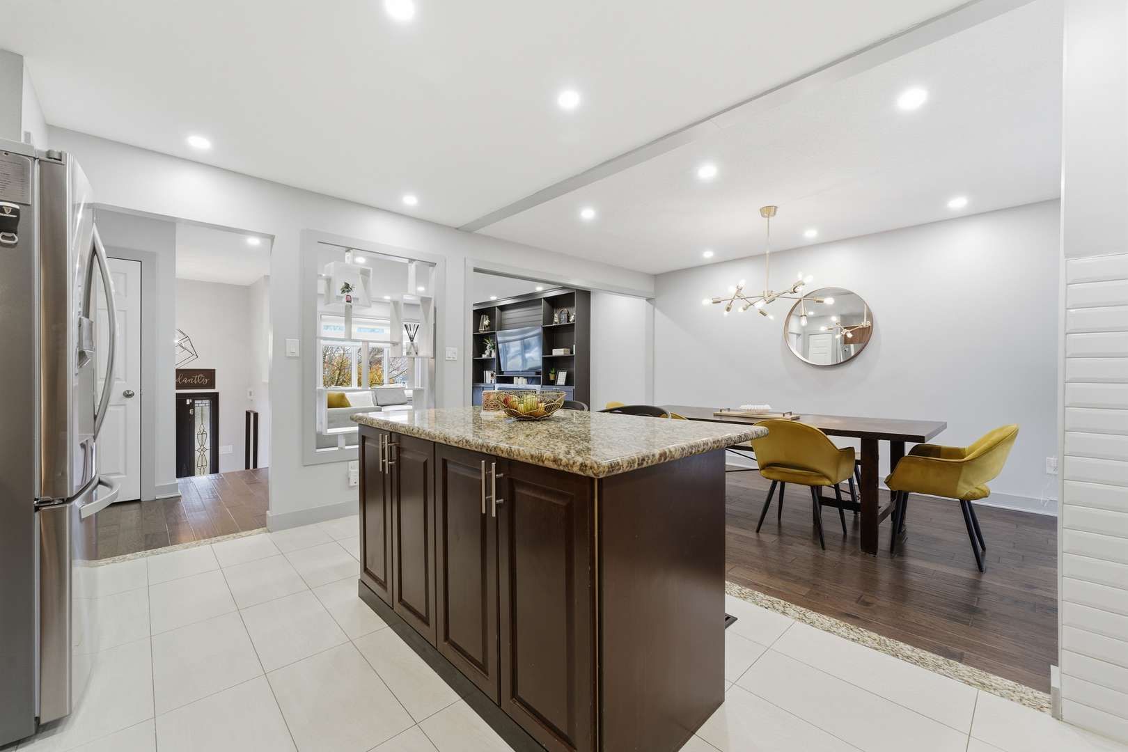 • Modern kitchen with granite island and ample storage for convenience.