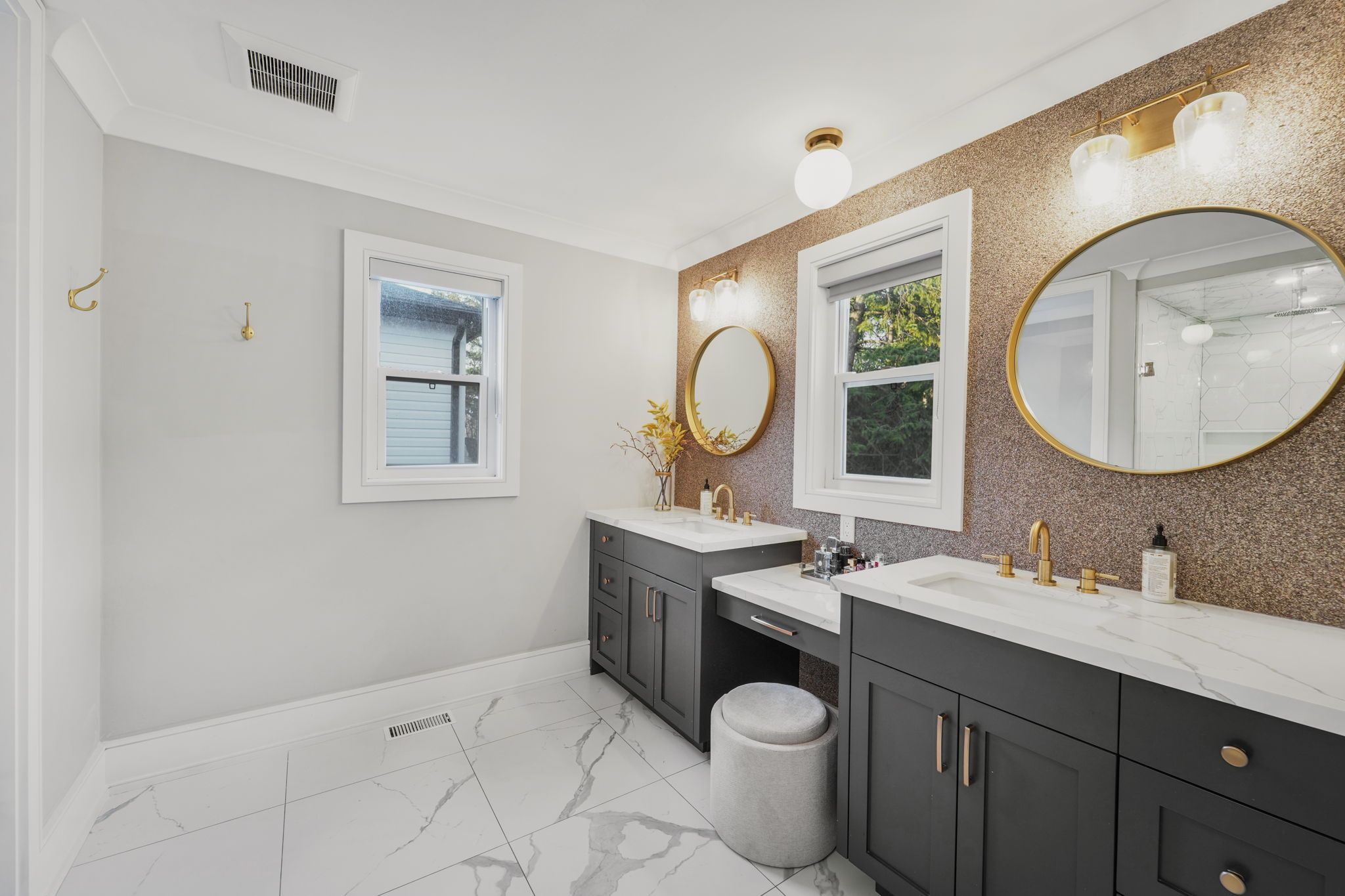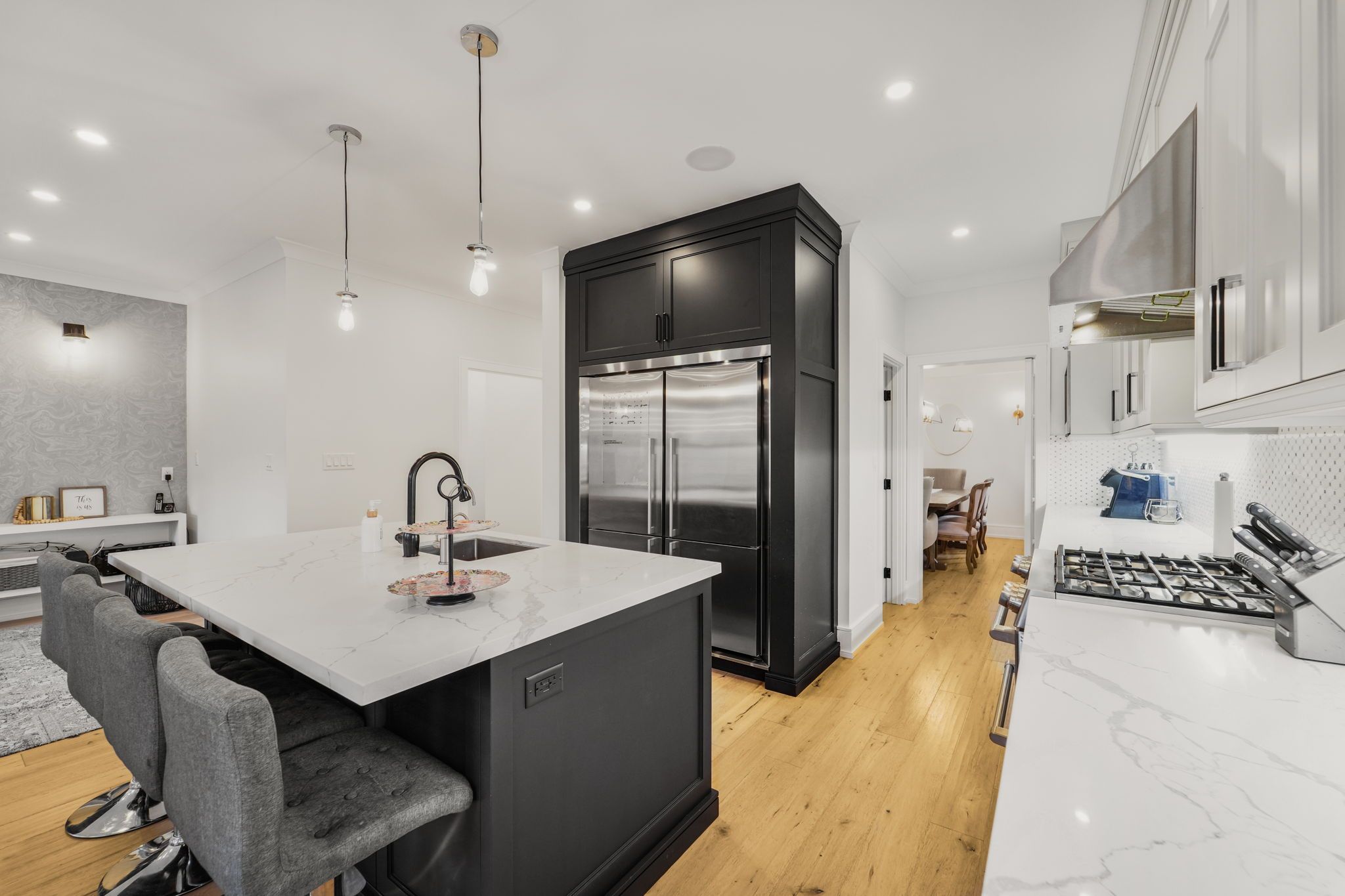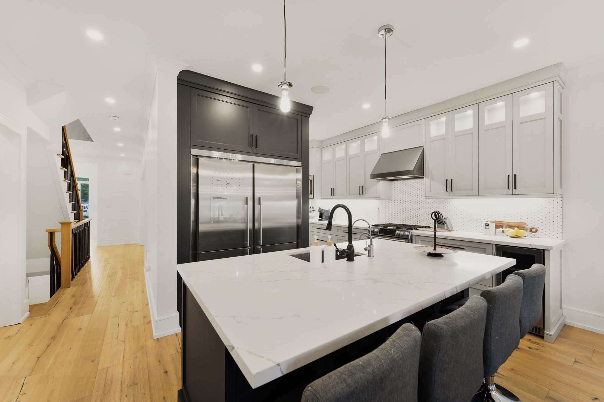 • Gorgeous kitchen with quartz counters and space for family gatherings.