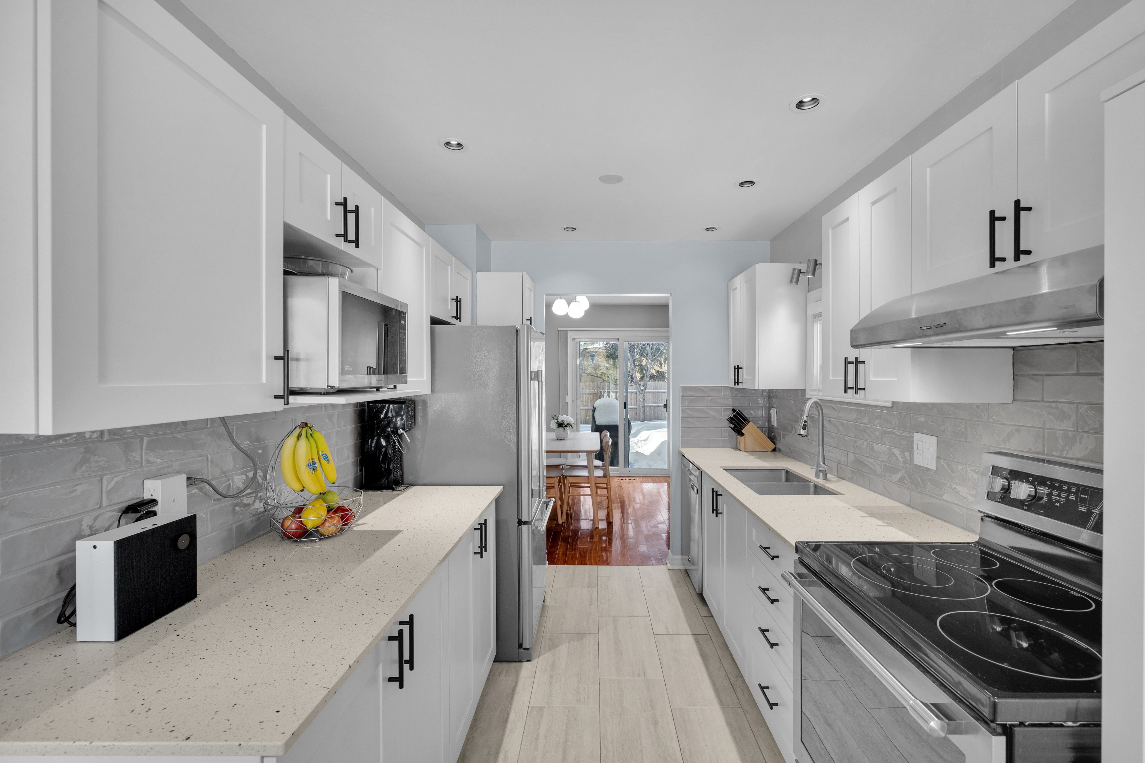 Beautifully renovated and truly move-in ready, this stylish 3-bedroom home is nestled on an oversized pie-shaped lot in the heart of popular glen cairn - offering the perfect blend of modern updates, functional space, and everyday comfort. The stunning kitchen is a standout feature, showcasing modern white cabinetry, quartz countertops, stainless steel appliances, contemporary subway tile backsplash, and a bright eat-in area framed by large windows. Entertain with ease in the formal dining room, complete with patio door access to the backyard - creating effortless indoor-outdoor flow. The spacious living room impresses with soaring vaulted ceilings and a cozy gas fireplace, adding warmth and architectural character. Convenient side-door entry, inside entry from garage and a main floor powder room add everyday practicality. Upstairs, the generous primary bedroom offers a walk-through closet and cheater access to the beautifully renovated 4-piece bathroom. Two additional well-sized bedrooms complete the level. The finished lower level expands your living space with a versatile recreation area, additional family room space, dedicated laundry, and abundant storage - ideal for movie nights, a home office, or play space. Step outside to your private, west-facing backyard retreat. This fully fenced, oversized pie-shaped lot, offers mature trees, a large deck, and exceptional outdoor space rarely found at this price point - the space you've been searching for! Ideally located just steps to schools, parks, the trans canada trail, shopping, public transit, and only minutes to the ctc and tanger outlets, this home delivers exceptional value in a family-friendly community. A turnkey opportunity with style, space, and a premium lot.