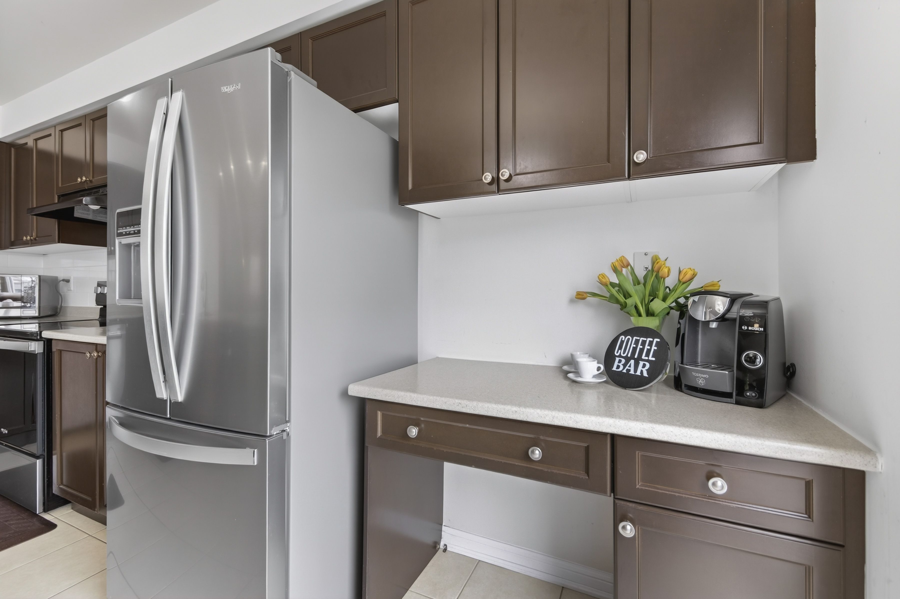 • Spacious eat-in kitchen with new stainless steel appliances and backyard access.