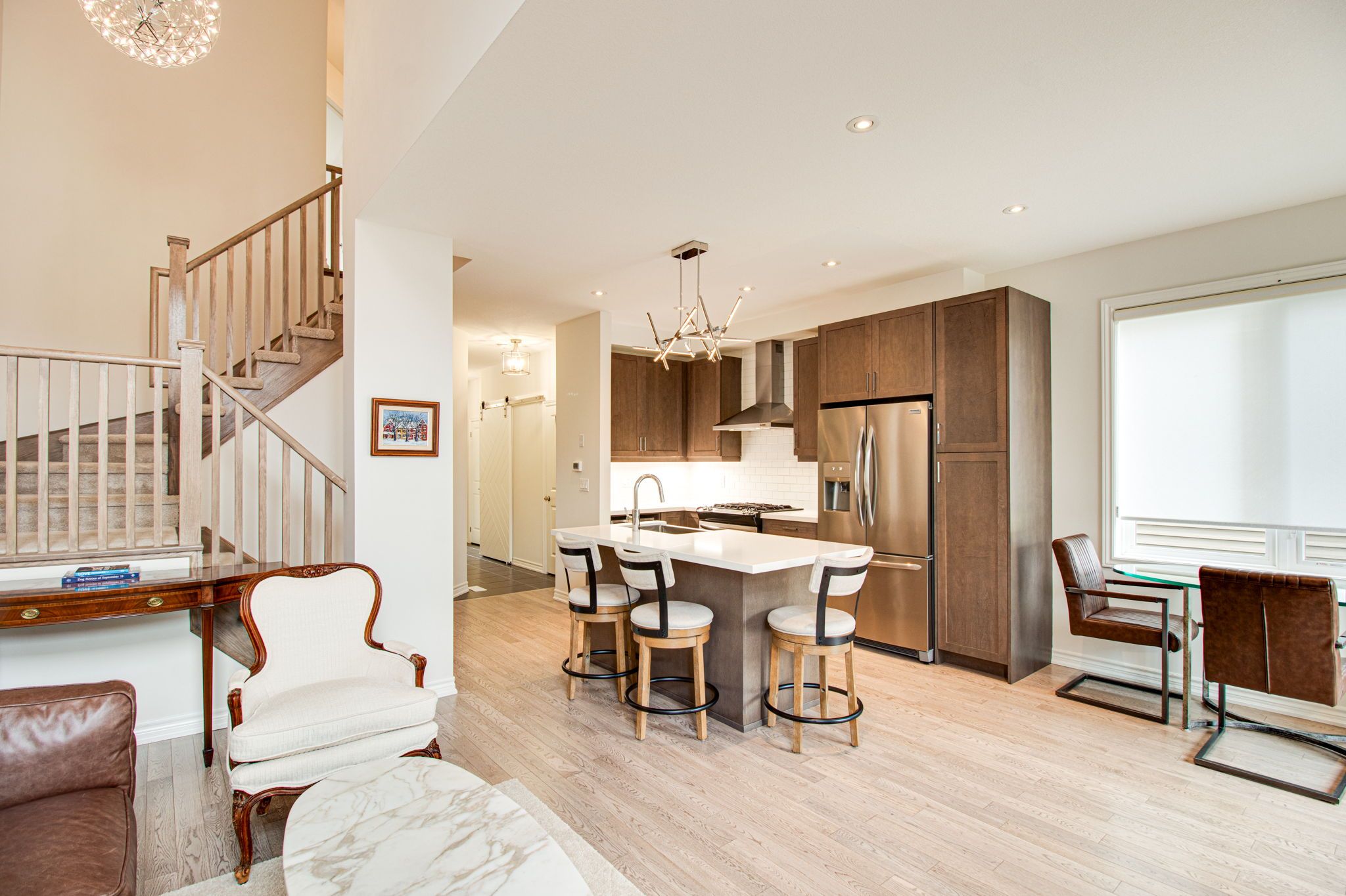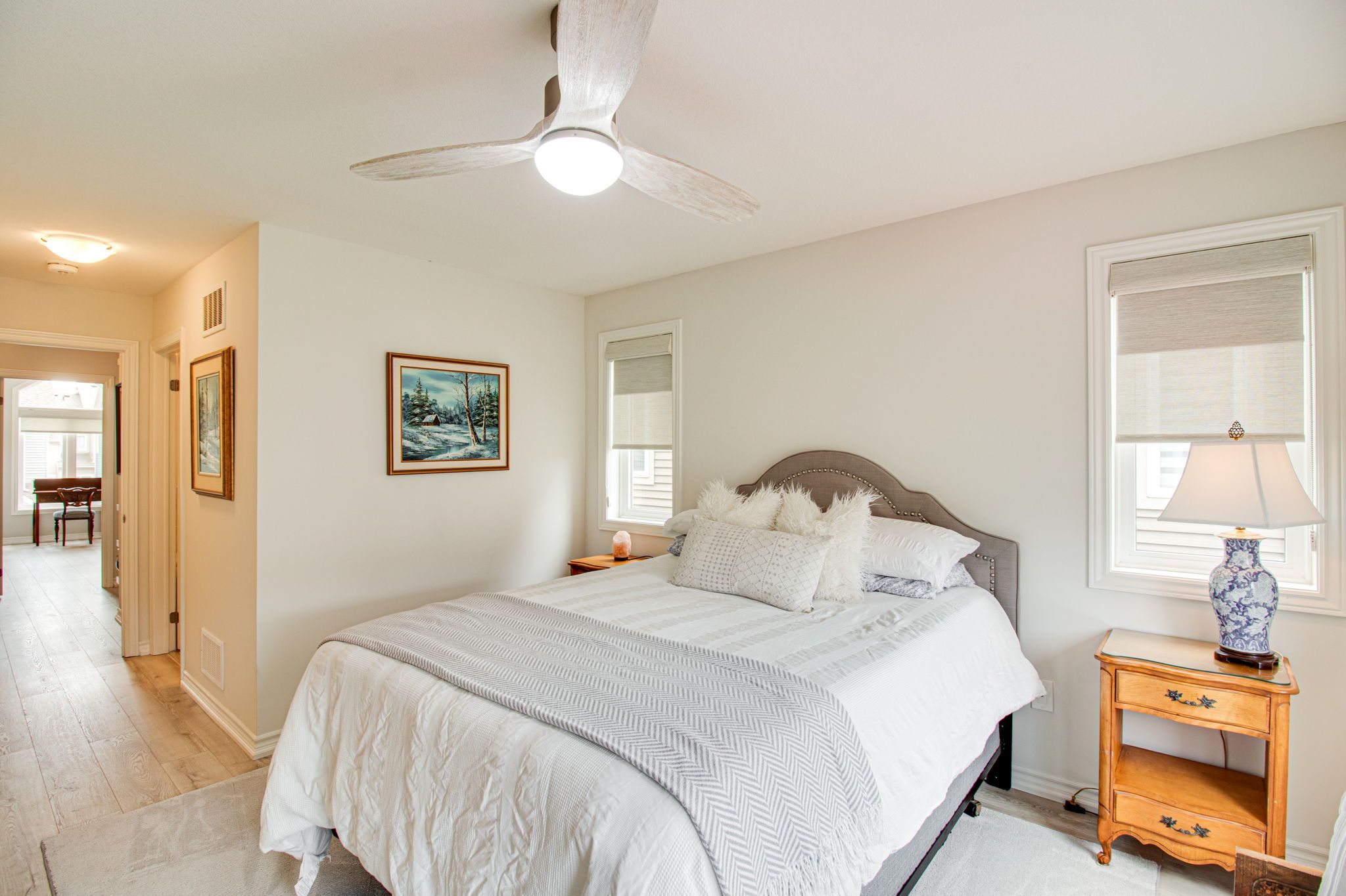 Luxury living awaits in the highly coveted blue fairway community! The pebble beach end-unit shows 10+ & boasts 6 additional windows for an abundance of natural light. This 3 bed, 4 bath home has been tastefully designed with several modern upgrades throughout. Bright & open concept main floor features a chef-inspired kitchen with custom cabinetry, pot lights, top-of-the-line s/s appliances & plenty of storage. Entertain in the spacious great room featuring cathedral ceilings & gas fireplace complete with stunning stonework - or head outside to your backyard oasis with an expansive 300+ sq ft deck equipped with built in planters, privacy louvers & natural gas bbq hook up. The upper-level features 3 generous sized bedrooms, all with custom window coverings (light filtering + blackout shades) & a beautiful spa-like primary bath. Fully finished lower level offers a large rec room, over-sized windows, 4-piece bath, & additional storage. Monthly common element fee $175. 14 includes: fitness facility, outdoor pool,& visitor parking. Unbeatable location - minutes to downtown collingwood, easy access to skiing, golf, & walking trails. Enhanced landscaping at side & rear yards (2024). This is a spectacular home not to be missed!