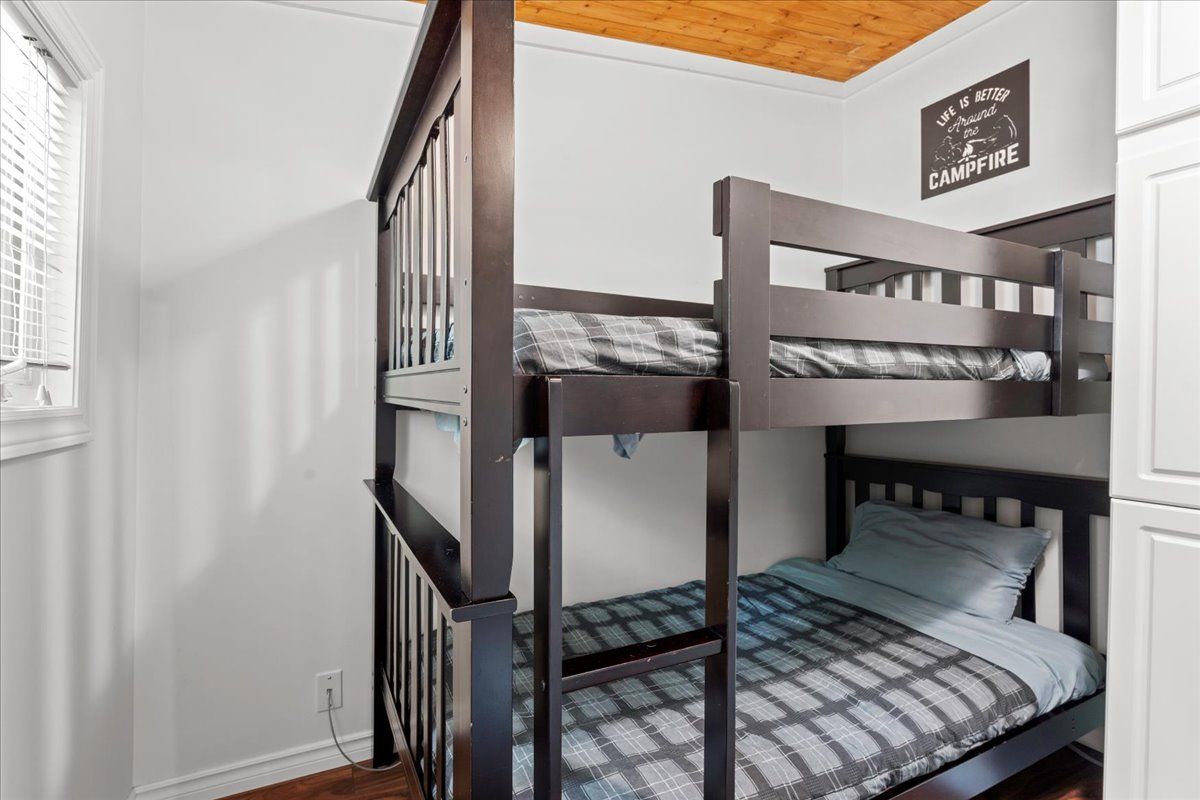Charming lakeside cottage on robinson lake, limerick. Nestled along the peaceful shores of spring fed robinson lake, this well-maintained 4 season cottage offers a warm and welcoming retreat. The main floor features a functional kitchen with ample cupboard space and patio doors leading to a screened-in sun-porch perfect for enjoying morning coffee or evening breezes. Inside, the cottage includes two comfortable bedrooms and a third bedroom with bunk beds, ideal for kids or guests. A 4-piece bathroom, along with a dining and living room featuring large windows overlooking the deck and lake, complete the cozy layout. A wood stove provides warmth on cooler nights, and tasteful neutral decor with laminate flooring adds to the inviting atmosphere. This cottage is being sold completely furnished and turnkey, allowing new owners to move in and start enjoying lake life right away. Outside, the spacious yard offers plenty of room for family gatherings, games, and evenings around the fire pit. Enjoy sunset views from the dock or take full advantage of kayaking, canoeing, fishing, and other water activities. Located on a quiet road, the property also features a large detached garage perfect for storing all your water toys and outdoor gear. With nearby access to atv and snowmobile trails, this is an ideal year-round getaway.