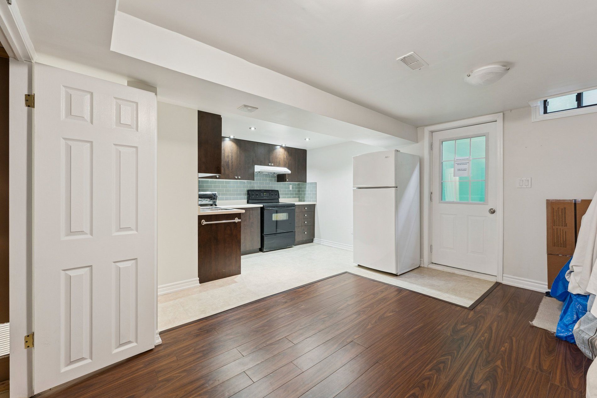 • Finished basement with separate entrance, two more bedrooms, and full kitchen.