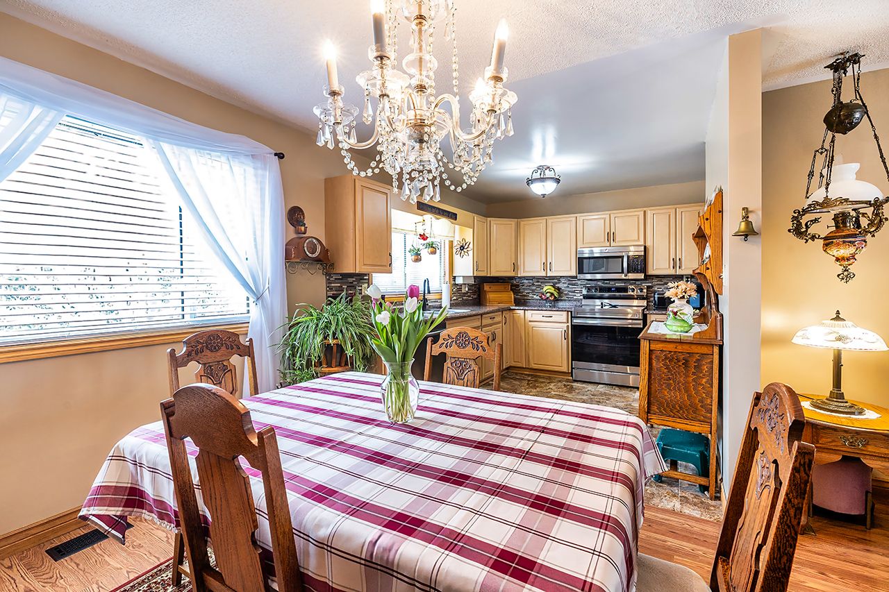 Opportunity knocks! This stunning detached 3-bedroom family home is nestled in a highly desirable neighbourhood, offering exceptional convenience with easy access to top-rated schools, shopping, parks, walking trails, highways, and entertainment. Boasting approximately 2,095 sq. Ft. Of total living space, this home is perfect for growing families and those who love to entertain. The main floor features a bright and inviting living room with elegant french doors that open onto a covered front porch, ideal for relaxing mornings or evening unwinding. The spacious formal dining room, highlighted by a crystal chandelier and a large window overlooking the backyard, creates the perfect setting for family gatherings and special occasions. The entertainer's kitchen is thoughtfully designed with stainless steel appliances, ample cabinetry with convenient drawer pullouts, a lazy susan, built-in dividers, generous counter space, and a functional pantry. Upstairs, you'll find three generously sized bedrooms, each offering double closets, large windows, and engineered hardwood flooring. A beautifully updated full bathroom completes this level. The sun-filled family room features a walkout to the rear deck, seamlessly blending indoor and outdoor living. The fully finished lower level offers above-grade windows, high ceilings, and ample storage, presenting excellent potential for multi-generational living or flexible use. This home showcases exceptional curb appeal with beautifully manicured front and rear yards, enhanced by a sprinkler system. The fully fenced backyard is a private retreat, complete with a massive deck and mature trees, perfect for outdoor entertaining. Additional highlights include a double driveway with no sidewalk and a finished, insulated true double-car garage with direct access, a side entrance, numerous 110v outlets, and a 220v outlet for a shop heater. An exceptional property offering comfort, functionality, and endless possibilities. This is a must-see!