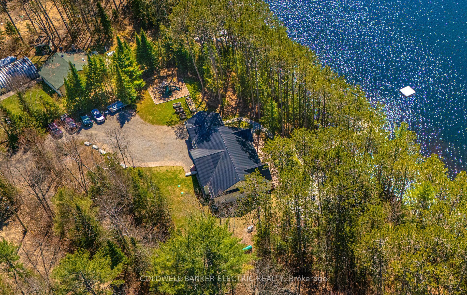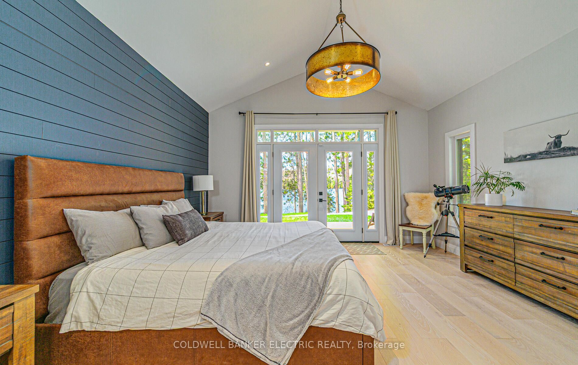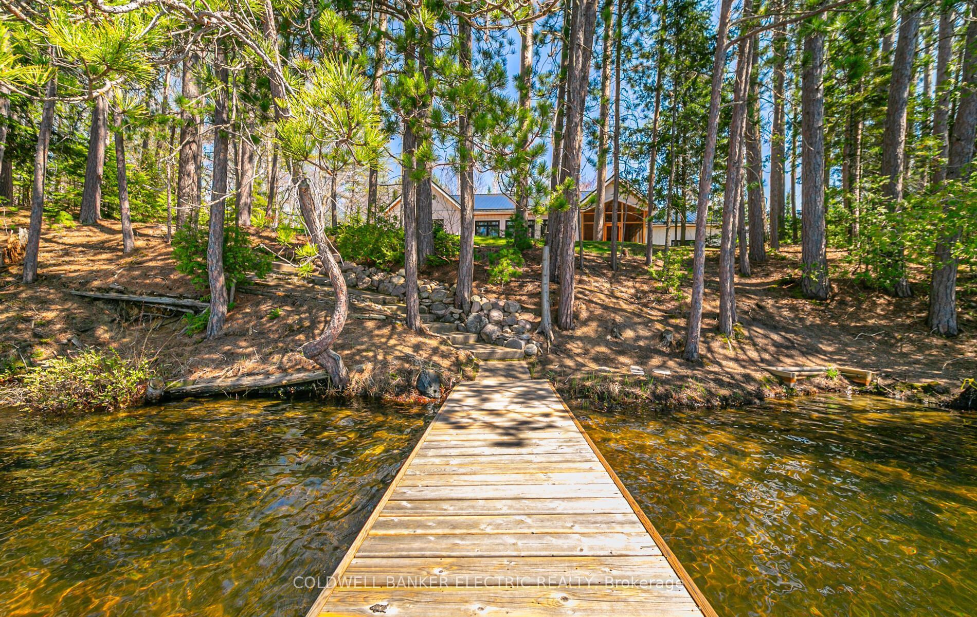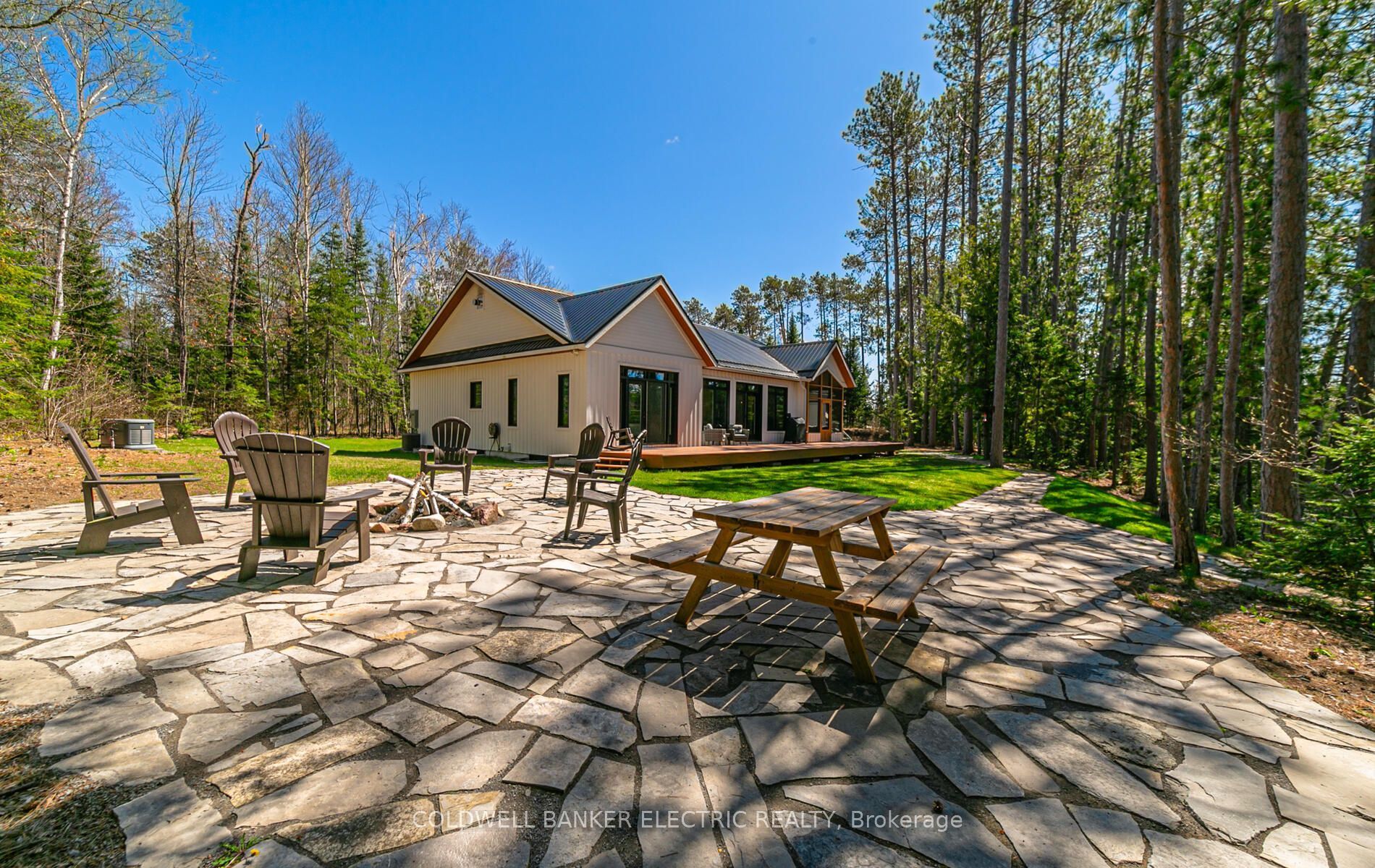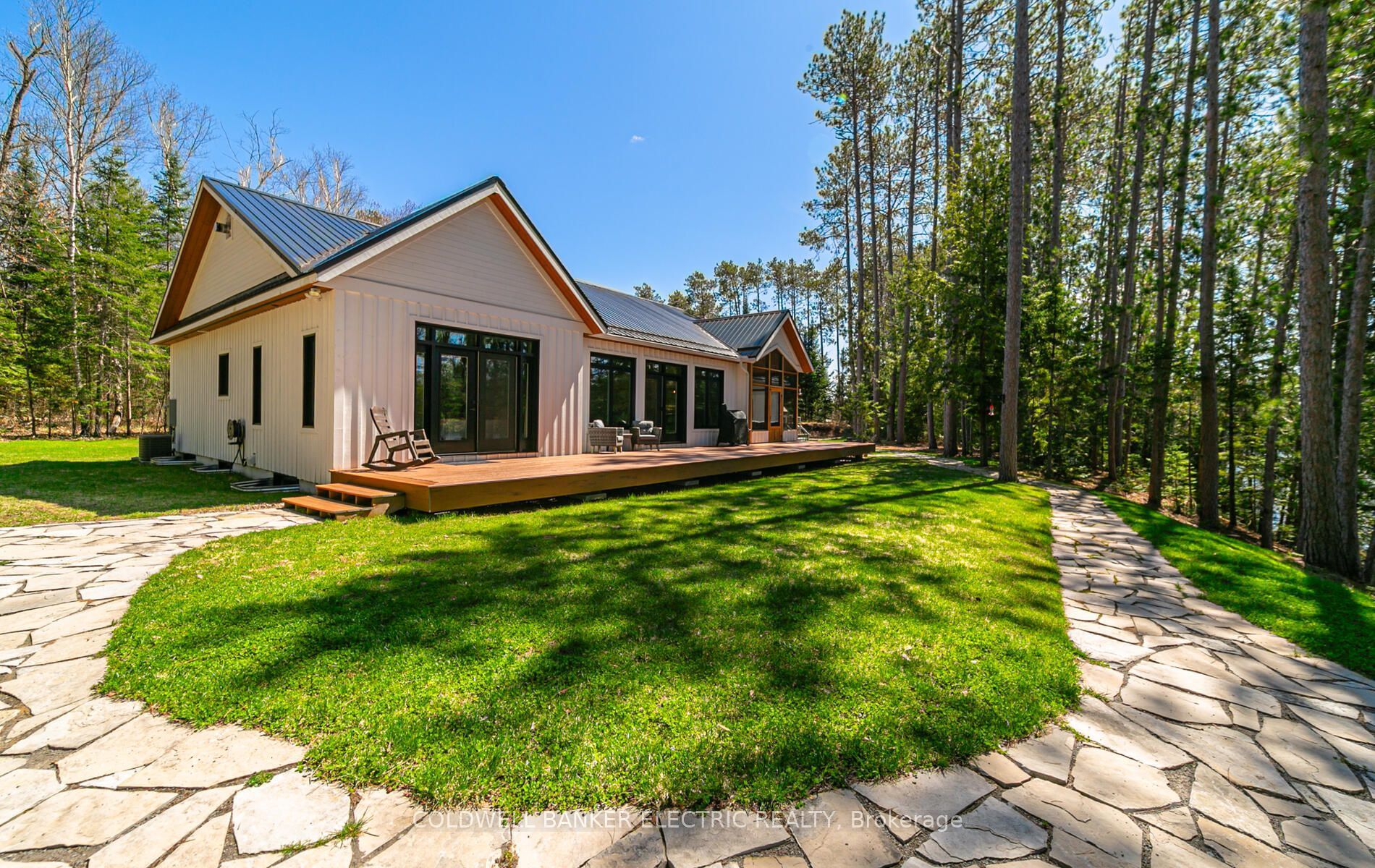 Welcome to 17 idaho lane where elegance awaits! 3800 sq ft turn-key executive-style lakefront home. Nestled on a 1. 13 acre pine grove, this meticulously planned 5 bedroom, 3-bath custom home built in 2020 strikes the perfect balance between rural living and modern amenities. This stunning home is only 60' to the natural shore of bow lake. Enjoy the evenings listening to the loons inside your vaulted musoka screen room or step outside into paradise. Escape the hustle of city life meandering down to the 290 feet of privately owned west-facing waterfront to take in a captivating sunset! This property offers outdoor living at its finest with raised garden beds, mature asparagus patch, children's playground and sandbox. The home includes three main-floor bedrooms and two bathrooms. The large primary suite showcases a vaulted ceiling that leads out to the expansive composite deck and is complimented by its own 3 piece ensuite bathroom with heated tile and quartz double vanity. The fully finished basement is equipped with heated floors throughout, including two bedrooms - perfect for an in-home office or guest-suite-plus 4 piece bath, large rec room and oversized laundry room. The kitchen and main floor baths boast tile floor and quartz countertops; ash engineered hardwood throughout the main floor and basement; a propane fireplace in the living room and large windows facing the water. Enter through the main foyer to access the oversized mudroom that leads to the heated garage, with an additional detached garage-shed for boat and atv storage. Access to high-speed internet is ideal for remote working, with the added convenience of being close to safe schools, a hospital, restaurants, shopping, community centre, and more. The heritage trail is only mins from your door as well as easy access to silent lake and algonquin prov. Park. The 5 bedroom option is ideal for airbnb rental income potential with ample space to host numerous guests for a cottage retreat.