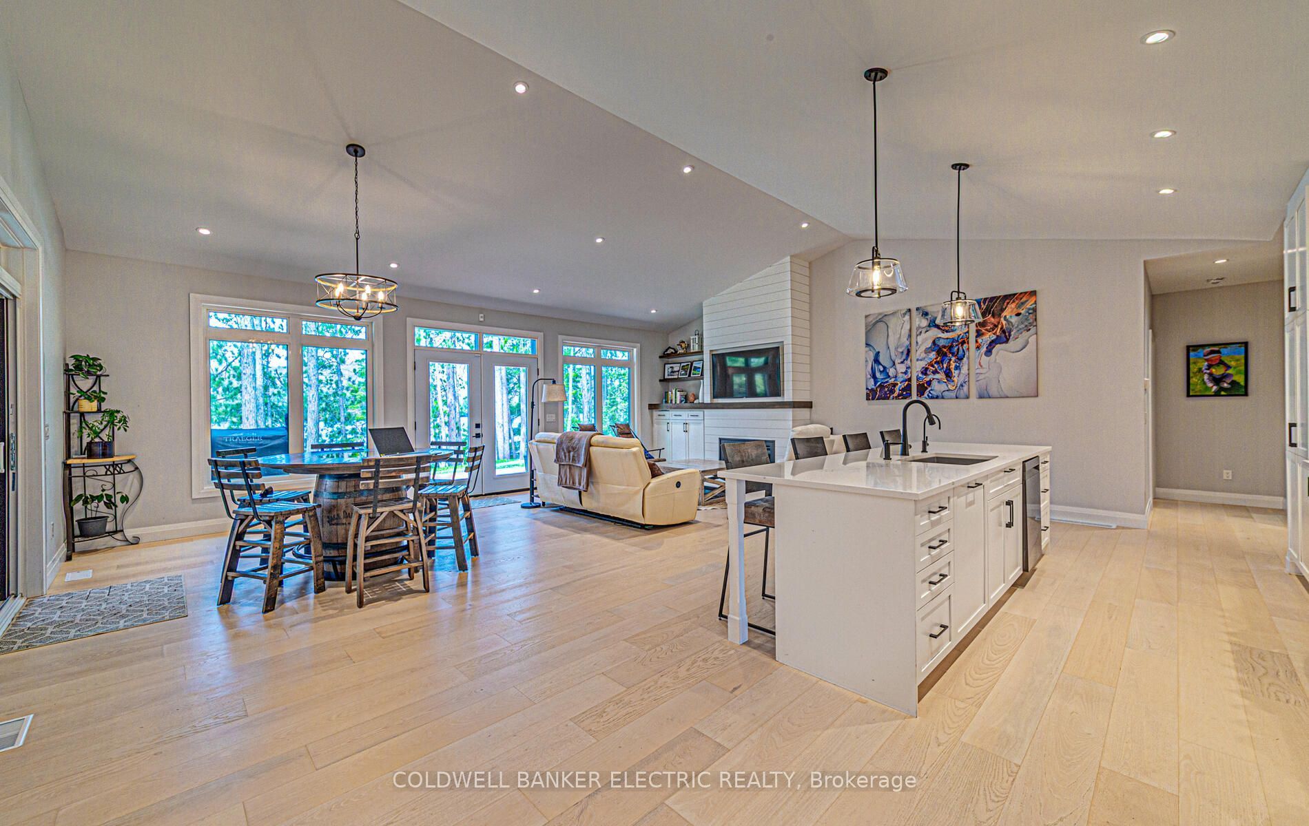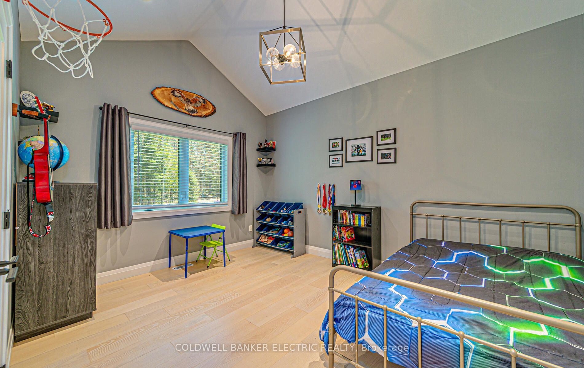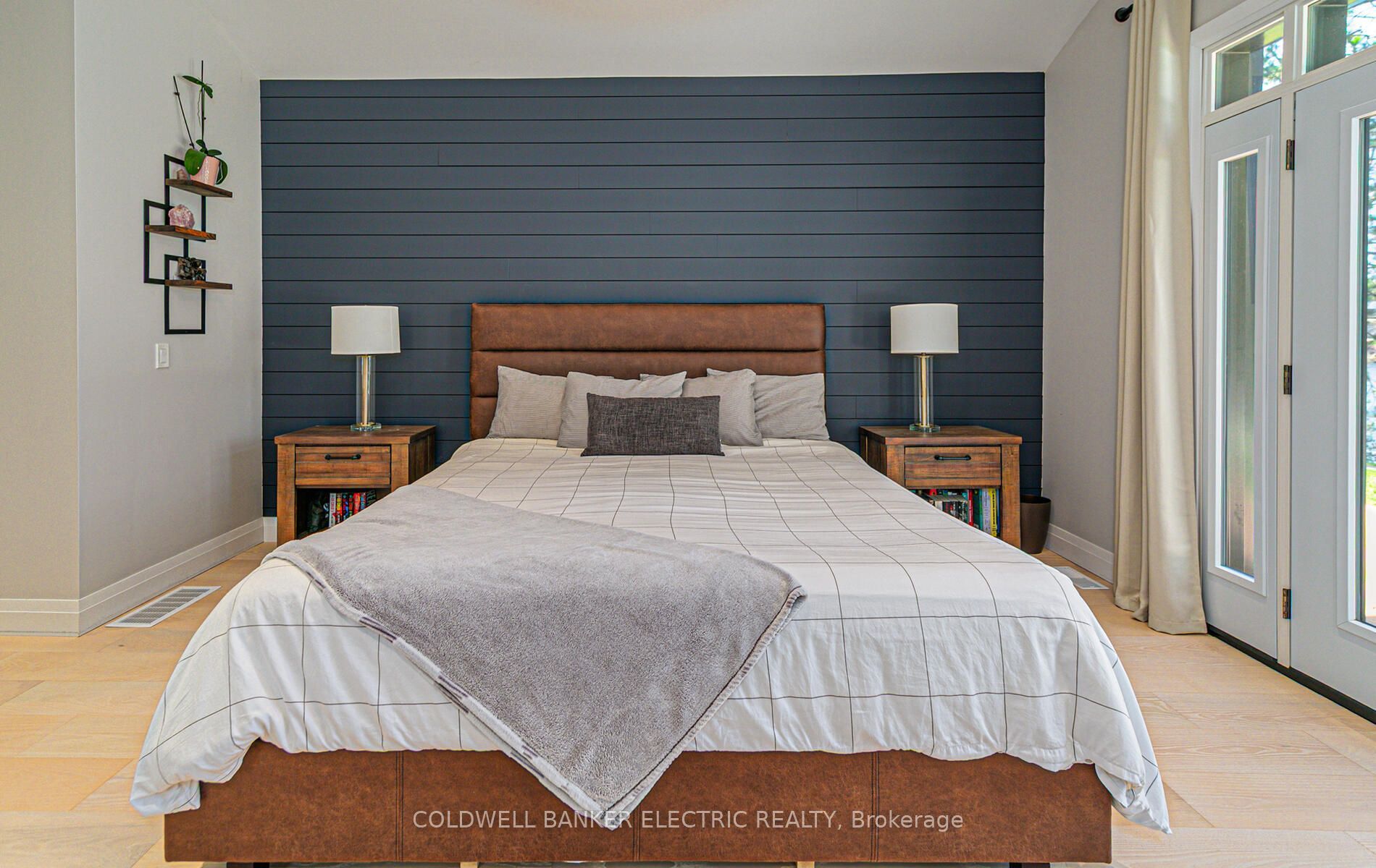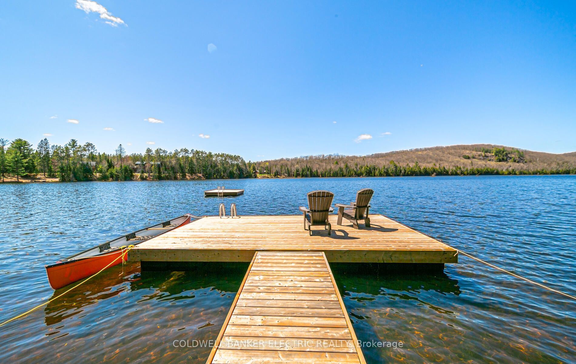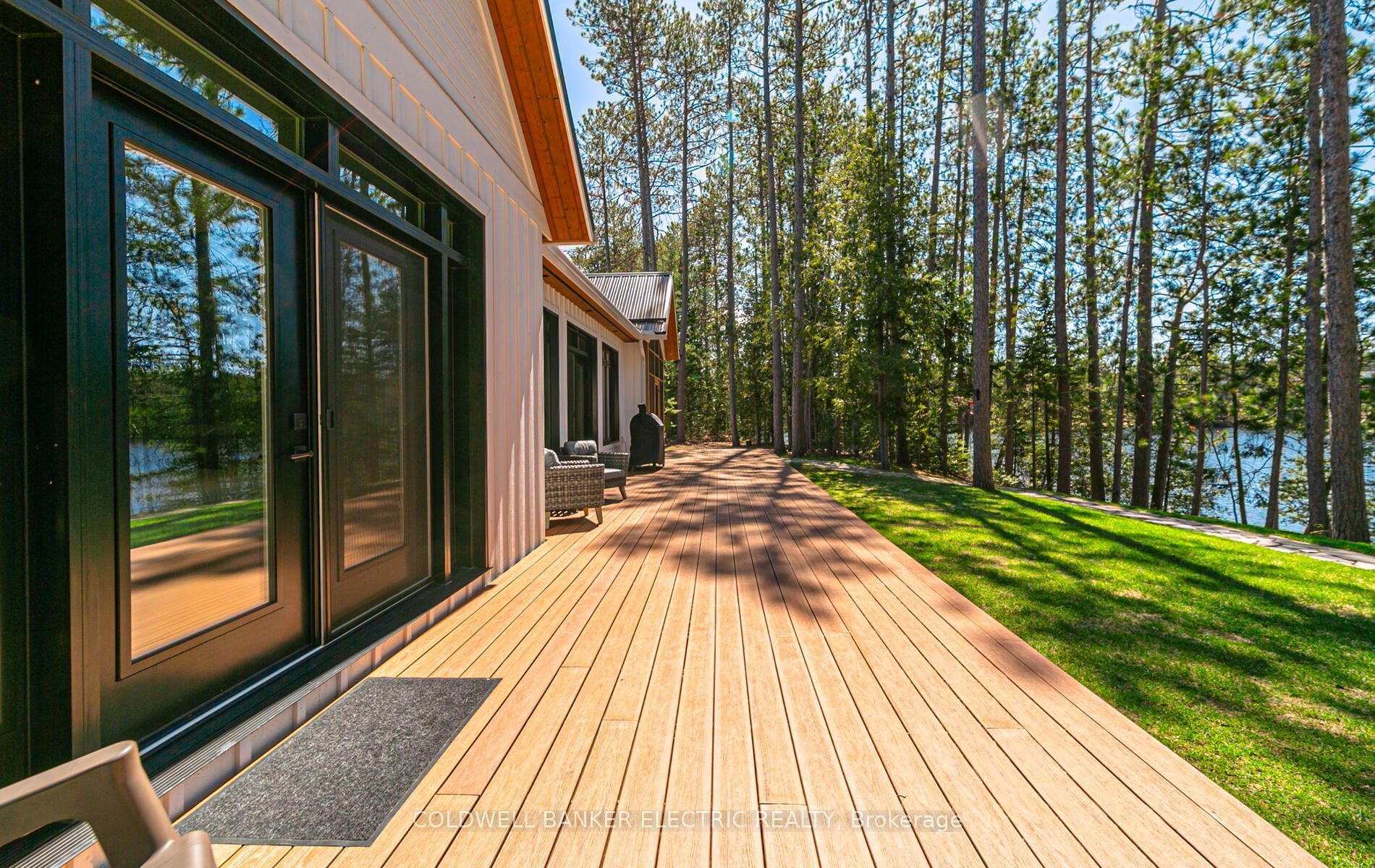 Welcome to 17 idaho lane where elegance awaits! 3800 sq ft turn-key executive-style lakefront home. Nestled on a 1. 13 acre pine grove, this meticulously planned 5 bedroom, 3-bath custom home built in 2020 strikes the perfect balance between rural living and modern amenities. This stunning home is only 60' to the natural shore of bow lake. Enjoy the evenings listening to the loons inside your vaulted musoka screen room or step outside into paradise. Escape the hustle of city life meandering down to the 290 feet of privately owned west-facing waterfront to take in a captivating sunset! This property offers outdoor living at its finest with raised garden beds, mature asparagus patch, children's playground and sandbox. The home includes three main-floor bedrooms and two bathrooms. The large primary suite showcases a vaulted ceiling that leads out to the expansive composite deck and is complimented by its own 3 piece ensuite bathroom with heated tile and quartz double vanity. The fully finished basement is equipped with heated floors throughout, including two bedrooms - perfect for an in-home office or guest-suite-plus 4 piece bath, large rec room and oversized laundry room. The kitchen and main floor baths boast tile floor and quartz countertops; ash engineered hardwood throughout the main floor and basement; a propane fireplace in the living room and large windows facing the water. Enter through the main foyer to access the oversized mudroom that leads to the heated garage, with an additional detached garage-shed for boat and atv storage. Access to high-speed internet is ideal for remote working, with the added convenience of being close to safe schools, a hospital, restaurants, shopping, community centre, and more. The heritage trail is only mins from your door as well as easy access to silent lake and algonquin prov. Park. The 5 bedroom option is ideal for airbnb rental income potential with ample space to host numerous guests for a cottage retreat.