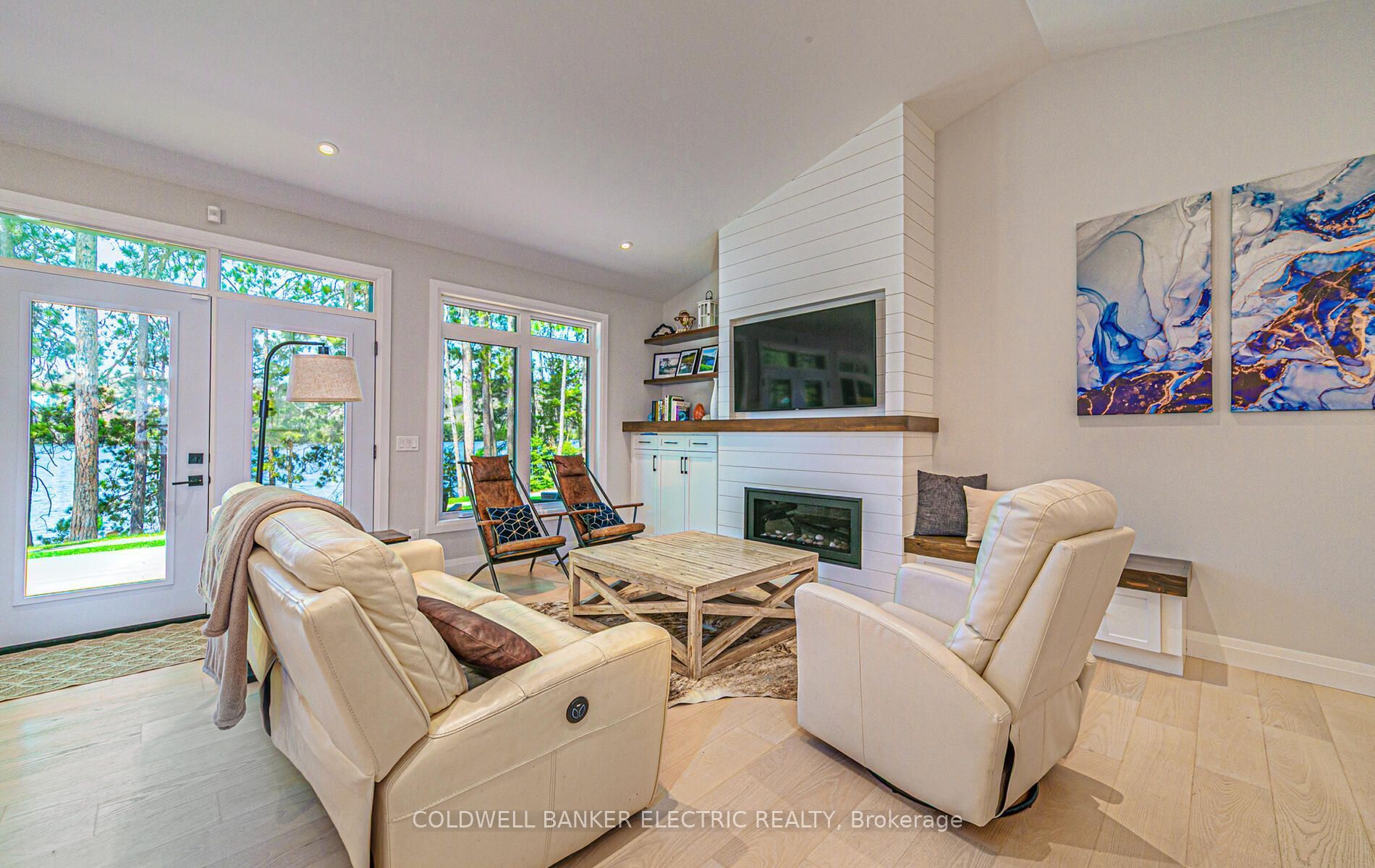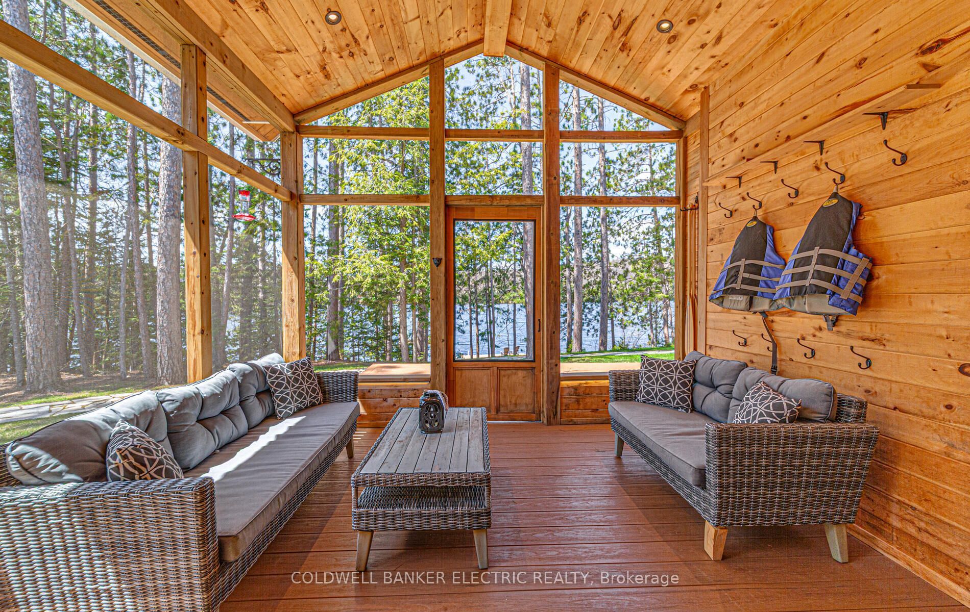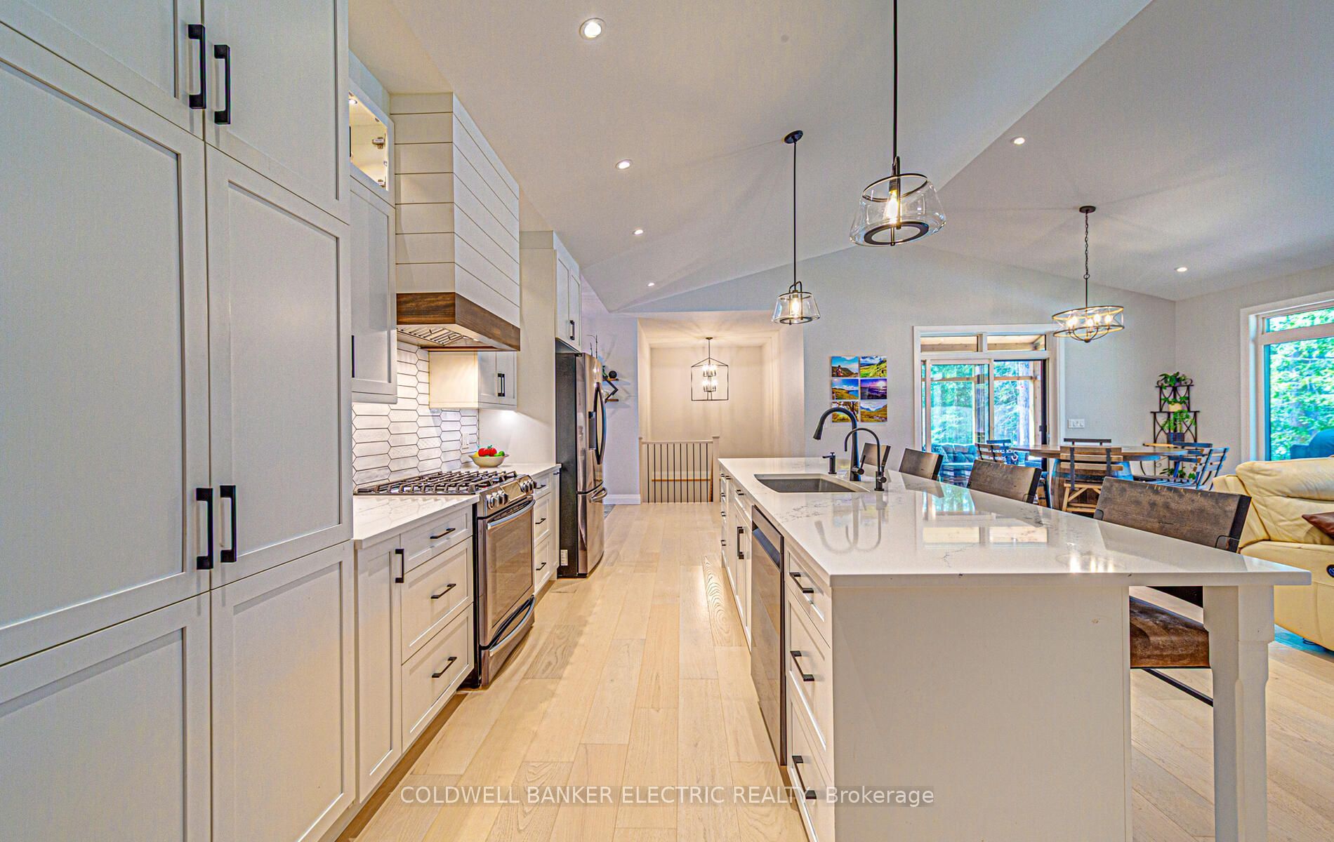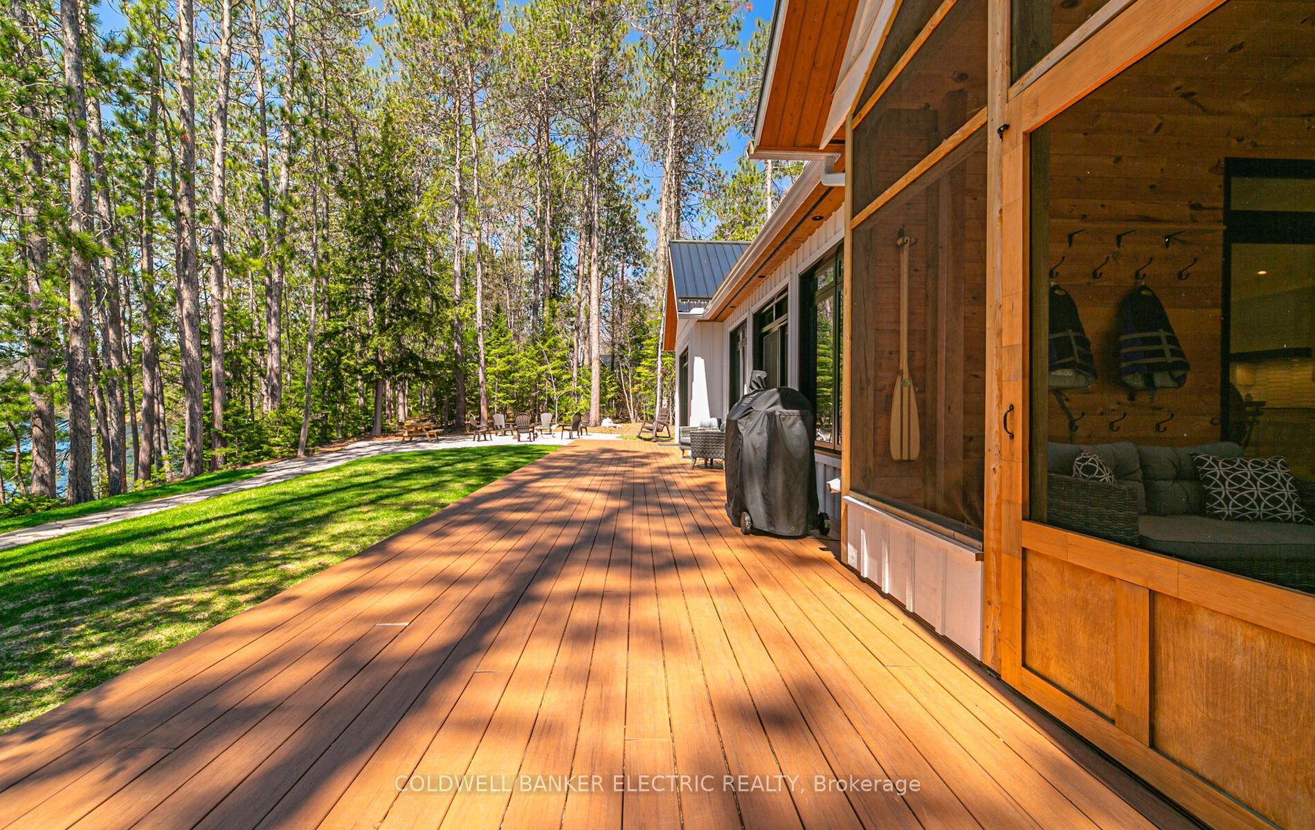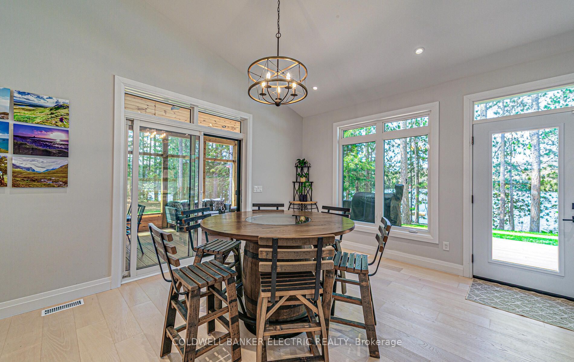Welcome to 17 idaho lane where elegance awaits! 3800 sq ft turn-key executive-style lakefront home. Nestled on a 1. 13 acre pine grove, this meticulously planned 5 bedroom, 3-bath custom home built in 2020 strikes the perfect balance between rural living and modern amenities. This stunning home is only 60' to the natural shore of bow lake. Enjoy the evenings listening to the loons inside your vaulted musoka screen room or step outside into paradise. Escape the hustle of city life meandering down to the 290 feet of privately owned west-facing waterfront to take in a captivating sunset! This property offers outdoor living at its finest with raised garden beds, mature asparagus patch, children's playground and sandbox. The home includes three main-floor bedrooms and two bathrooms. The large primary suite showcases a vaulted ceiling that leads out to the expansive composite deck and is complimented by its own 3 piece ensuite bathroom with heated tile and quartz double vanity. The fully finished basement is equipped with heated floors throughout, including two bedrooms - perfect for an in-home office or guest-suite-plus 4 piece bath, large rec room and oversized laundry room. The kitchen and main floor baths boast tile floor and quartz countertops; ash engineered hardwood throughout the main floor and basement; a propane fireplace in the living room and large windows facing the water. Enter through the main foyer to access the oversized mudroom that leads to the heated garage, with an additional detached garage-shed for boat and atv storage. Access to high-speed internet is ideal for remote working, with the added convenience of being close to safe schools, a hospital, restaurants, shopping, community centre, and more. The heritage trail is only mins from your door as well as easy access to silent lake and algonquin prov. Park. The 5 bedroom option is ideal for airbnb rental income potential with ample space to host numerous guests for a cottage retreat.