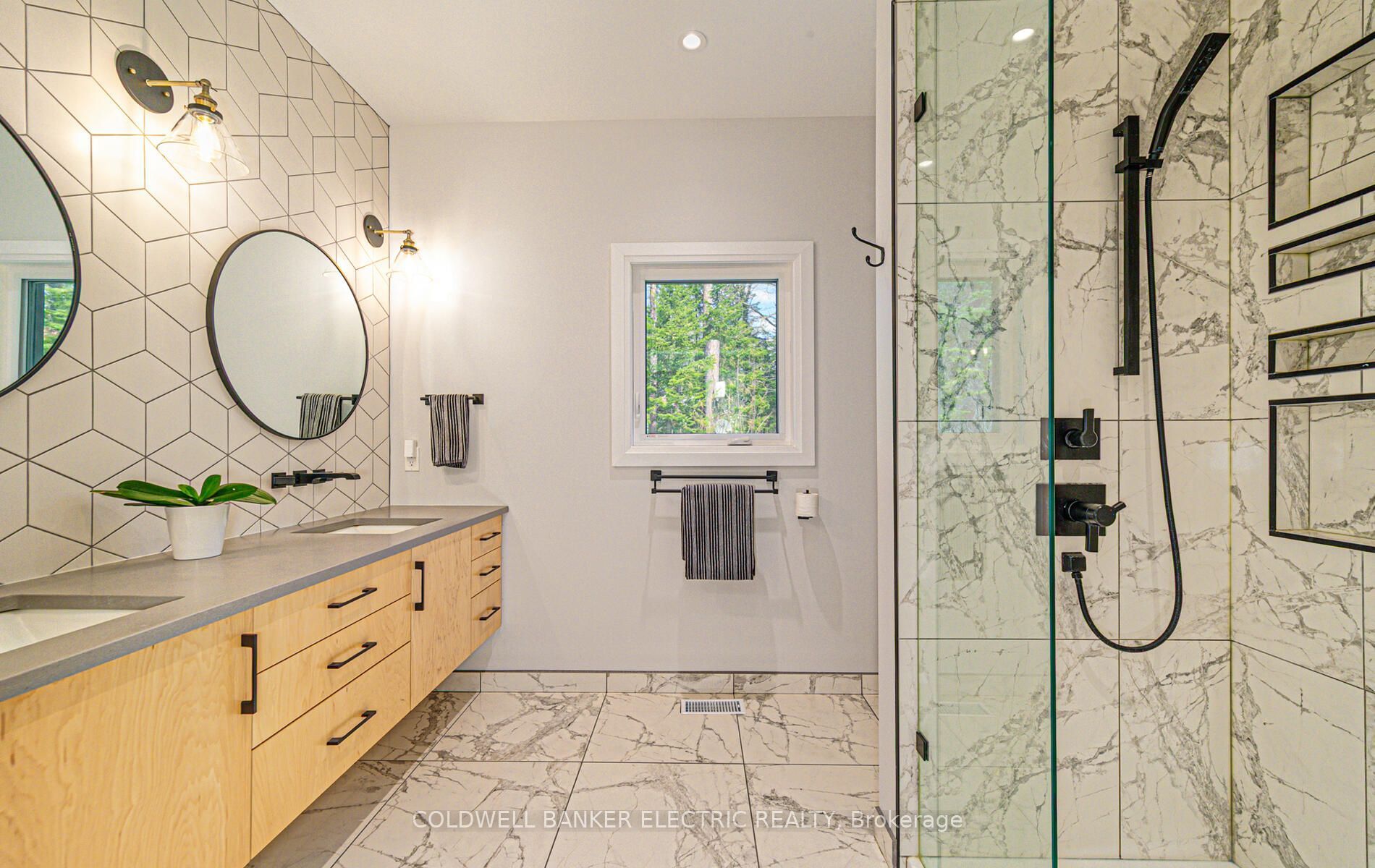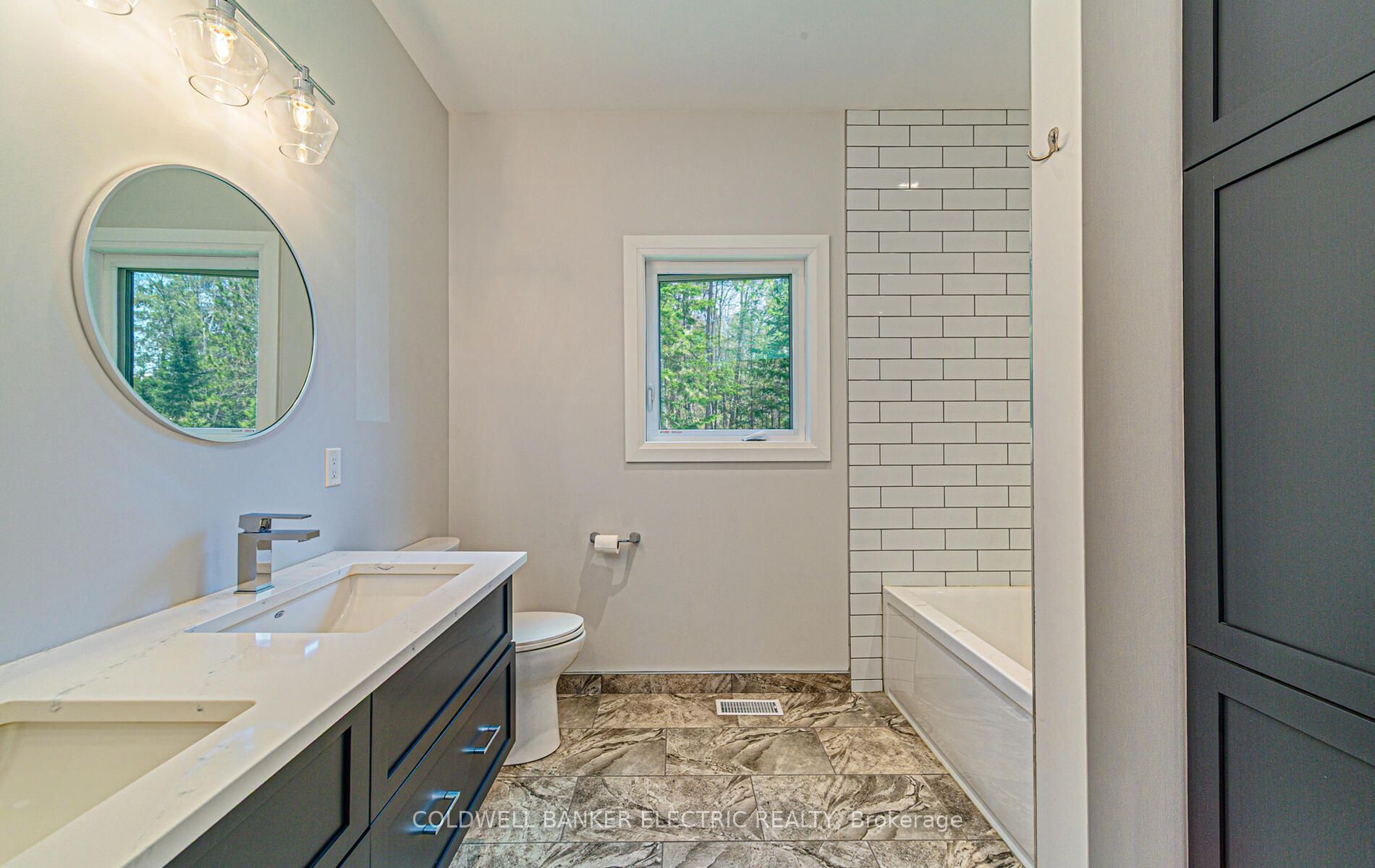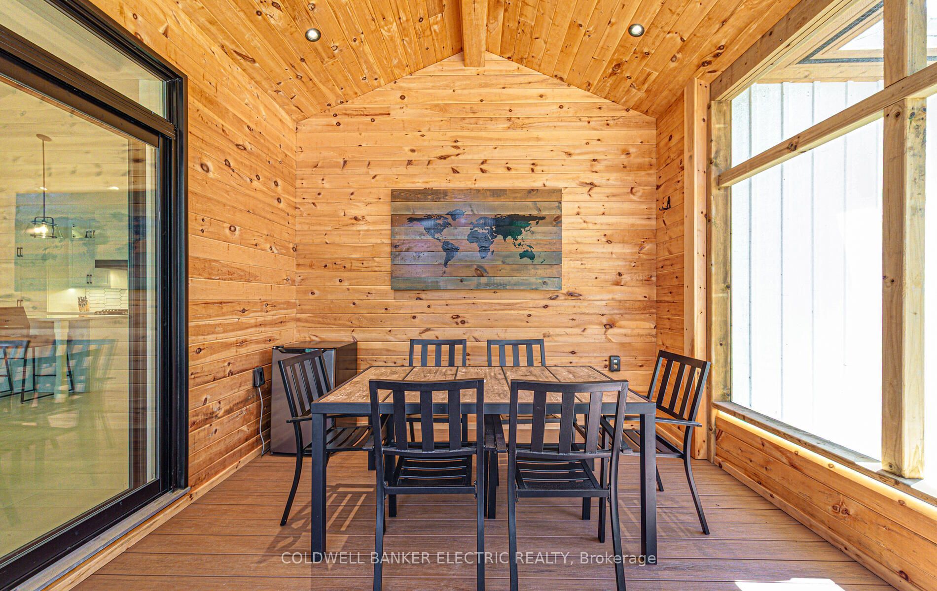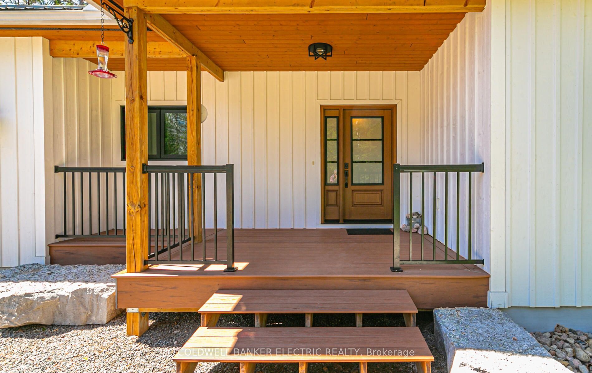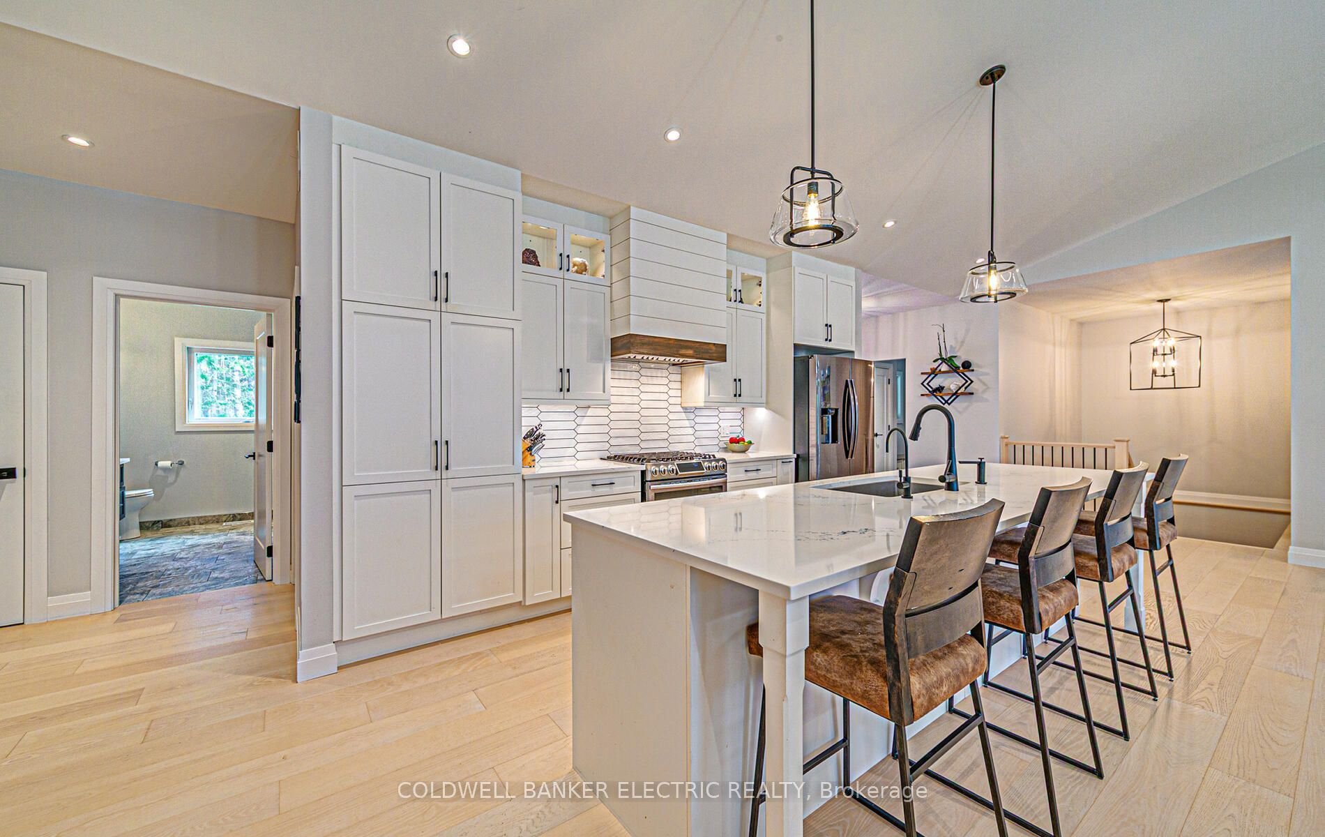 Welcome to 17 idaho lane where elegance awaits! 3800 sq ft turn-key executive-style lakefront home. Nestled on a 1. 13 acre pine grove, this meticulously planned 5 bedroom, 3-bath custom home built in 2020 strikes the perfect balance between rural living and modern amenities. This stunning home is only 60' to the natural shore of bow lake. Enjoy the evenings listening to the loons inside your vaulted musoka screen room or step outside into paradise. Escape the hustle of city life meandering down to the 290 feet of privately owned west-facing waterfront to take in a captivating sunset! This property offers outdoor living at its finest with raised garden beds, mature asparagus patch, children's playground and sandbox. The home includes three main-floor bedrooms and two bathrooms. The large primary suite showcases a vaulted ceiling that leads out to the expansive composite deck and is complimented by its own 3 piece ensuite bathroom with heated tile and quartz double vanity. The fully finished basement is equipped with heated floors throughout, including two bedrooms - perfect for an in-home office or guest-suite-plus 4 piece bath, large rec room and oversized laundry room. The kitchen and main floor baths boast tile floor and quartz countertops; ash engineered hardwood throughout the main floor and basement; a propane fireplace in the living room and large windows facing the water. Enter through the main foyer to access the oversized mudroom that leads to the heated garage, with an additional detached garage-shed for boat and atv storage. Access to high-speed internet is ideal for remote working, with the added convenience of being close to safe schools, a hospital, restaurants, shopping, community centre, and more. The heritage trail is only mins from your door as well as easy access to silent lake and algonquin prov. Park. The 5 bedroom option is ideal for airbnb rental income potential with ample space to host numerous guests for a cottage retreat.