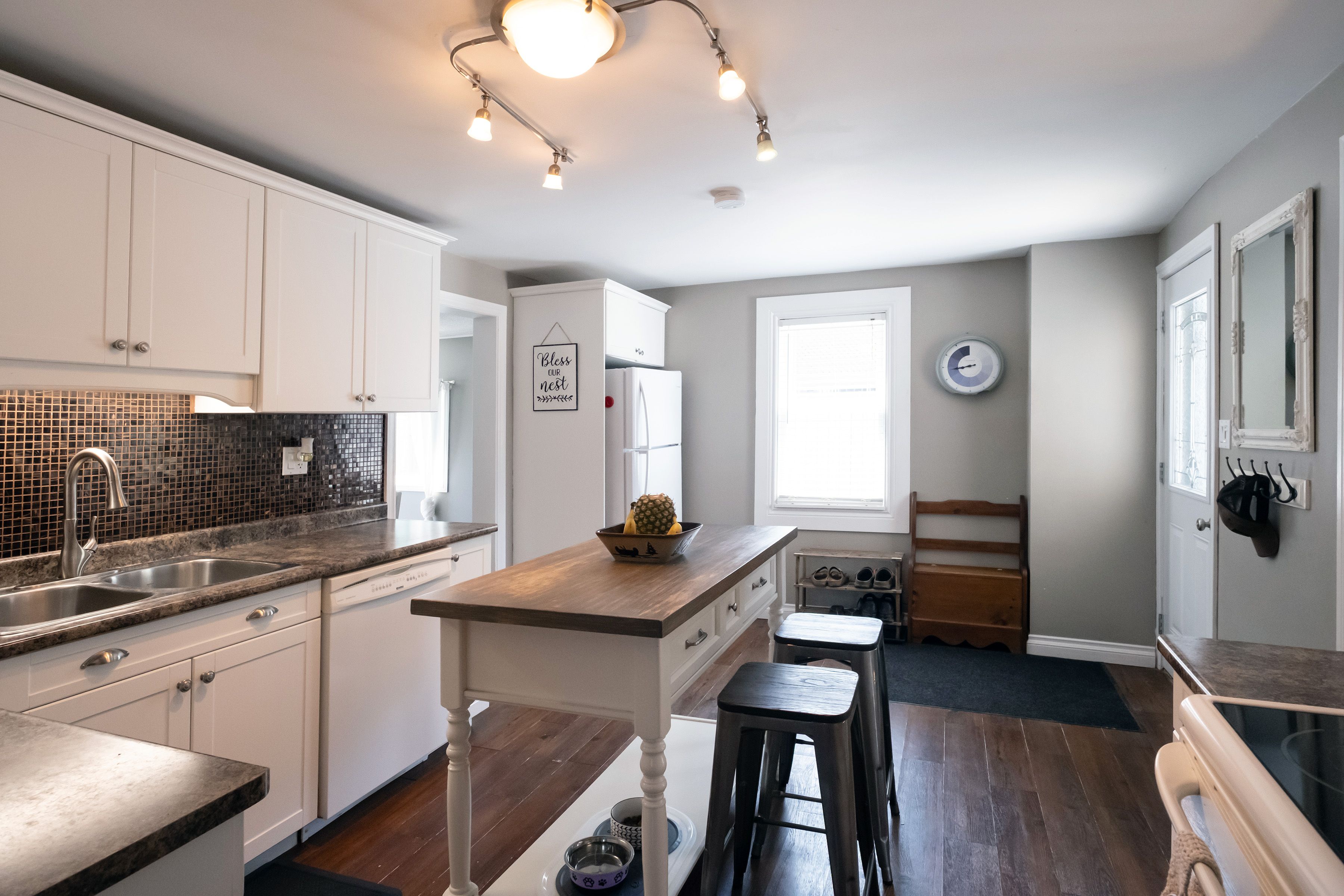 Nestled on a quiet cul-de-sac in the heart of trenton, just minutes from cfb trenton, this picture-perfect 3 bedroom, 1. 5-storey home offers the ideal mix of warmth, character, and modern convenience. From the moment you step inside, you will feel the care and pride of ownership throughout. The sun-drenched kitchen is as functional as it is beautiful, featuring a moveable island, ample counter space, and a seamless flow into the spacious dining area, perfect for hosting family dinners or casual weekend brunches. Patio doors open onto your private backyard oasis, making indoor-outdoor living effortless. With one bedroom conveniently located on the main floor and two generously sized bedrooms upstairs, all with soaring 9-foot ceilings. This home offers flexibility for families, guests, or a work-from-home setup. The 4 pc bath also with 9-foot ceilings is spacious and thoughtfully designed, offering both comfort and exceptional storage, including a massive linen closet. Outside, your fully fenced backyard is a true retreat. Picture yourself enjoying summer evenings on the patio surrounded by blooming perennials, barbecuing with friends, or simply relaxing in your peaceful, private space. Don't miss the 24' x 11' detached workshop with loft storage for tucking away your toys or a dream space for hobbyists, creatives, or anyone craving a quiet escape. Whether you're starting out, settling down, or just looking for a place that feels like home, this property offers something truly special. Steel roof 2021,eaves 2019, ac 2024, all appliances included. Move in ready. Come make this house your home!
