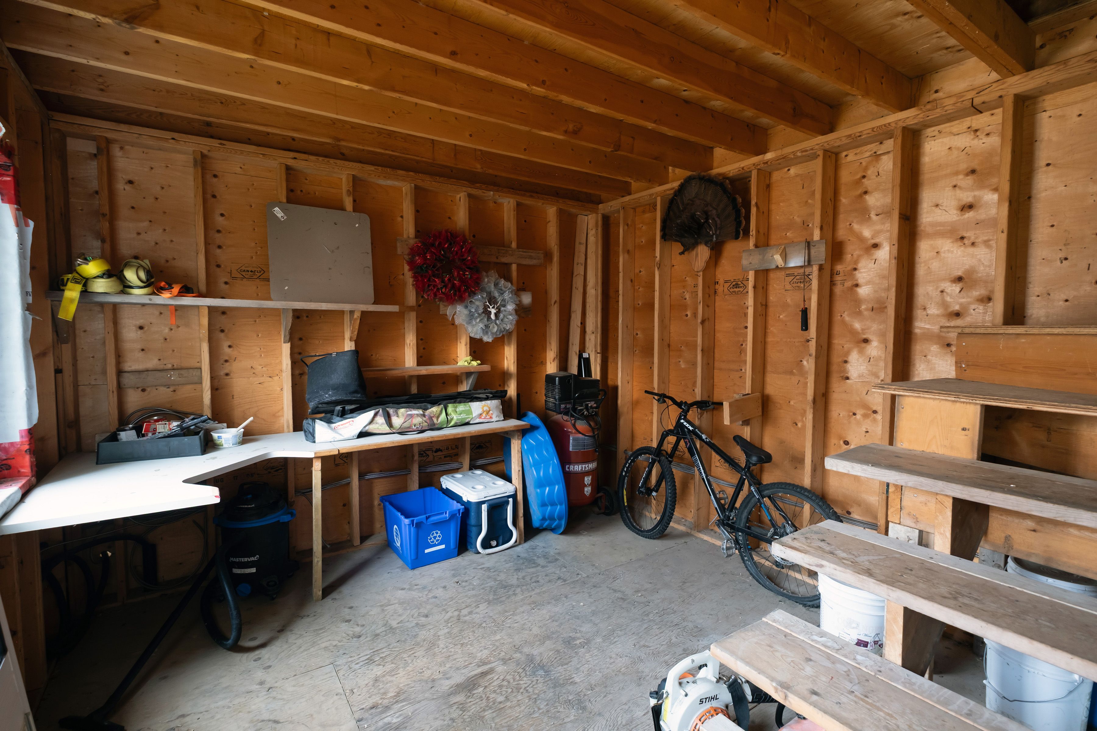 • Detached workshop with loft storage, great for hobbies or additional storage.