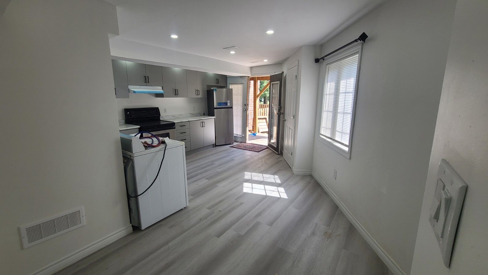 Welcome home to this beautifully renovated 2-bedroom ground-level apartment in the heart of downtown brampton, directly across from the brampton go station. Perfect for those without a vehicle, this location offers unmatched accessibility and convenience with parks, schools, shopping, banks, the library, and transit all just steps away. The unit offers plenty of natural light with large windows throughout and has been fully updated from top to bottom, featuring a modern kitchen with brand-new stainless steel appliances, a renovated 3-piece washroom, new flooring, paint, baseboards, and more. The apartment is freshly painted with no carpet throughout, and includes the added convenience of an in-unit washer and dryer. Double entry doors make moving furniture in and out simple, while the property itself is well maintained and ideal for clean, respectful tenants. Utilities are shared with the upper tenant, with this unit responsible for 30%. Priced well for the right tenant.