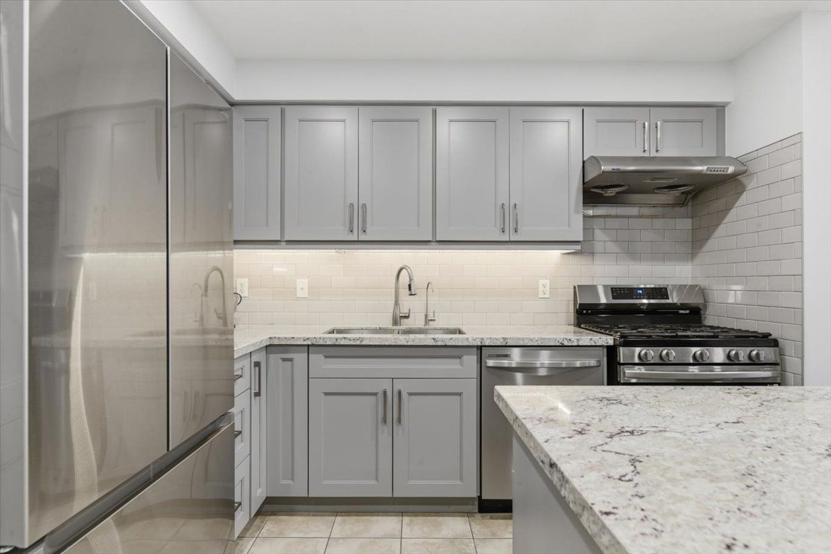 • Gourmet kitchen featuring quartz countertops and stainless steel appliances.