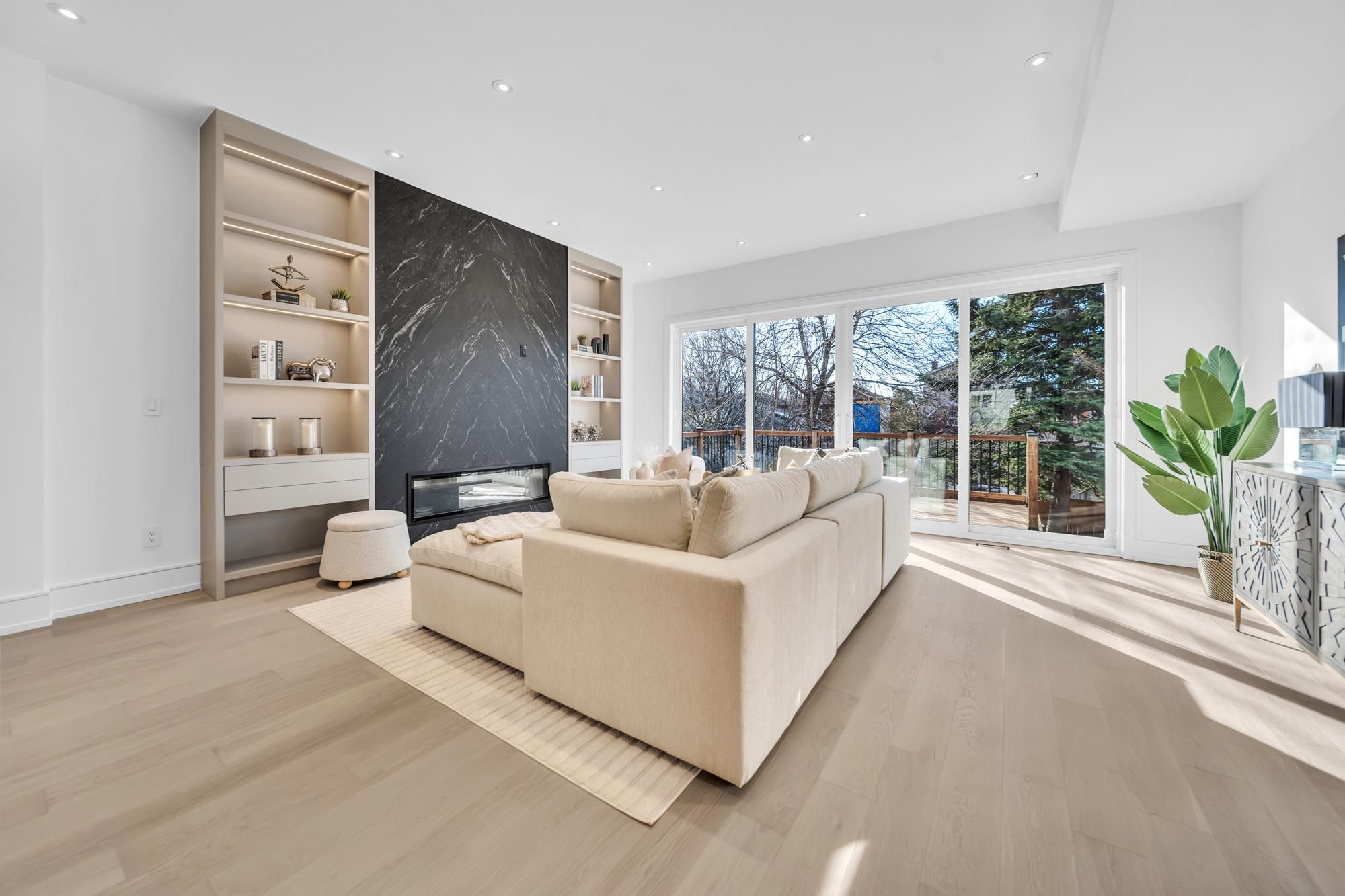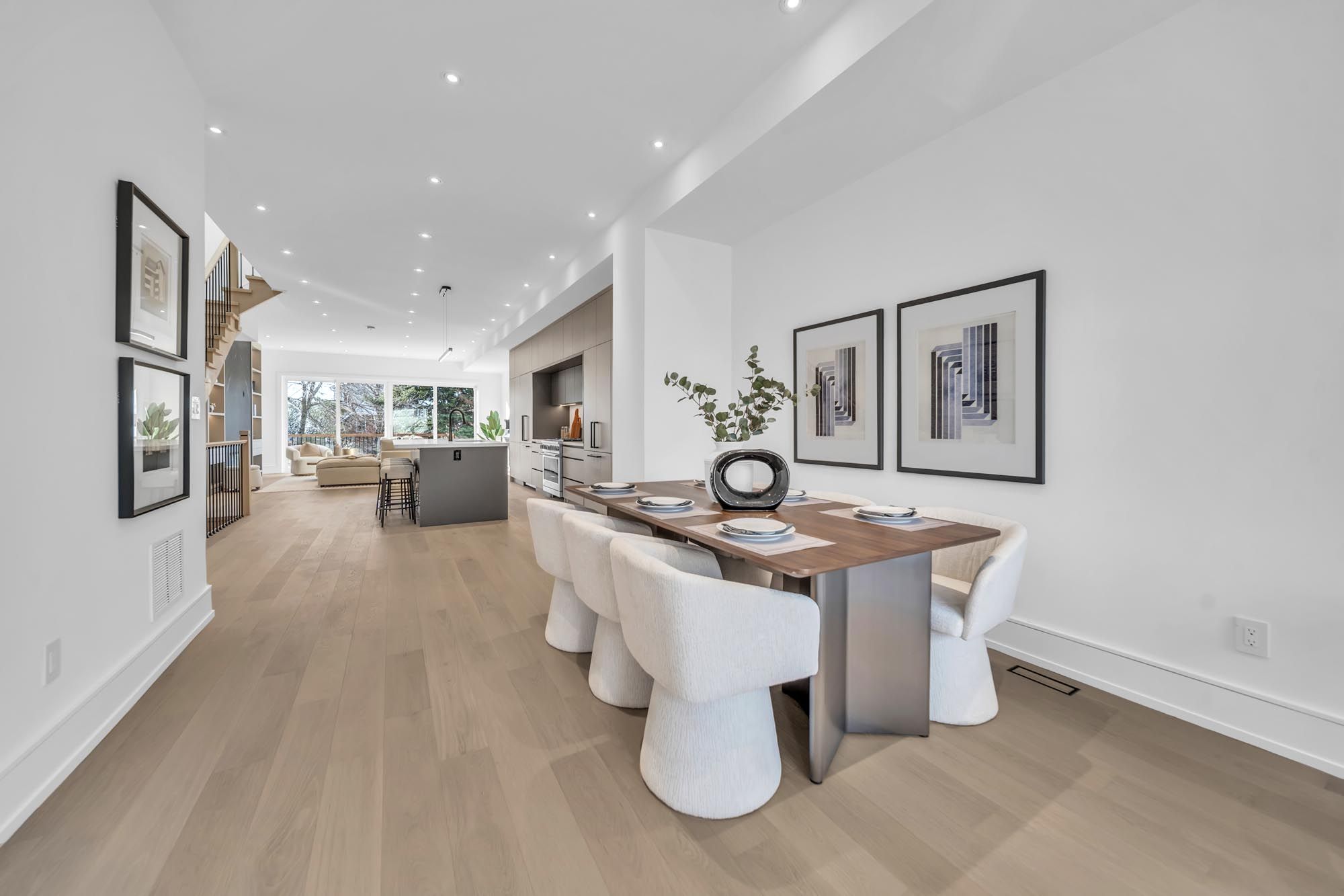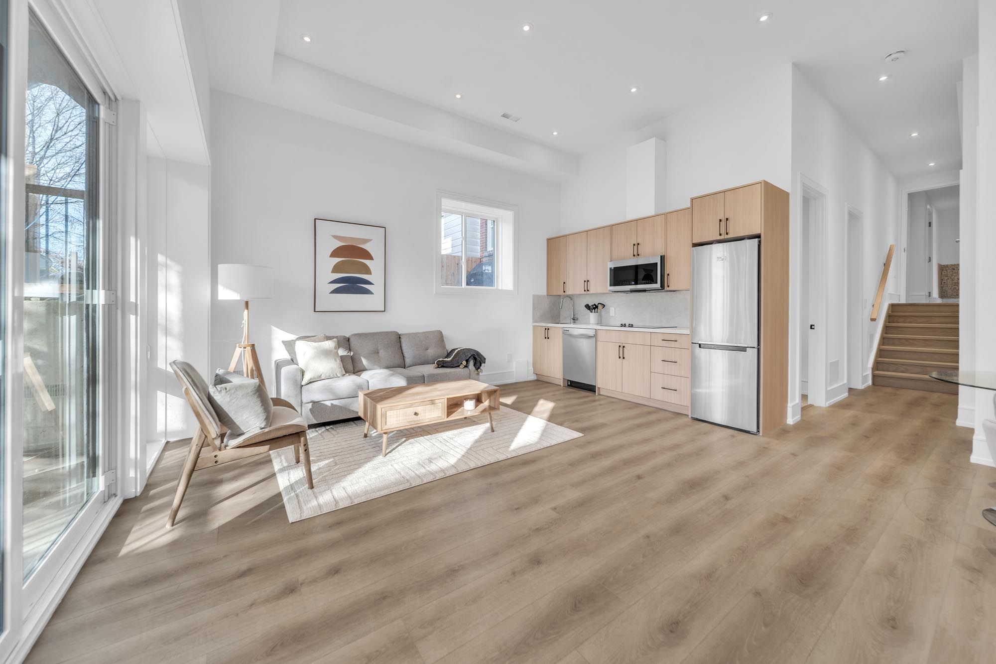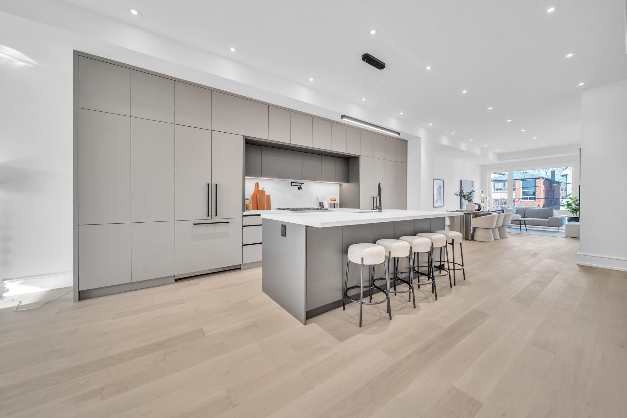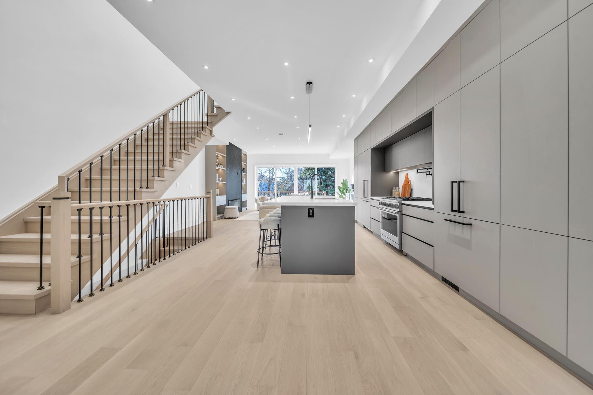 Welcome to 17 lanark. A stunning blend of modern design, exceptional craftsmanship & sun-filled living spaces, this beautifully built home offers over 3,500 sqft of thoughtfully designed living space in one of toronto's most desirable neighbourhoods. Featuring a striking limestone façade, elegant white oak flooring, expansive floor-to-ceiling windows, & five skylights, the home is flooded w/ natural light. The main floor features 10-foot ceilings & a seamless open-concept layout designed for both everyday living & effortless entertaining. The extra-large chef's kitchen, complete w/ high-end appliances, extensive custom cabinetry, & a dramatic oversized centre island, is perfect for gathering. The warm, inviting family room w/ a gas fireplace, integrated shelving, & a walkout to the deck & fully fenced backyard creates the ideal indoor-outdoor lifestyle. Smart lighting throughout the home enhances both convenience & ambiance, allowing for modern, customizable living. On the second floor you find the luxurious primary retreat featuring a large walk-in closet & a spa-inspired ensuite w/ custom vanities designed for ultimate relaxation. Generous windows throughout the upper level bring in abundant natural light. The lower level is a rare highlight, offering a fully legal secondary suite w/ its own private laundry & walkout to the backyard-perfect for extended family, guests, or rental income. With soaring 12ft ceilings & large floor-to-ceiling windows, the space is exceptionally bright & open. The suite also features a full kitchen, along w/ over 200 sqft of private walk-up space, providing excellent outdoor space for occupants. A private interlocked driveway, flagstone stairs & a built-in garage all complement the home's refined exterior & practical design. Enjoy being steps from the eglinton lrt, top-rated schools & close to shops, restaurants & parks. Don't miss your chance to call this exceptional home yours-a rare offering in a vibrant, growing community.