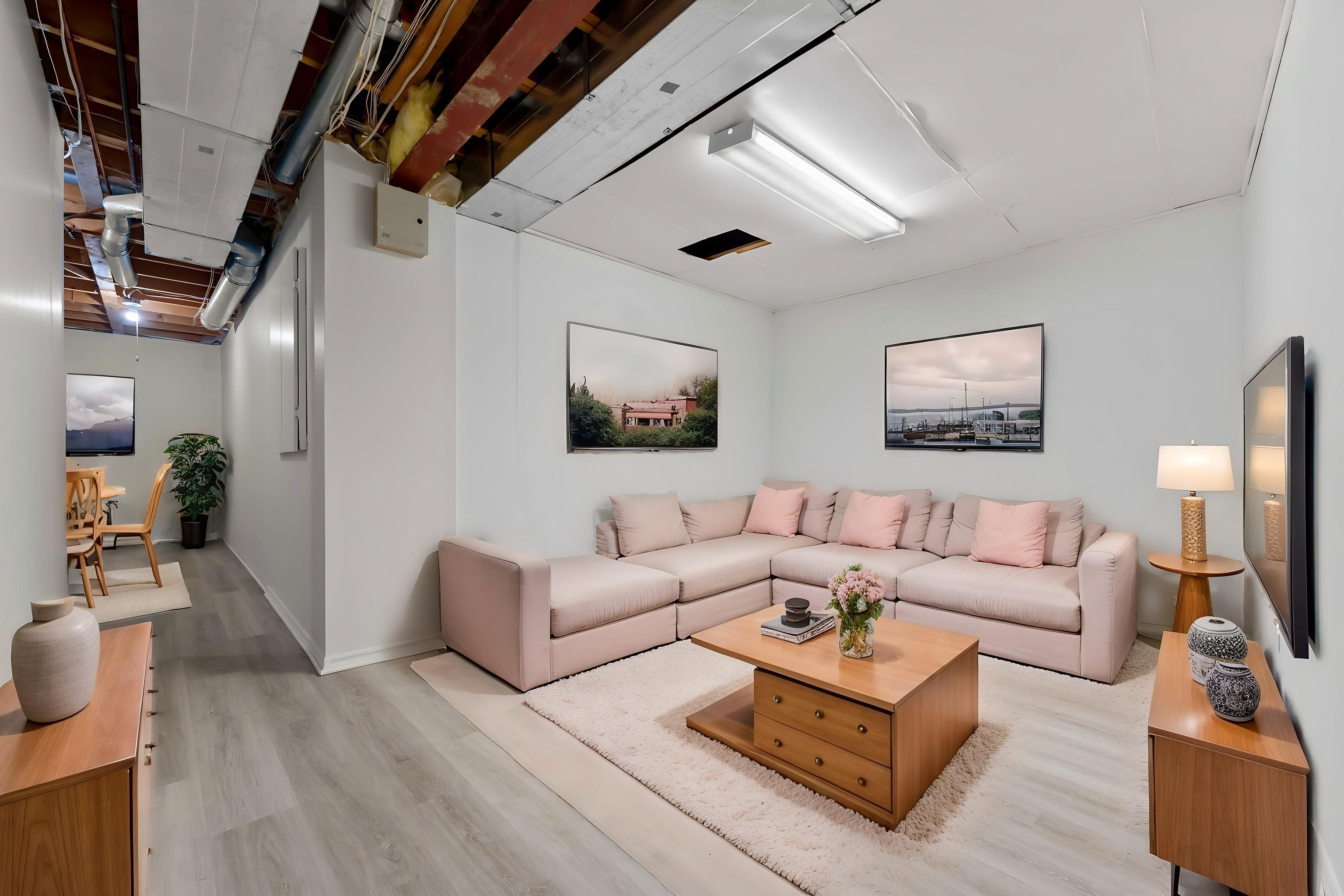 • Partially finished basement offers flexible space for various uses.