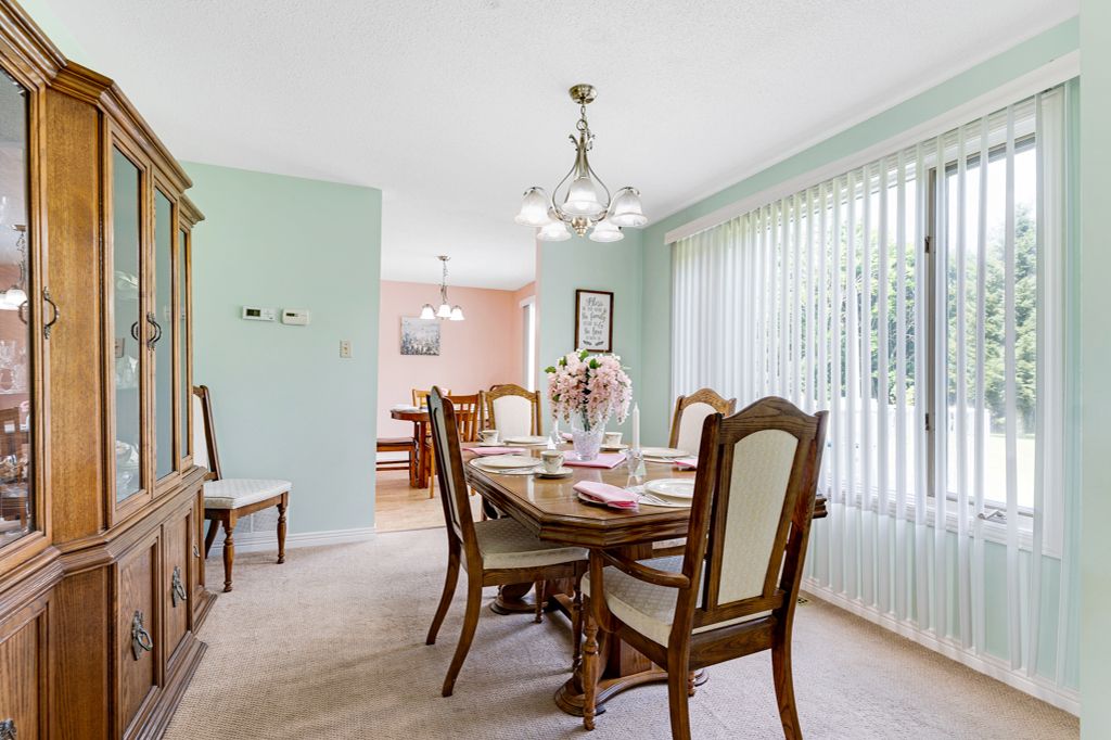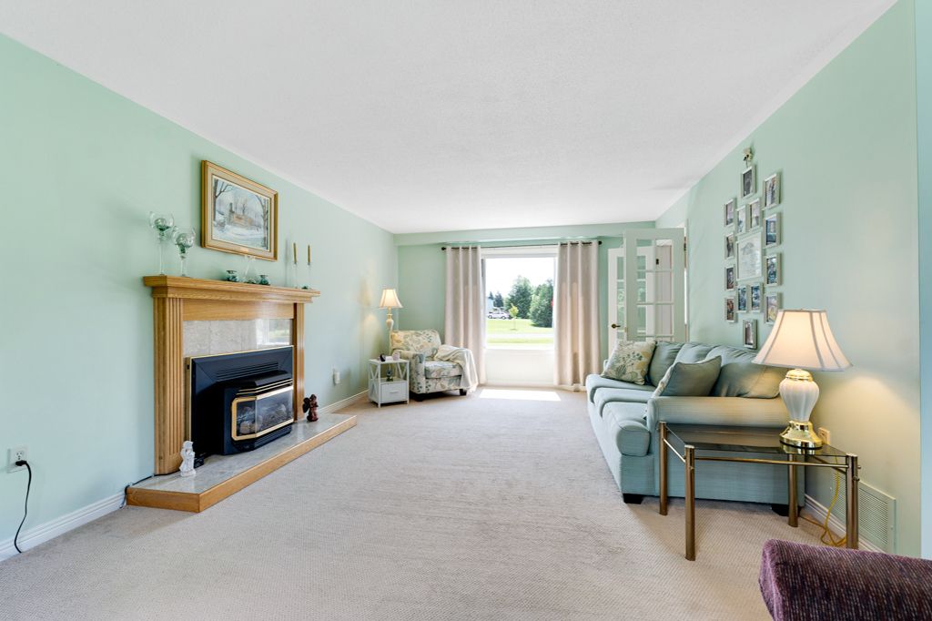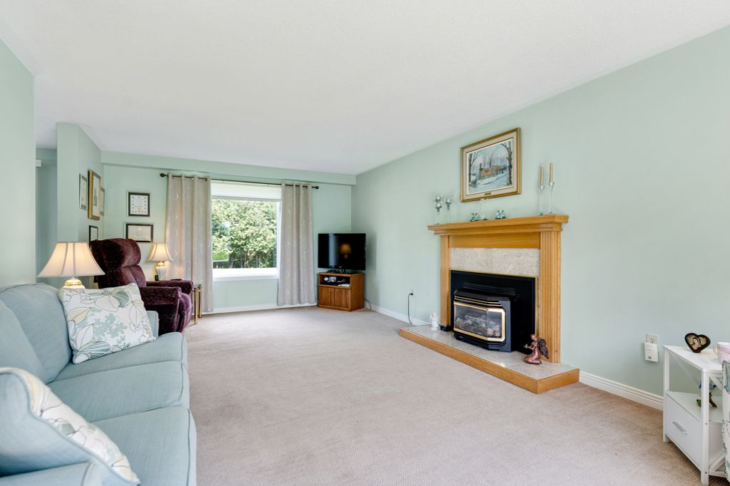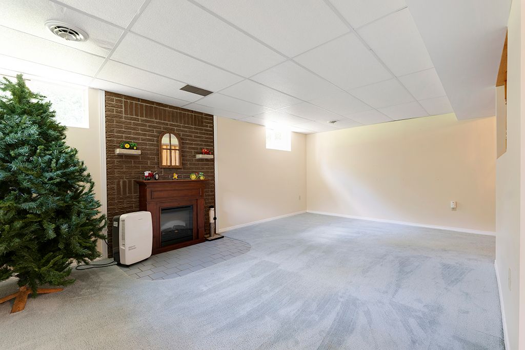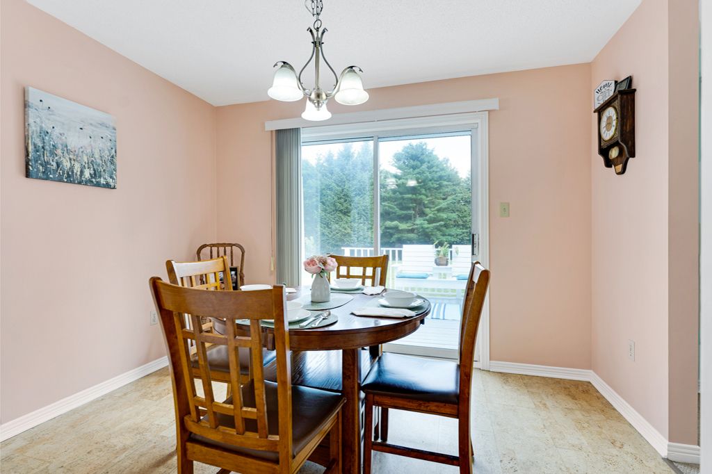 • Inviting main level features a cozy propane fireplace and bright dining space.