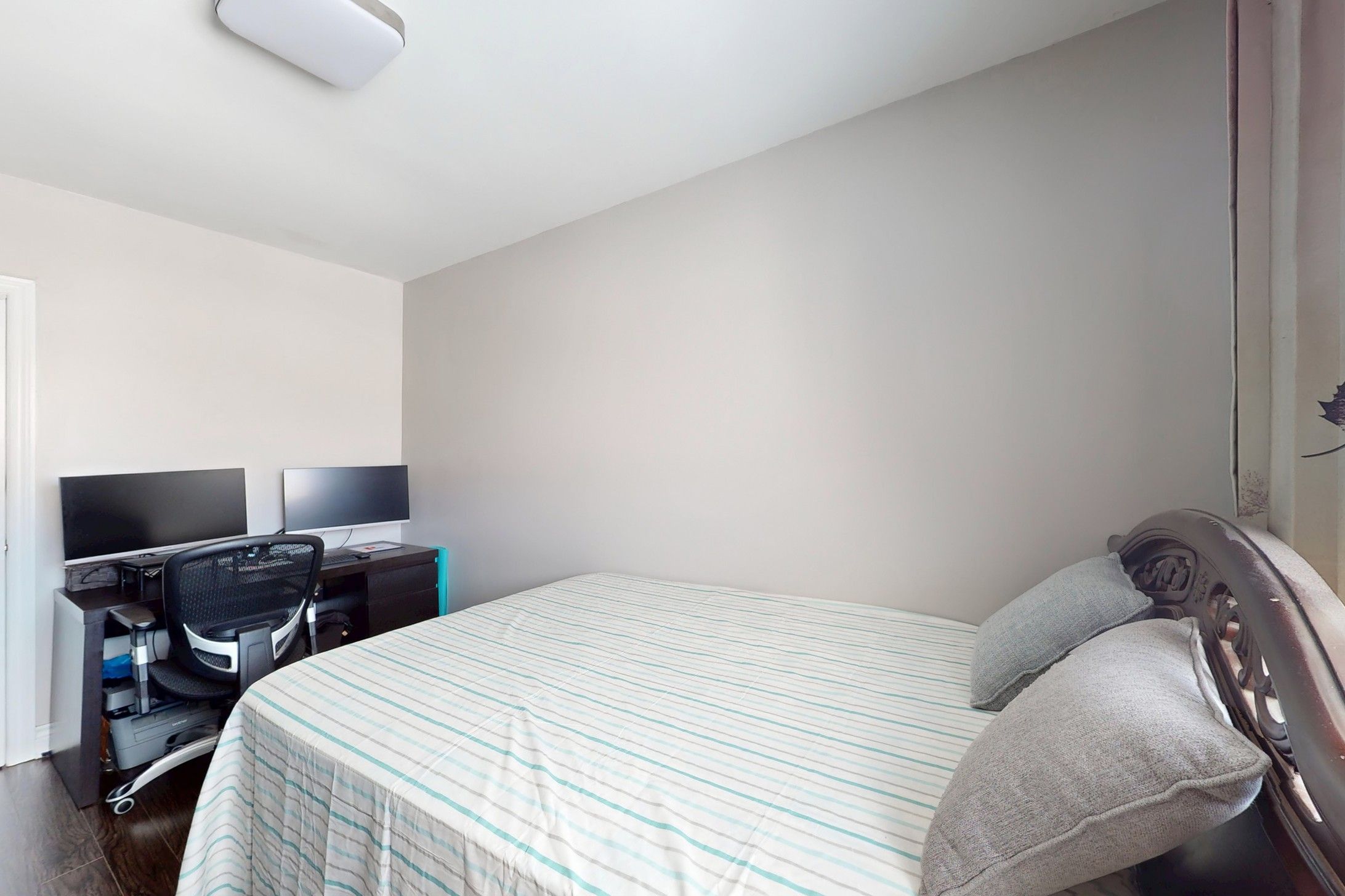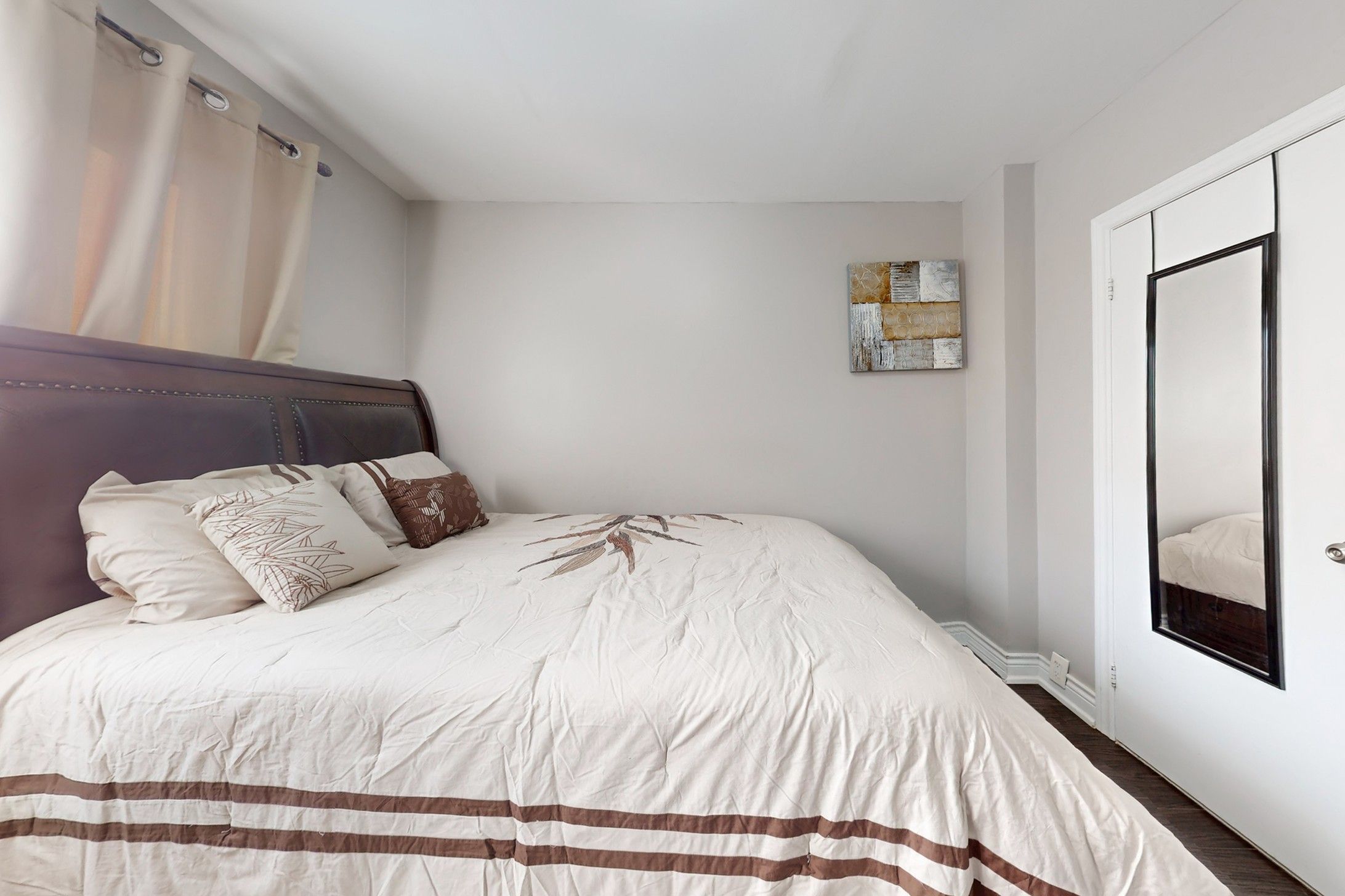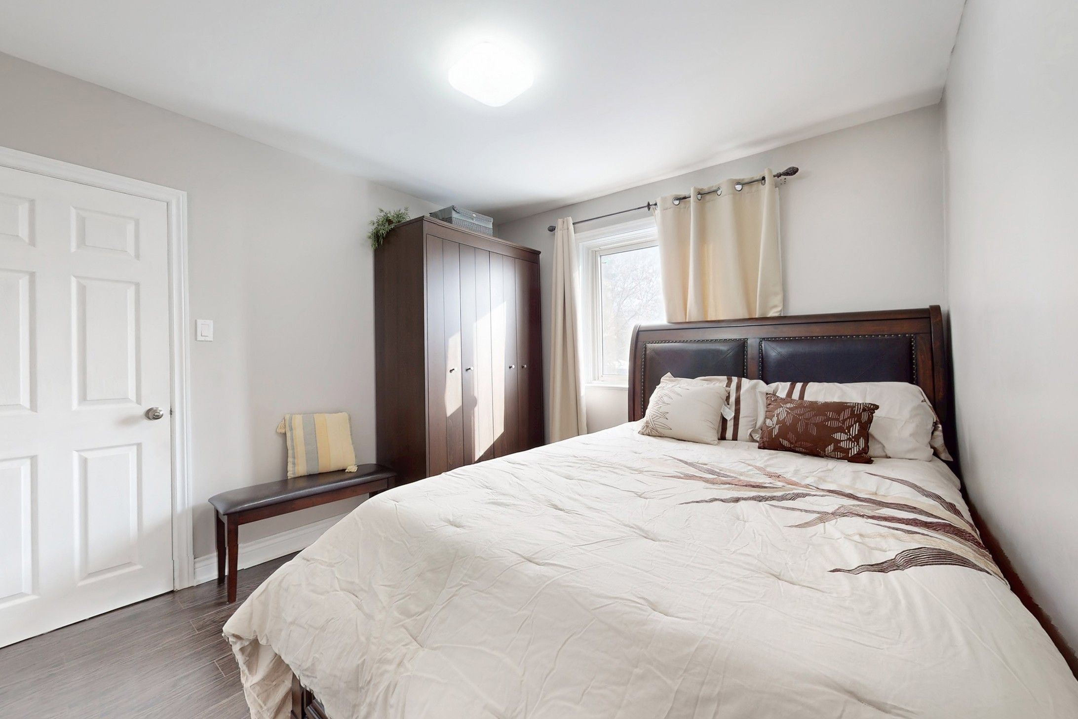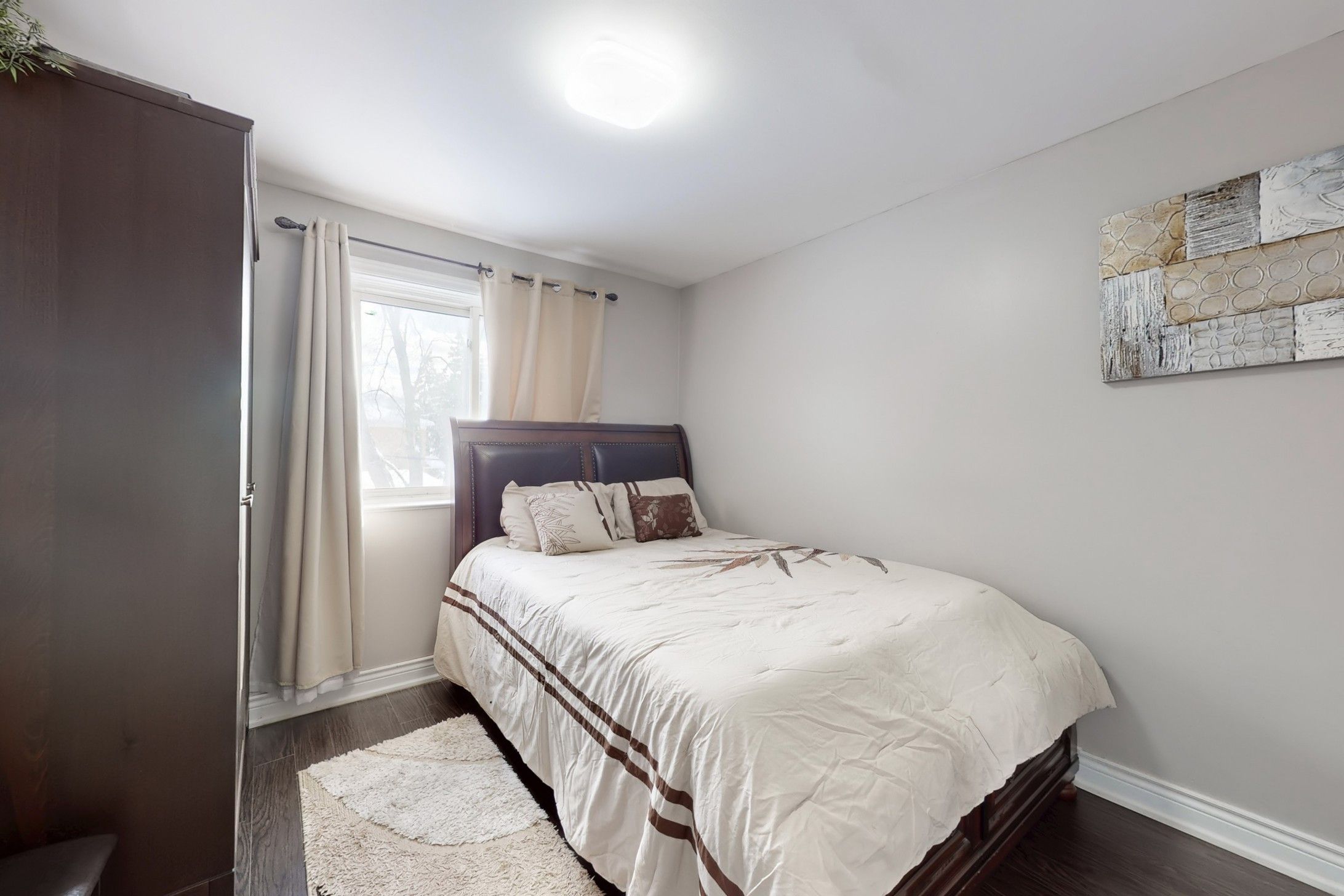 A very clean, semi-detached, cozy home nestled in a quiet neighborhood. Featuring updated flooring throughout, modern staircase, and an upgraded bathroom, this home combines comfort with modern updates. Enjoy a walkout to the backyard and a spacious deck complete with a gazebo, perfect for relaxing or entertaining. Roof (2024). Furnace (2022). Garage (2022) with tons of storage space. Porch (2022). Hot water tank 2025 rental, all exterior & interior doors (2023). The bright and inviting living room offers a large bay window, filling the space with natural light. There is also a separate entrance to a fully finished basement, providing additional living space or potential for rental income. Ideally located within walking distance to mosque (abu baker), thompson park, ttc, schools, shops, and places of worship, this home offers both convenience and tranquility.
