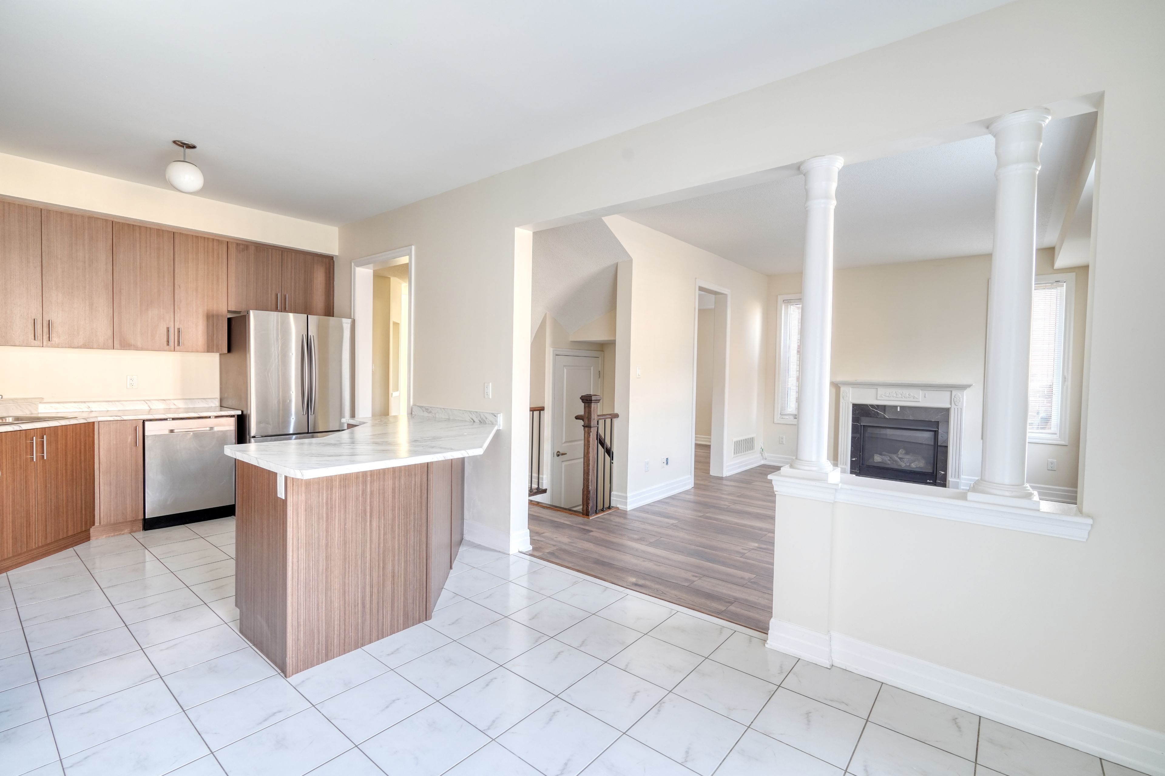 Fantastic location! Very bright and spacious 4-bedroom home in the sought-after community of simcoe landing, featuring no front walkway. The open-concept main level offers generous principal rooms, 9-foot ceilings, and a wood staircase with iron pickets-perfect for a growing family. Enjoy a gas fireplace in the large family room, laminate flooring throughout, and a grand open-to-above foyer. Convenient main-floor laundry. The untouched basement provides endless potential for customization. Ideally located close to shopping, schools, parks, and hwy 404. ***virtual staging***
