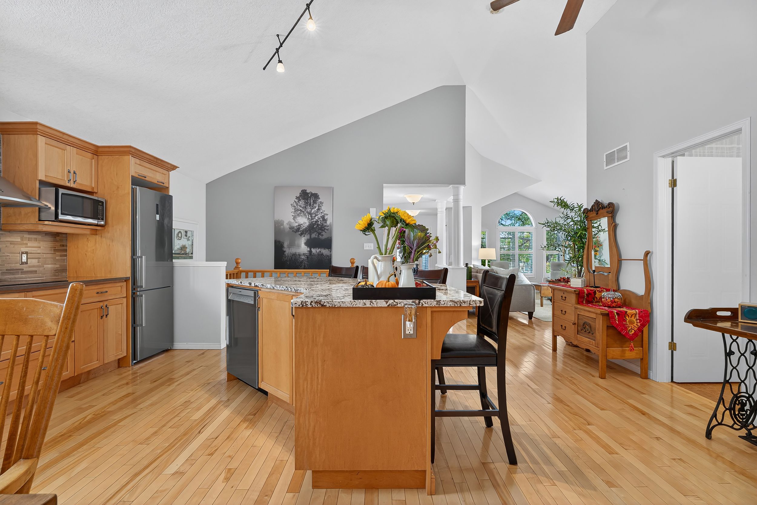 Welcome to one of the most desirable pockets in guelph's south end. This beautifully maintained bungalow backs directly onto forested walking trails, giving you privacy and a peaceful backdrop that is hard to find. The moment you walk in, you notice the soaring ceilings and natural light. The layout flows seamlessly, making it perfect for hosting friends or enjoying a quiet evening at home. The main floor is completely carpet free with rich hardwood flooring throughout. The kitchen, dining, and living spaces connect effortlessly, creating an open and inviting atmosphere. The primary bedroom is a true retreat with its own private ensuite, offering comfort and separation from the rest of the home. The fully finished walk out basement adds incredible living space. You will find a large recreation room with a gas fireplace that makes it warm and inviting year round. Two generously sized bedrooms and a full four piece bathroom make this level ideal for guests, teenagers, or extended family. Step outside to the oversized deck with a gazebo, perfect for summer evenings and weekend gatherings. With direct access to trails, you can enjoy nature right from your backyard. Located in guelph's sought after south end, you are close to excellent schools, major amenities, shopping, restaurants, and have quick access to highway 401 for commuters. This is a move in ready home that offers space, privacy, and lifestyle all in one.