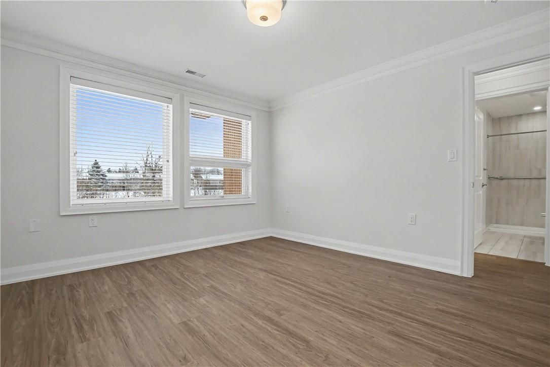 Welcome to this bright and welcoming corner bungalow in the gated 55+ community of st. Elizabeth village. This 960 square foot one floor home offers a comfortable one bedroom, one bathroom layout with private parking and a peaceful water view overlooking one of the community ponds. The spacious kitchen features stainless steel appliances and quartz countertops and opens beautifully to the living and dining area. Wall to wall south facing windows fill the space with natural light throughout the day, creating a warm and cheerful atmosphere. Step outside to the backyard where a deck with a retractable awning is perfect for relaxing in the shade while enjoying the view, and a handy storage shed provides extra space. The bathroom includes a tiled walk in shower with grab bars for added comfort and support. This home is just a short walk to the village amenities including the heated indoor pool, gym, saunas, hot tub and golf simulator. Residents also enjoy on site public transit, a woodworking shop, stained glass studio, doctors office, pharmacy and massage clinic. Located within a five minute drive to grocery stores, shopping and restaurants, with public transportation coming directly into the village, this lovely bungalow offers both convenience and an active, friendly lifestyle. Property taxes, water, and all exterior maintenance are included in the monthly fees. Furnace, a/c and hot water tank are on a rental contract with reliance. Rsa