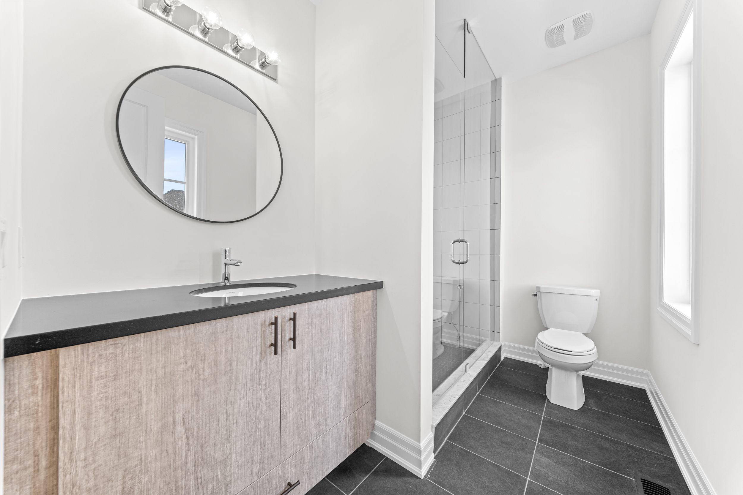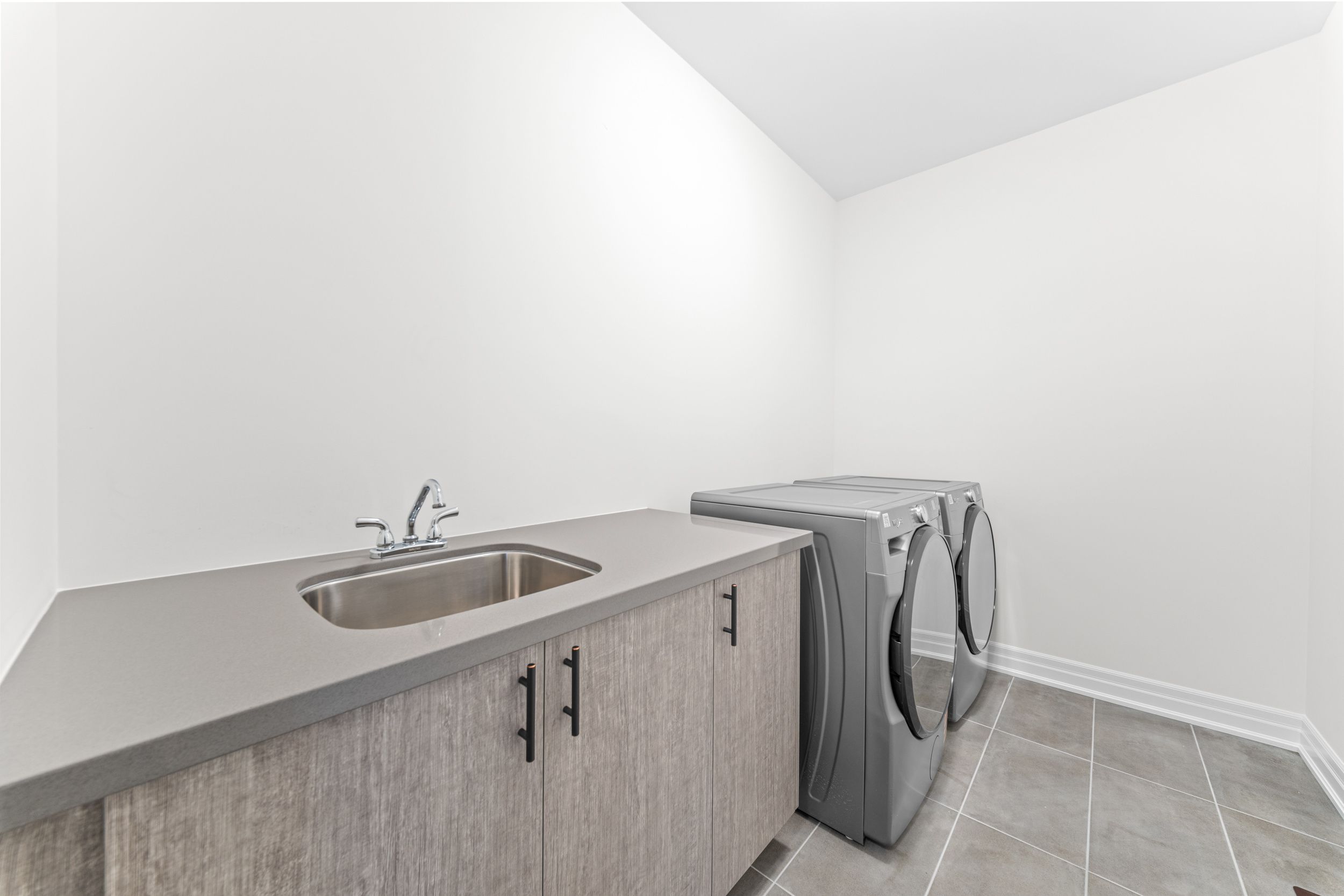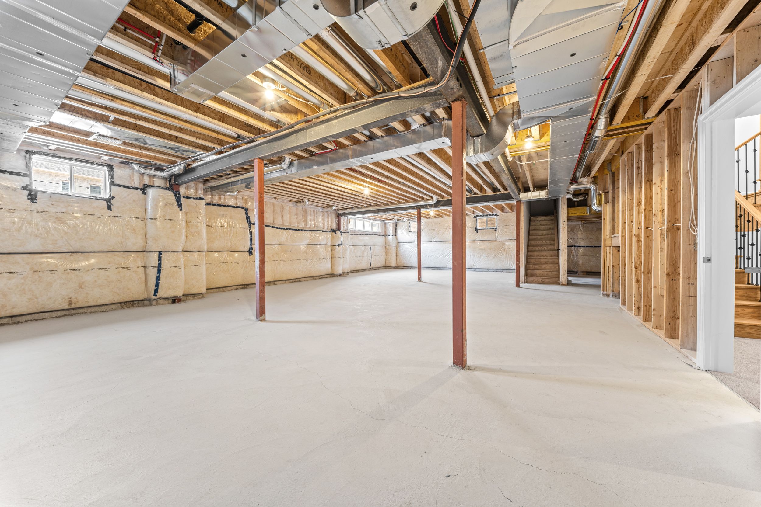 • Oversized basement with high ceilings and large windows for natural light.