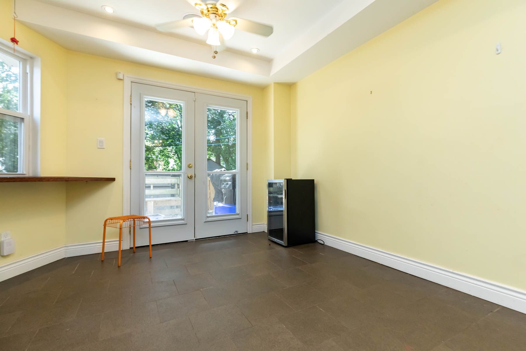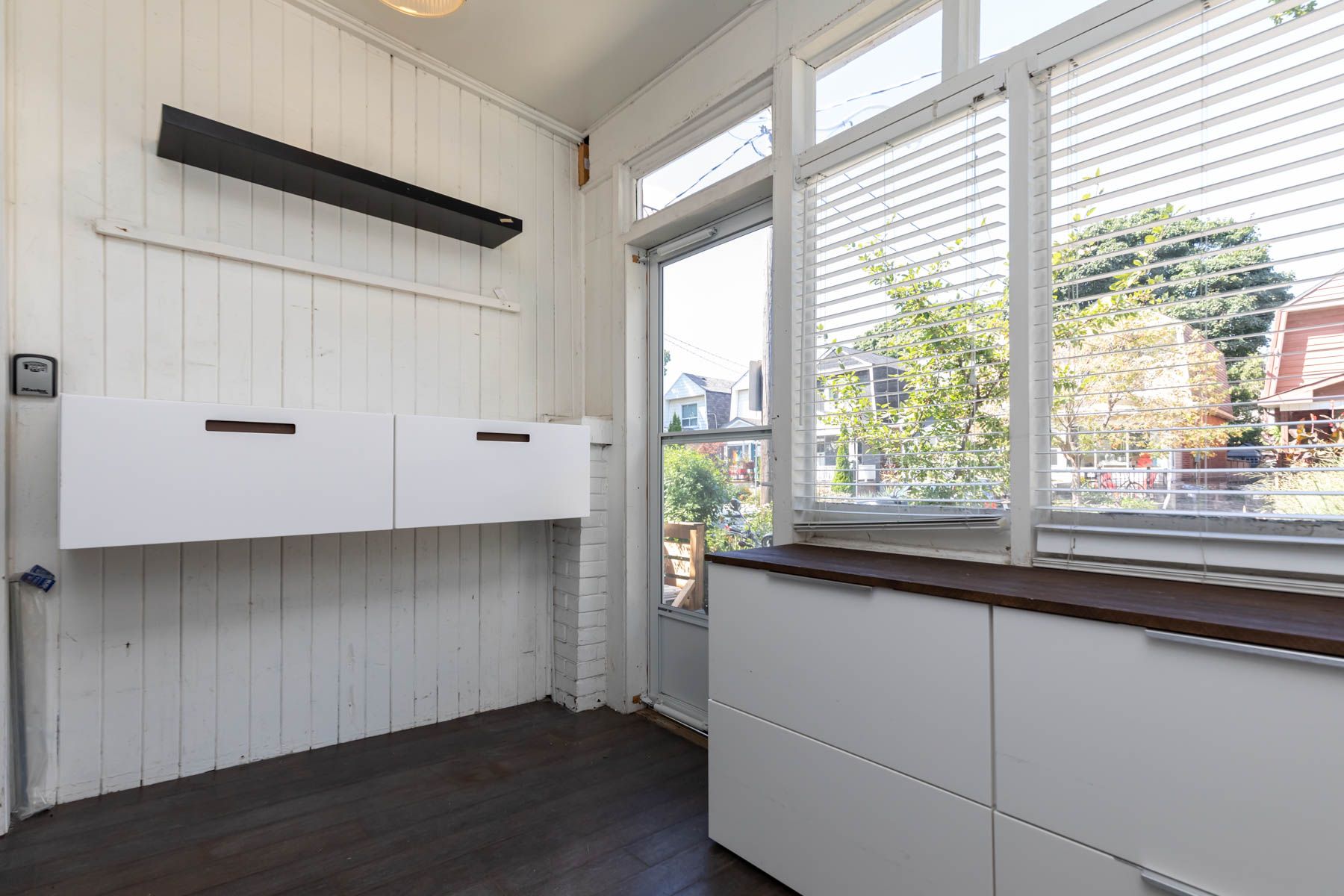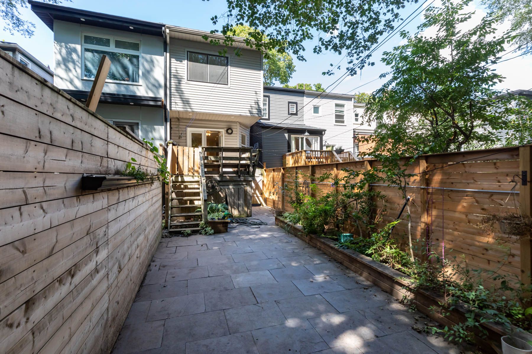 Take it all in on mountalan ~ tucked along a quiet, tree-lined cul-de-sac and just steps from felstead park, this thoughtfully renovated danforth 2-storey semi invites you to slow down and settle in. Updated with permits in 2016, this residence blends function and warmth with effortless style. A charming 3-season sunroom greets you, is the perfect perch to start your day with your morning brew, or for stowing bikes and gear, that leads into a light-filled main level with (nearly) 9"ft ceilings that create a lofty vibe. The living space is made for unwinding, while the spacious kitchen flows seamlessly into a sun-soaked dining area has heated porcelain tiled floor and framed by wall-to-wall windows with full southern exposure. Upstairs are two generous bedrooms each with closets, two spa-inspired bathrooms means no waiting and creates a bright, easy everyday rhythm. Primary bedroom has 2 closets and private ensuite bath with skylights to let the sunshine in. The lower level offers a peaceful retreat with a cozy zen den, plus laundry and additional utility/storage space. Step out onto your prime south facing large back deck and fully fenced rear yard that has natural slate pavers for low maintenance living. Just three blocks to danforth's vibrant shops, restaurants, and subway, this is city living with a neighbourhood feel-recognized by toronto life as one of the best in the city with a 90. 6 ranking score. Photos show vacant, but it is tenanted with flexibility to stay or go requires 24 hours notice for showings. By appointment only. "a home this special doesn't wait ~ offers are anytime."