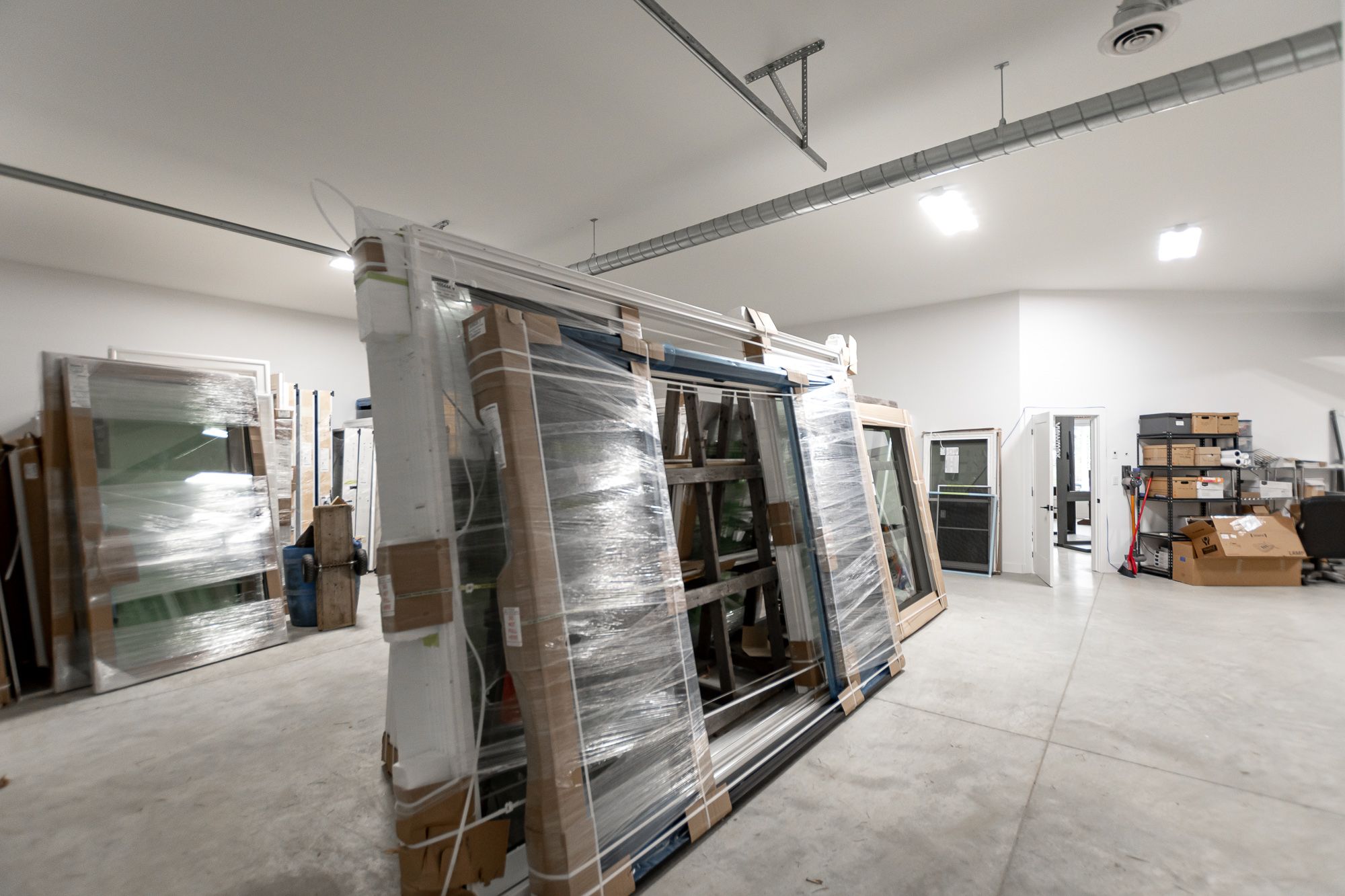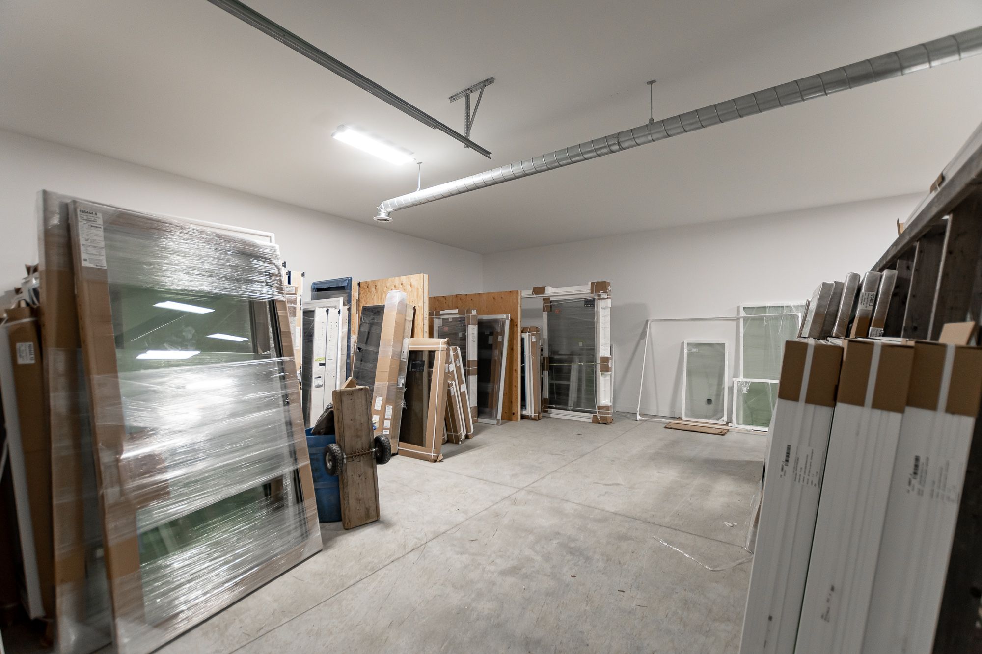 • Layout includes showroom and large storage area with garage door access.